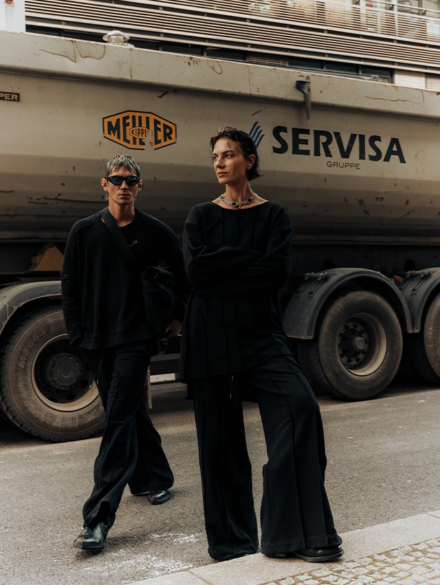 Finalizacją naszej pracy konceptualnej, oraz wyznawanych przez nas wartości, są regularne kolekcje pojawiające się dwukrotnie w ciągu roku. Ostatnia z nich, AW22/23, złożona jest z wariacji na temat noszonych przez nas na co dzień: bluz, koszul, spodni i longsleeve. Podobnie jak w przypadku kolekcji SS22, dużą część inspiracji zawdzięczamy doborowi materiałów - definiujących charakter poszczególnych projektów, jednak w zimowej kolekcji, wyjątkowy budulec jest częściej podkreśleniem formy, bądź też zaznaczeniem pewnych elementów konstrukcji.