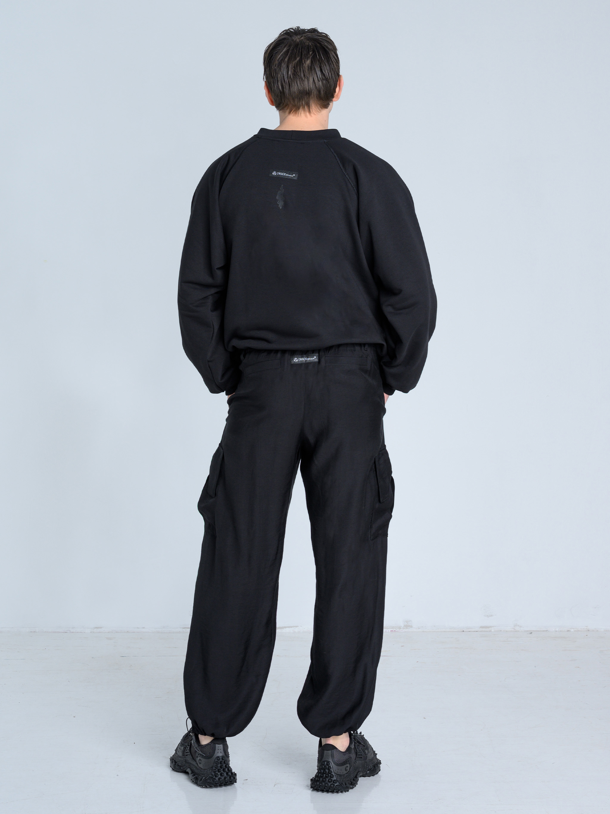 - Na plecach żakardowy label z logowaniem marki oraz ręcznie wykonany nadruk z logo kolekcji