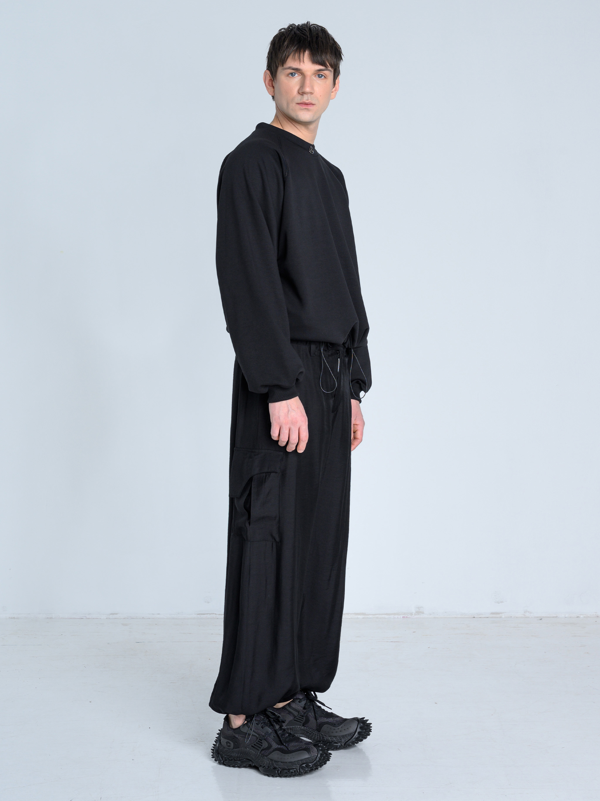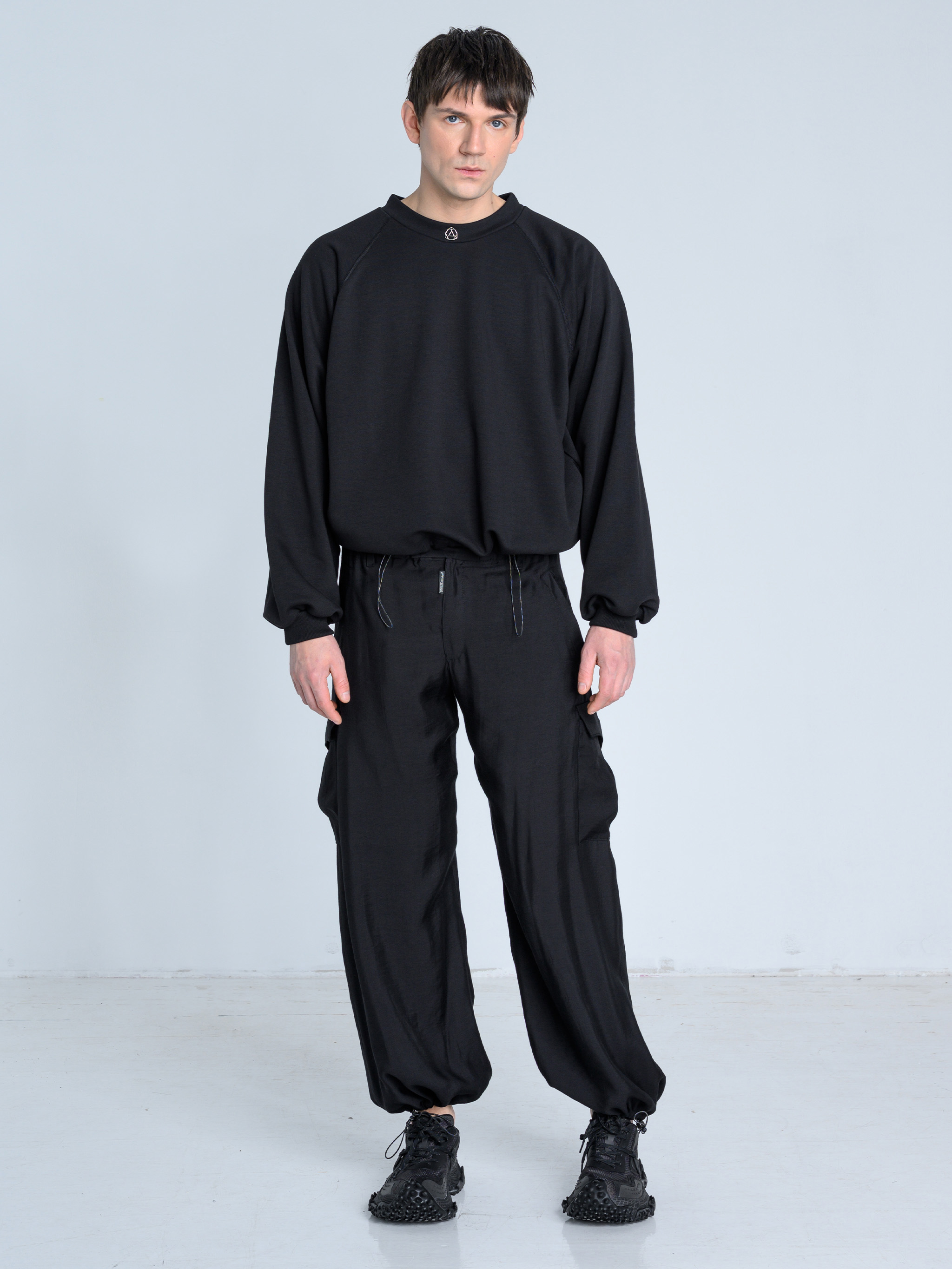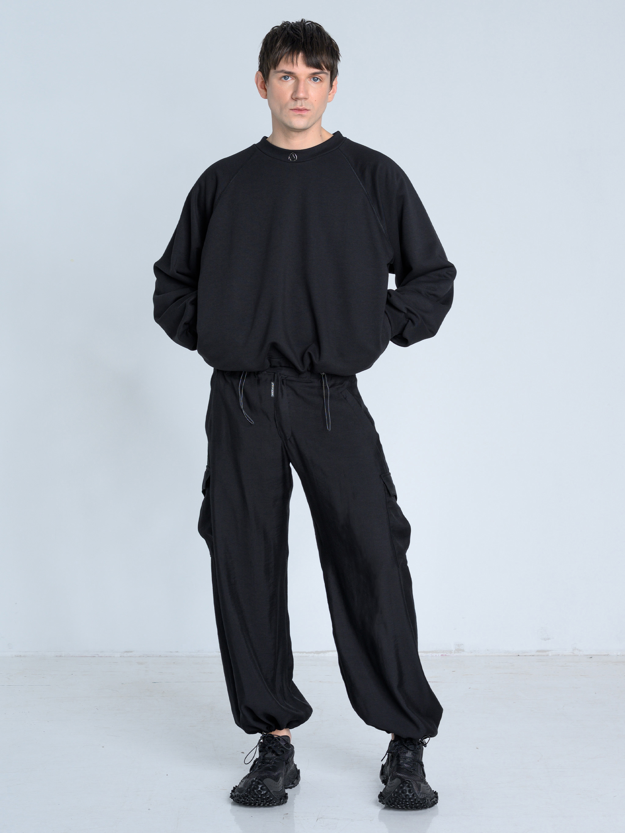 - Reglanowe rękawy zakończone elastycznym mankietem