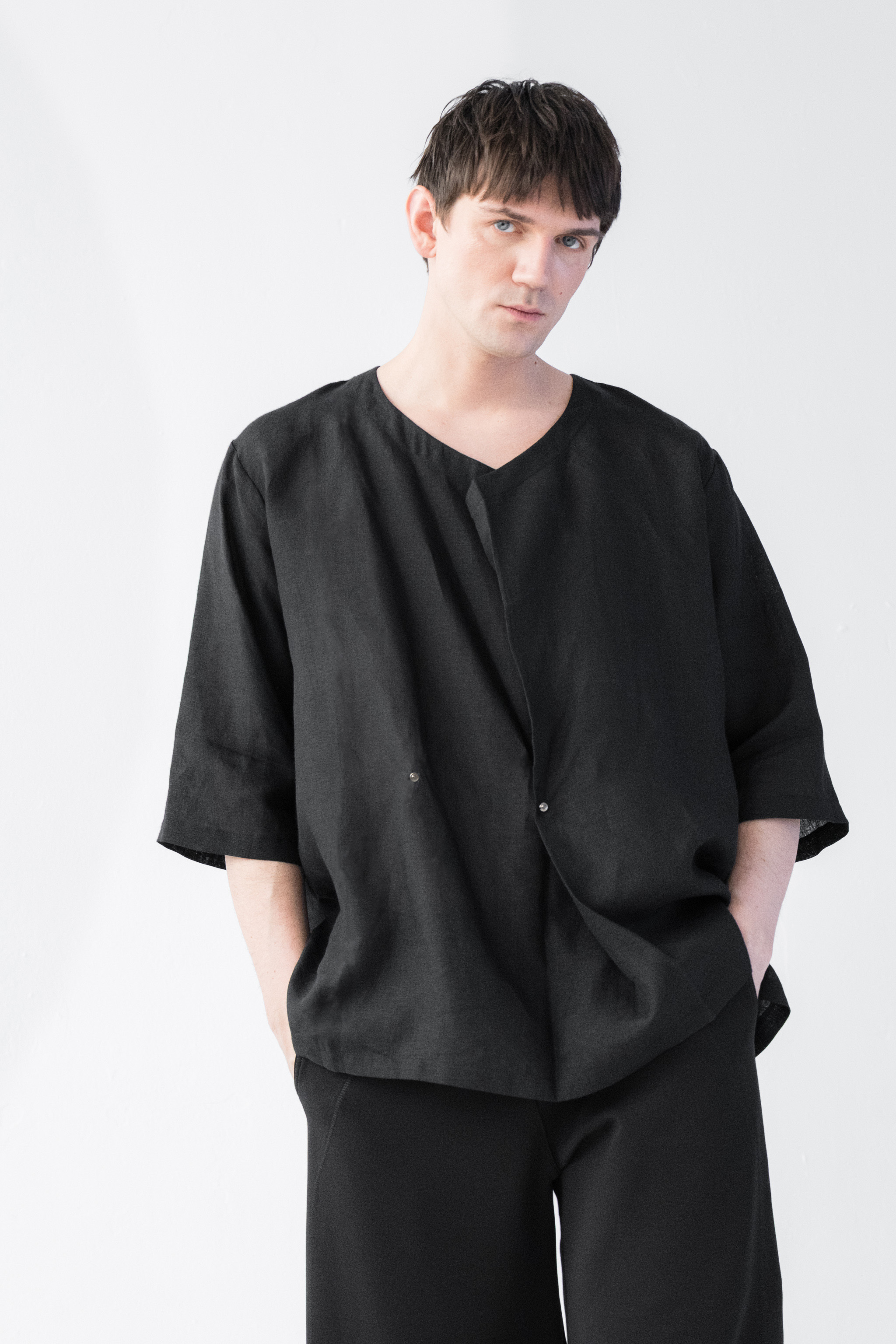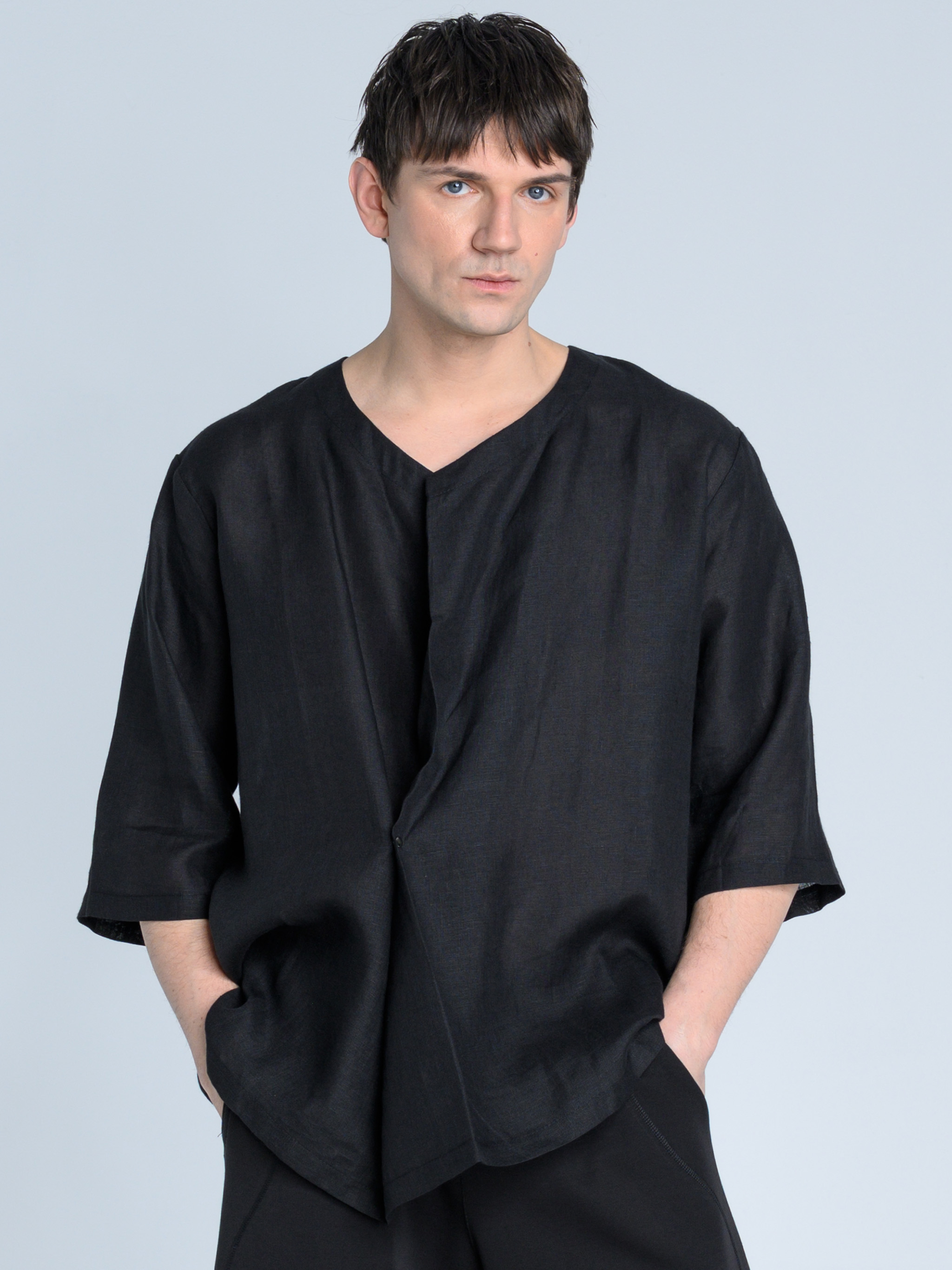 - Koszula lniana wykonana z certyfikowanej włókien European Flax™, z lnu kultywowanego w odpowiedzialny sposób w krajach UE, zmniejszając użycie wody i ślad węglowy