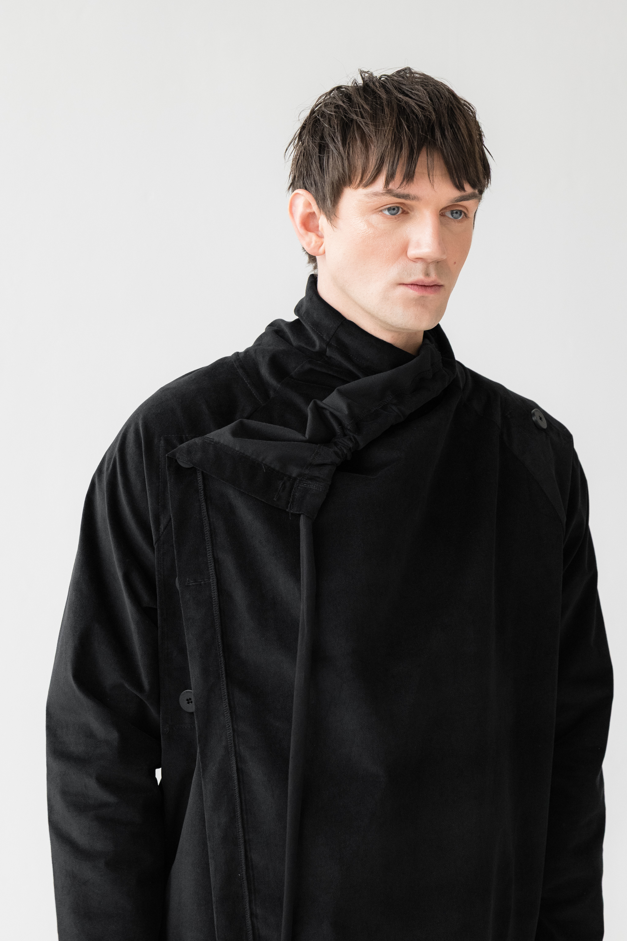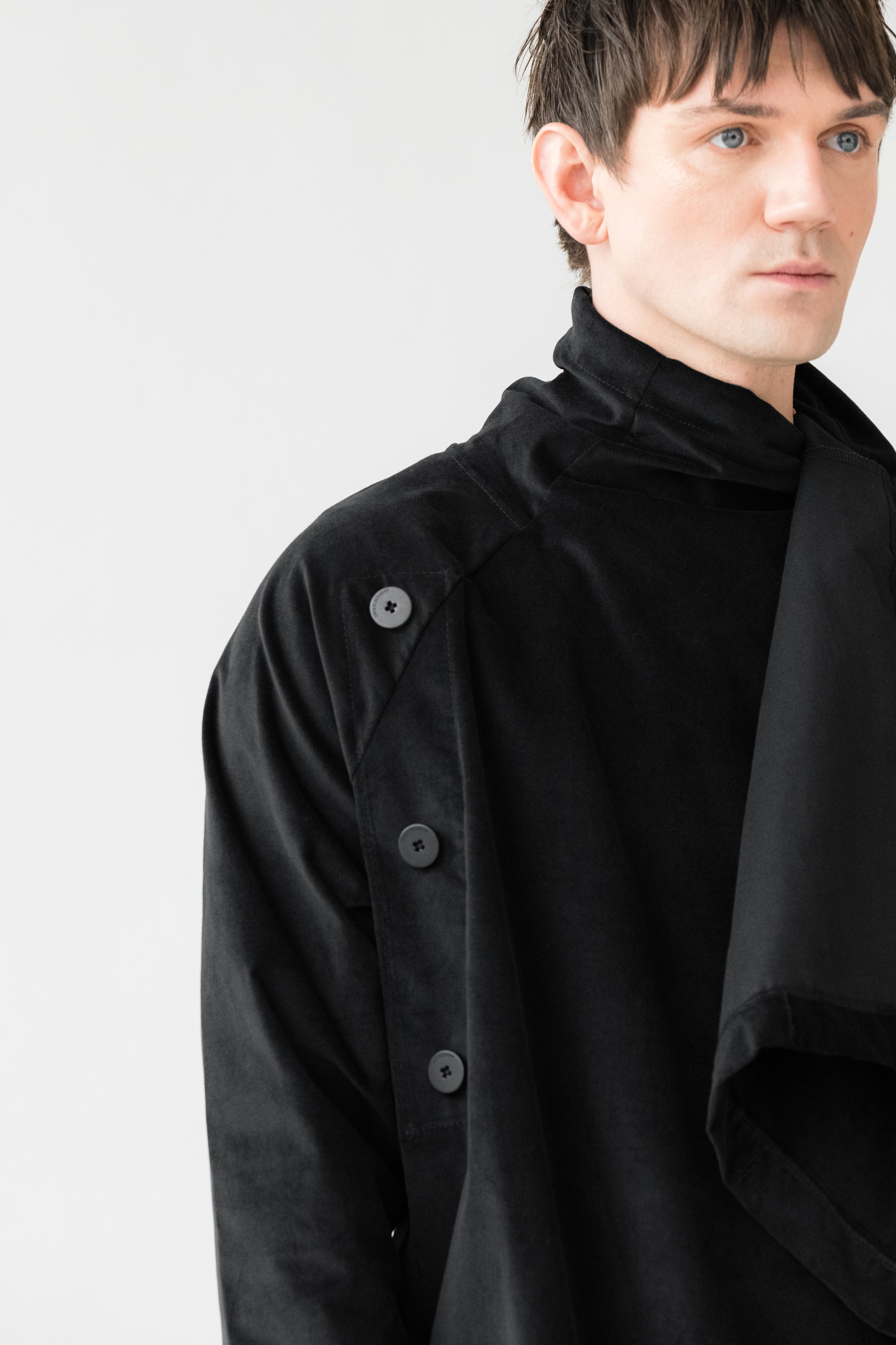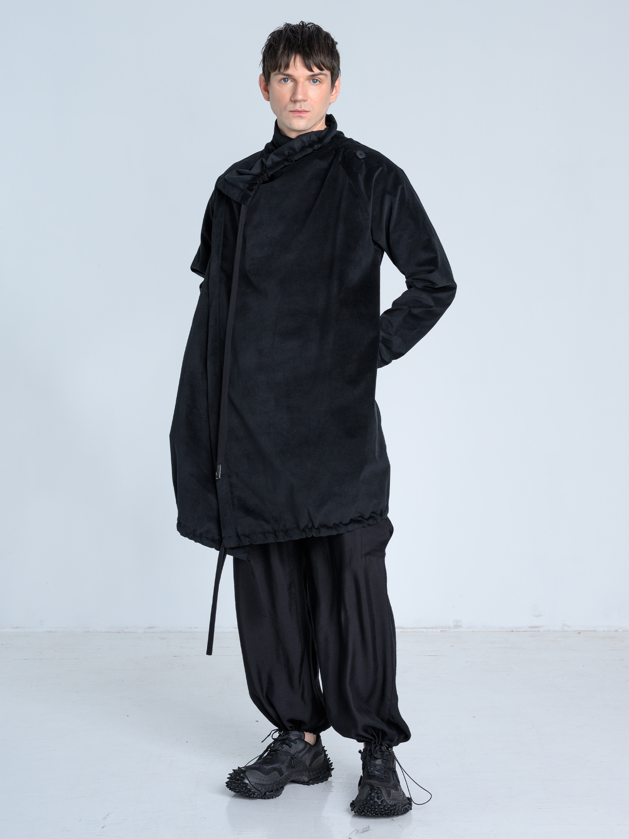 - Stójka oraz dół płaszcza posiadają troki umożliwiające zmodyfikowanie formy