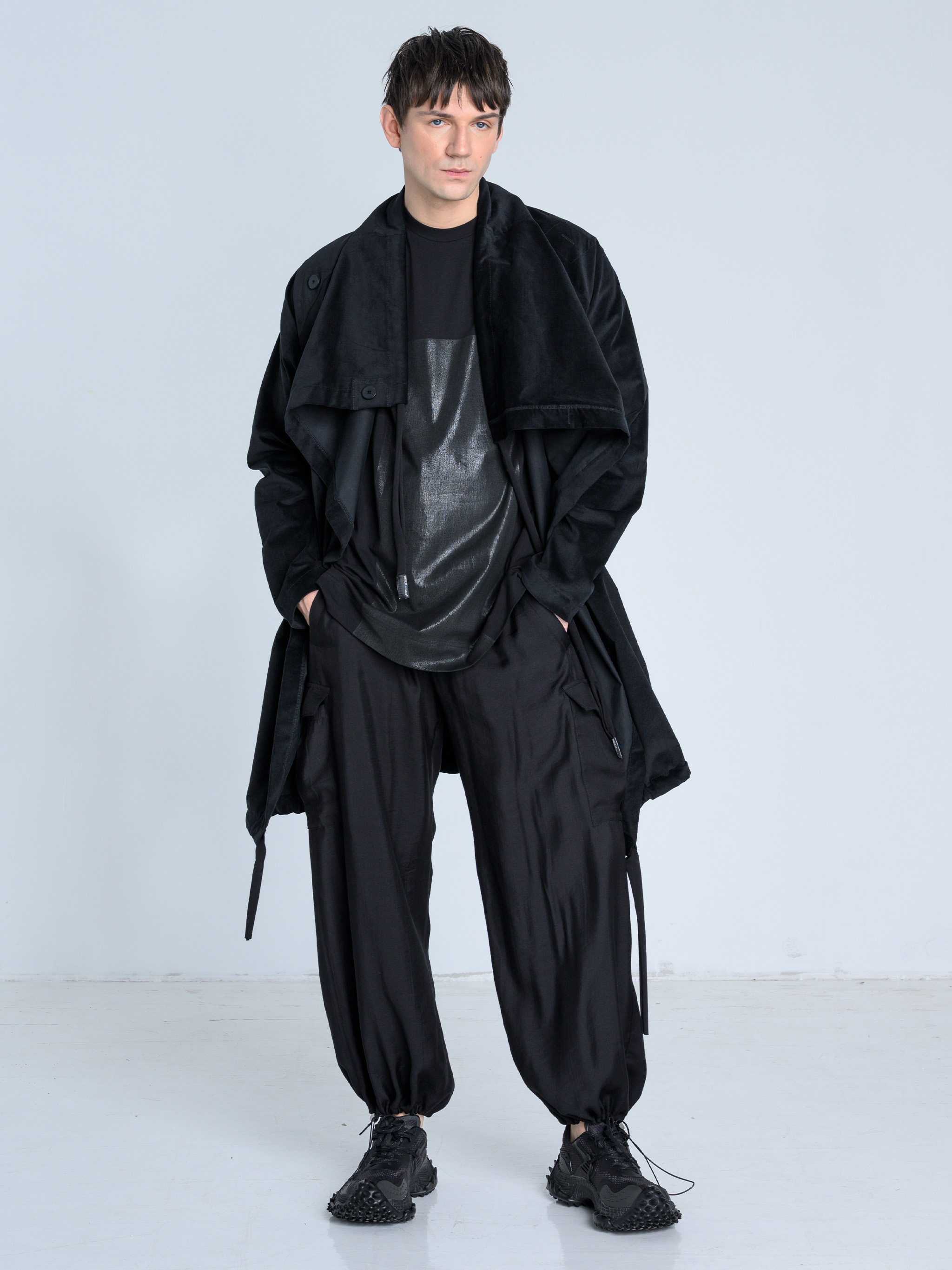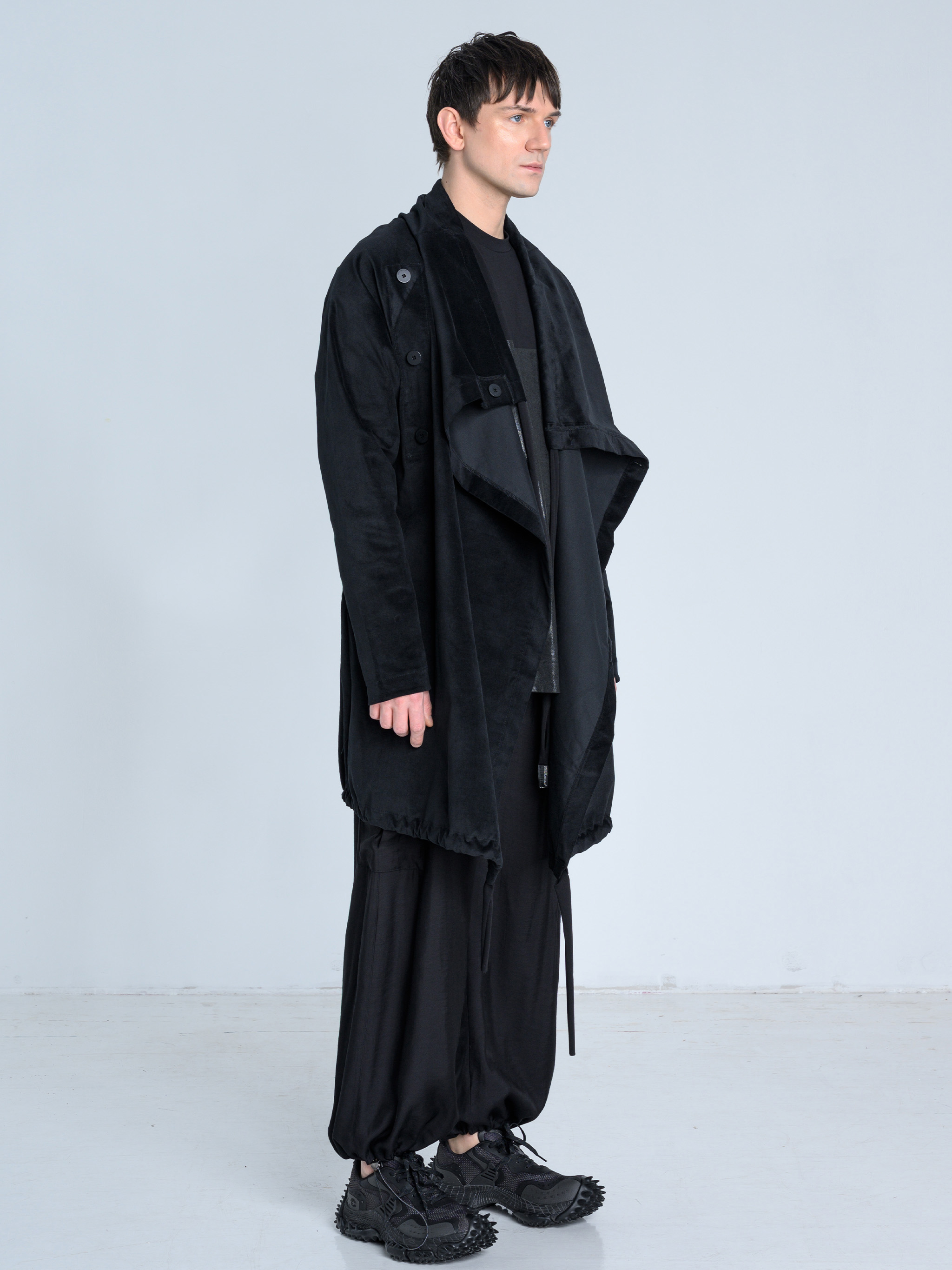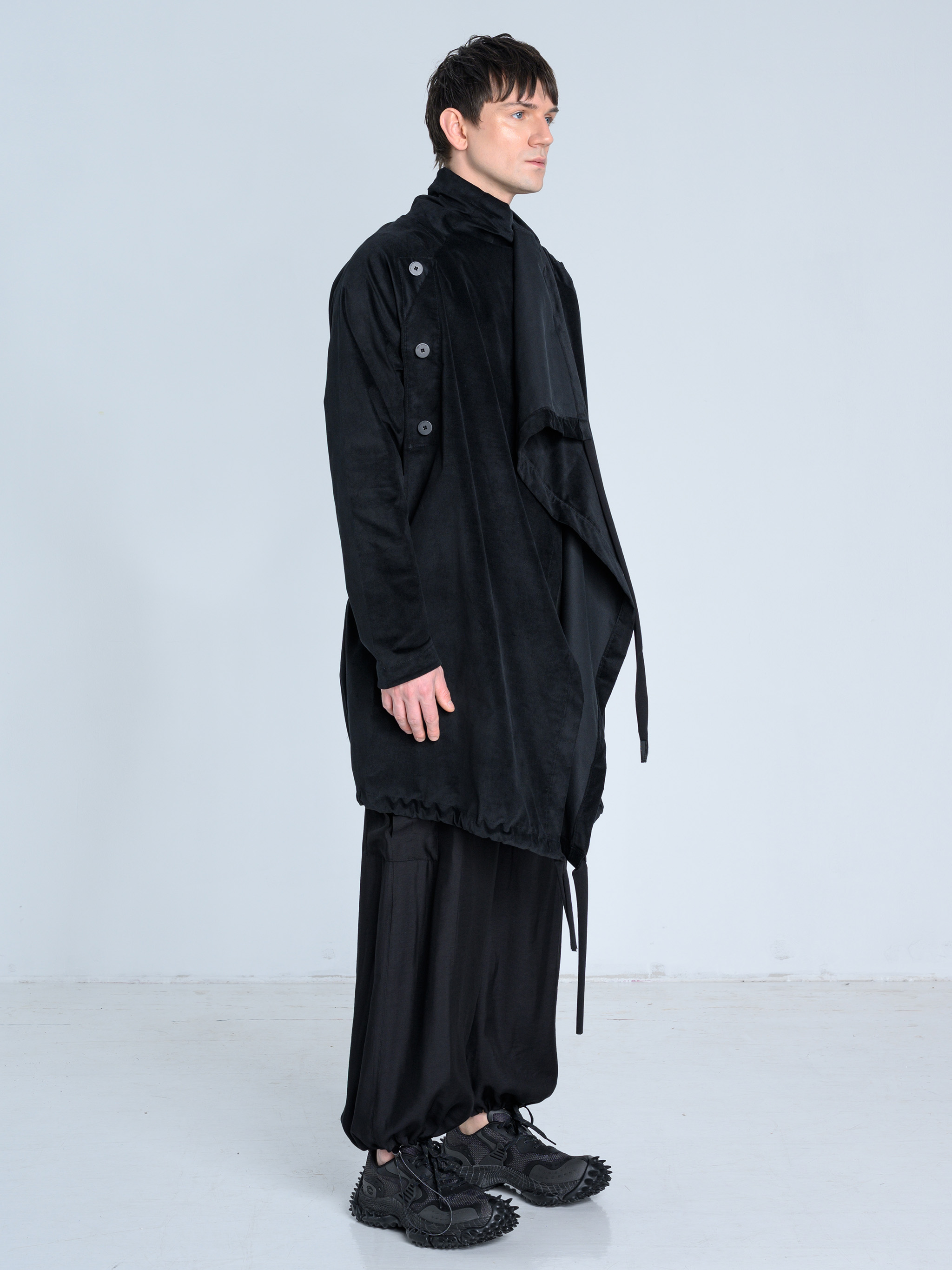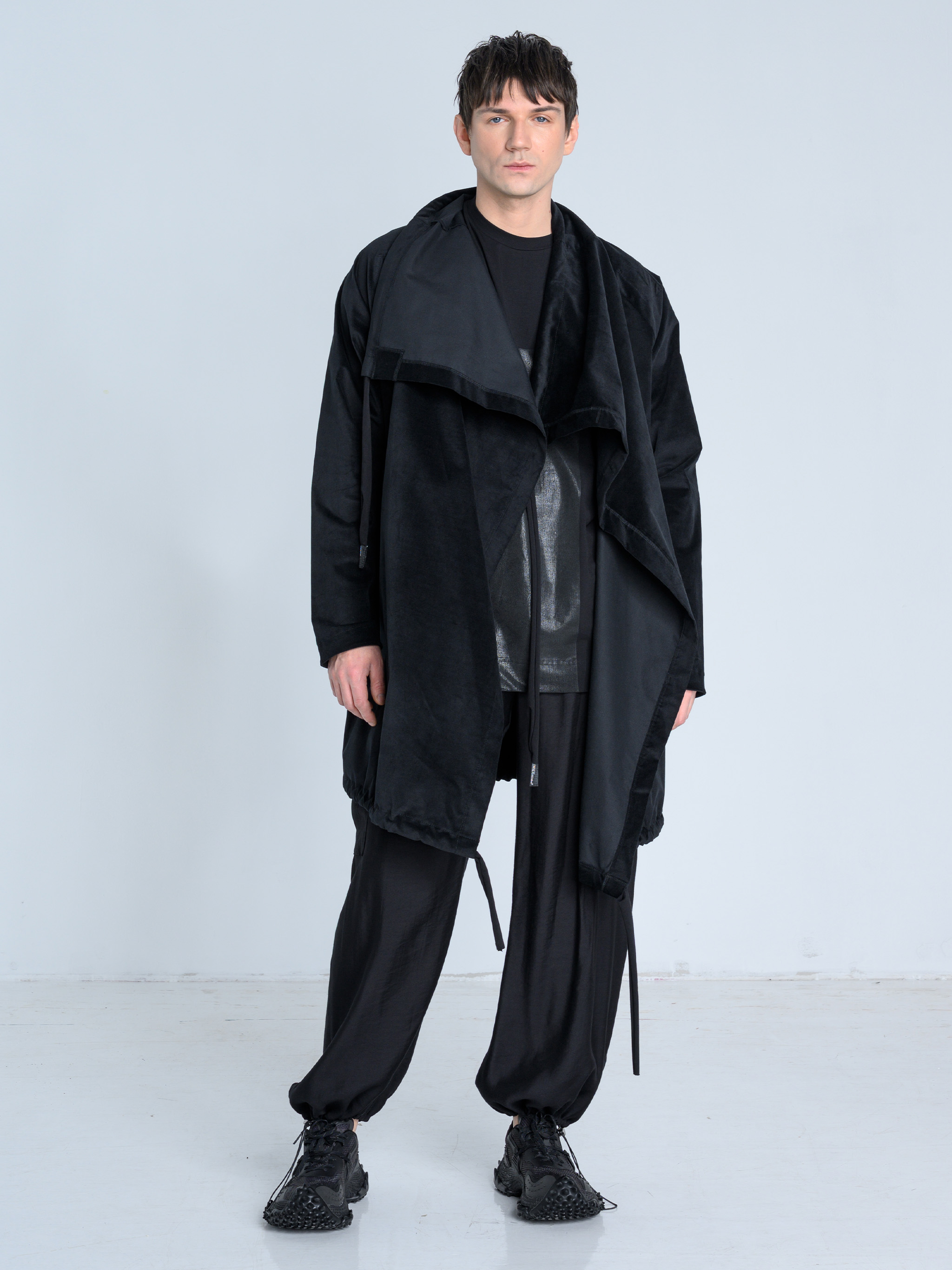 - Stójka oraz dół płaszcza posiadają troki umożliwiające zmodyfikowanie formy