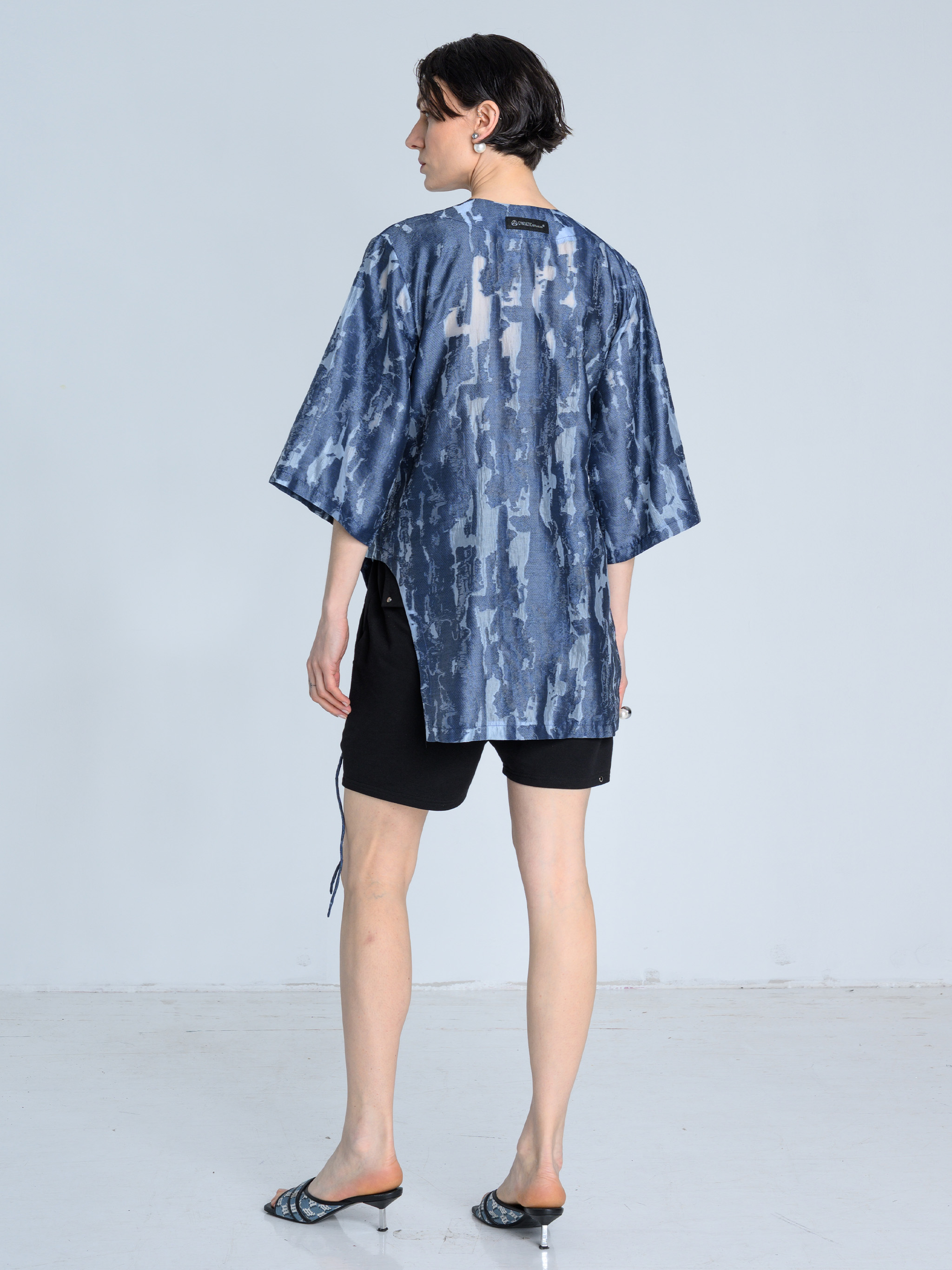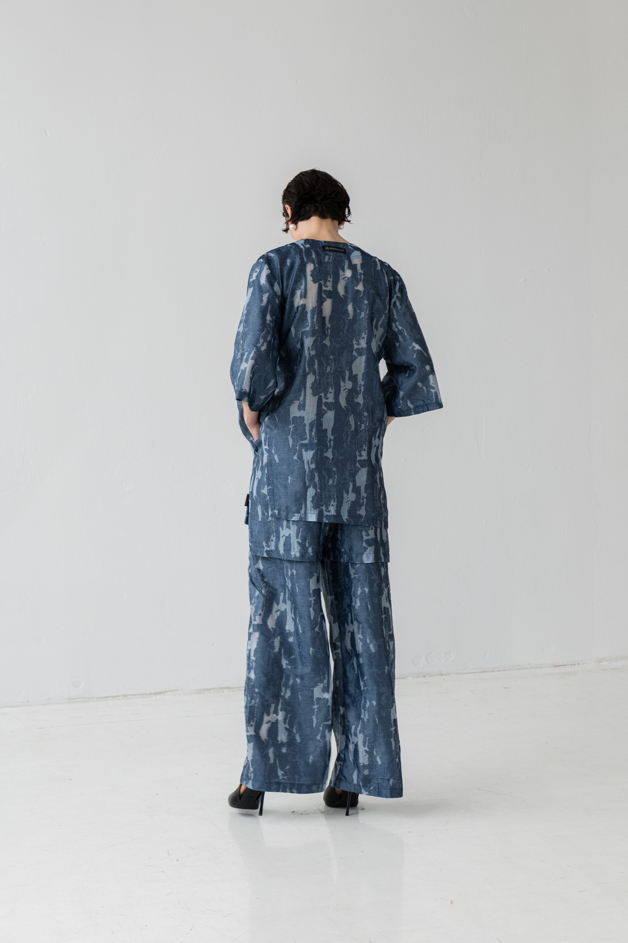 - Tkanina w niejednolitym niebieskim kolorze w formie wyjątkowego patternu