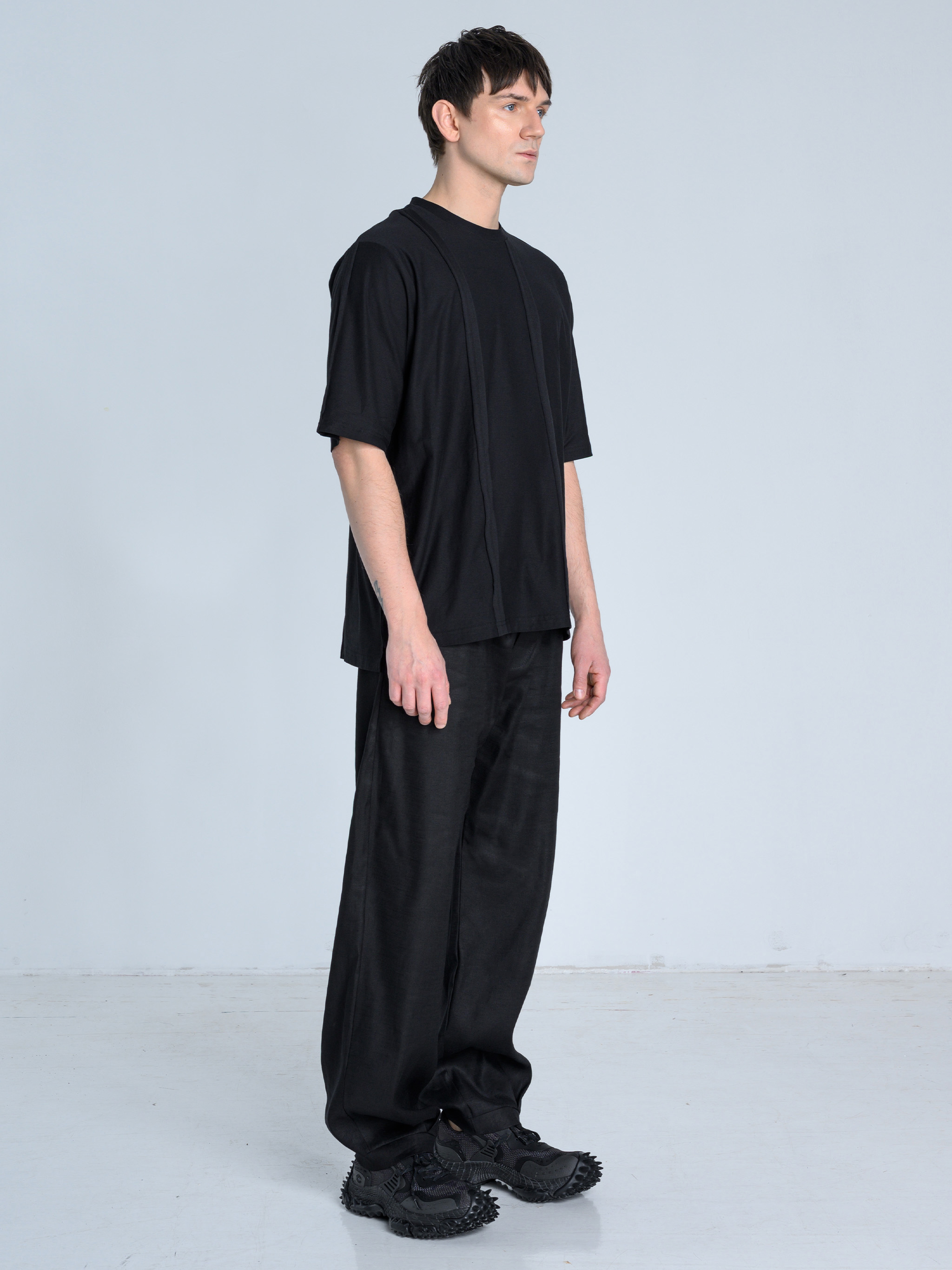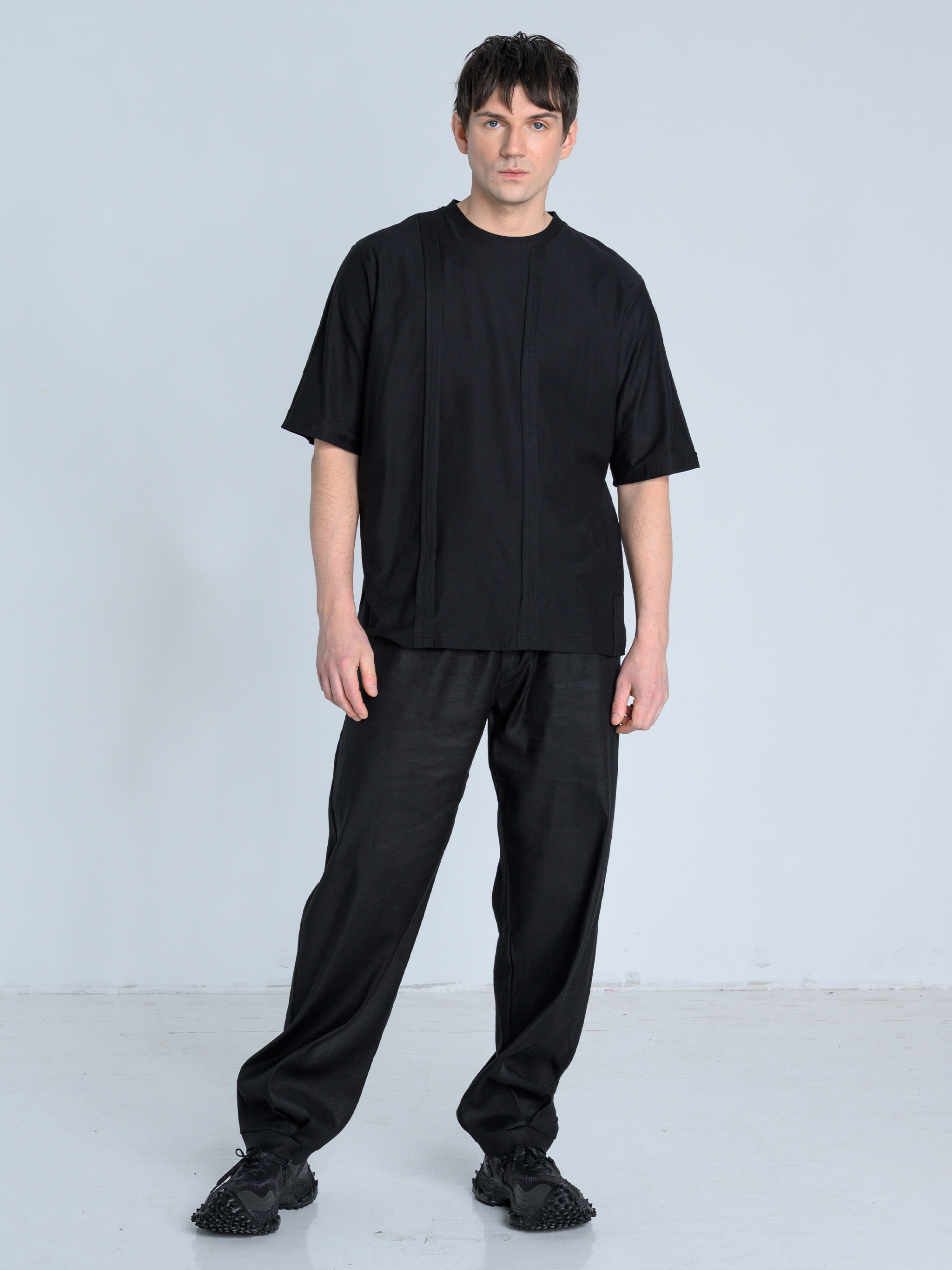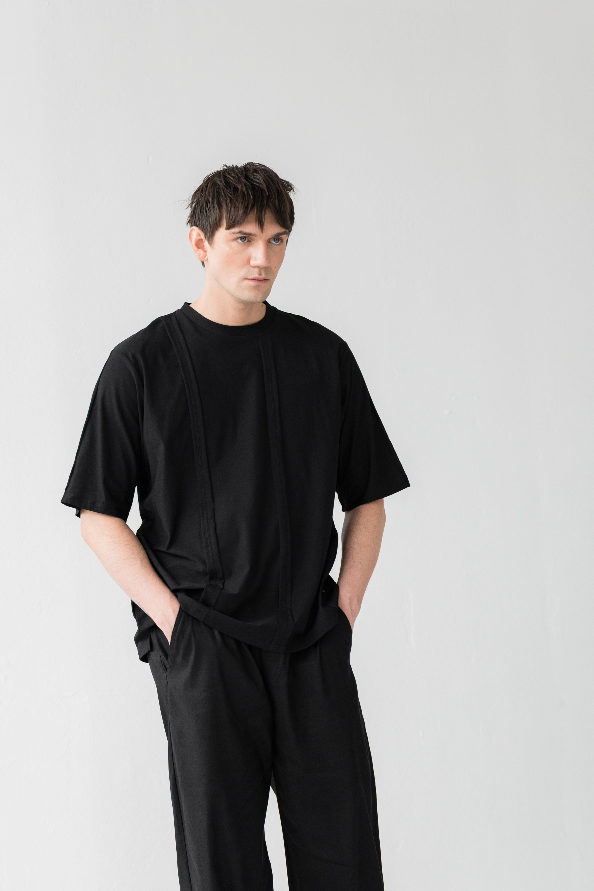 - Koszulka z pionowymi pasami, wydłużającymi optycznie sylwetkę
