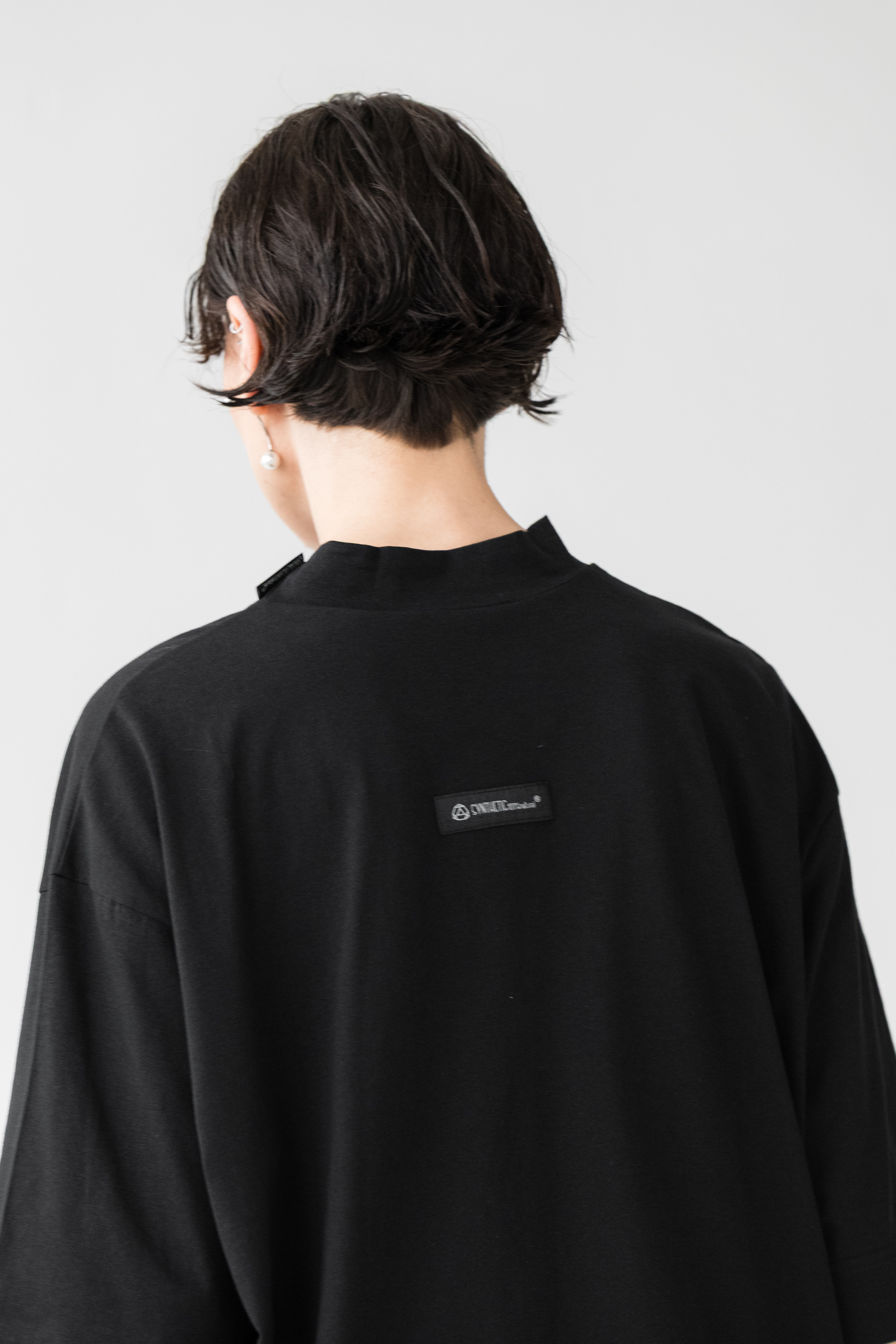 - Dekolt zakończony wysokim ściągaczem w formie półstójki