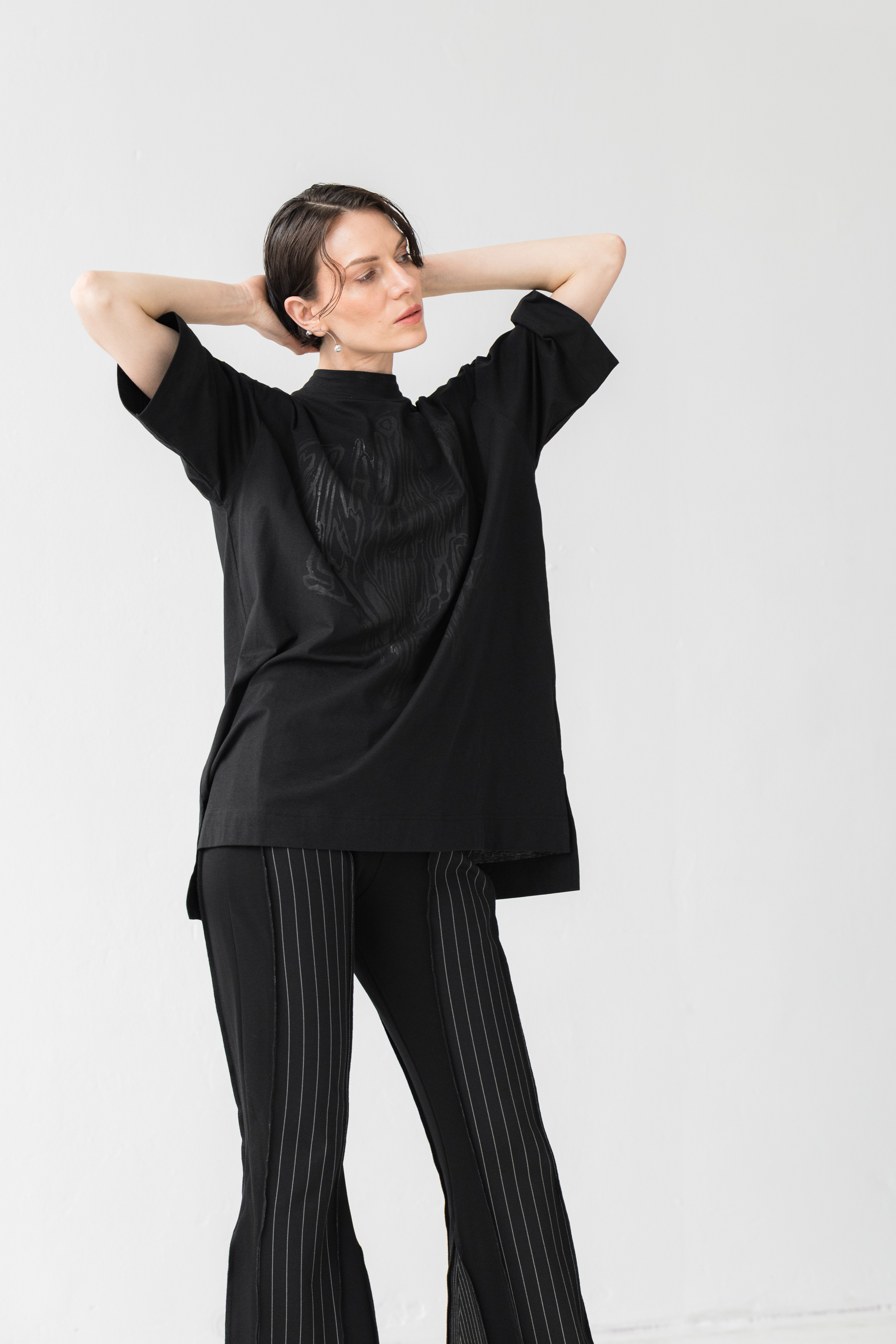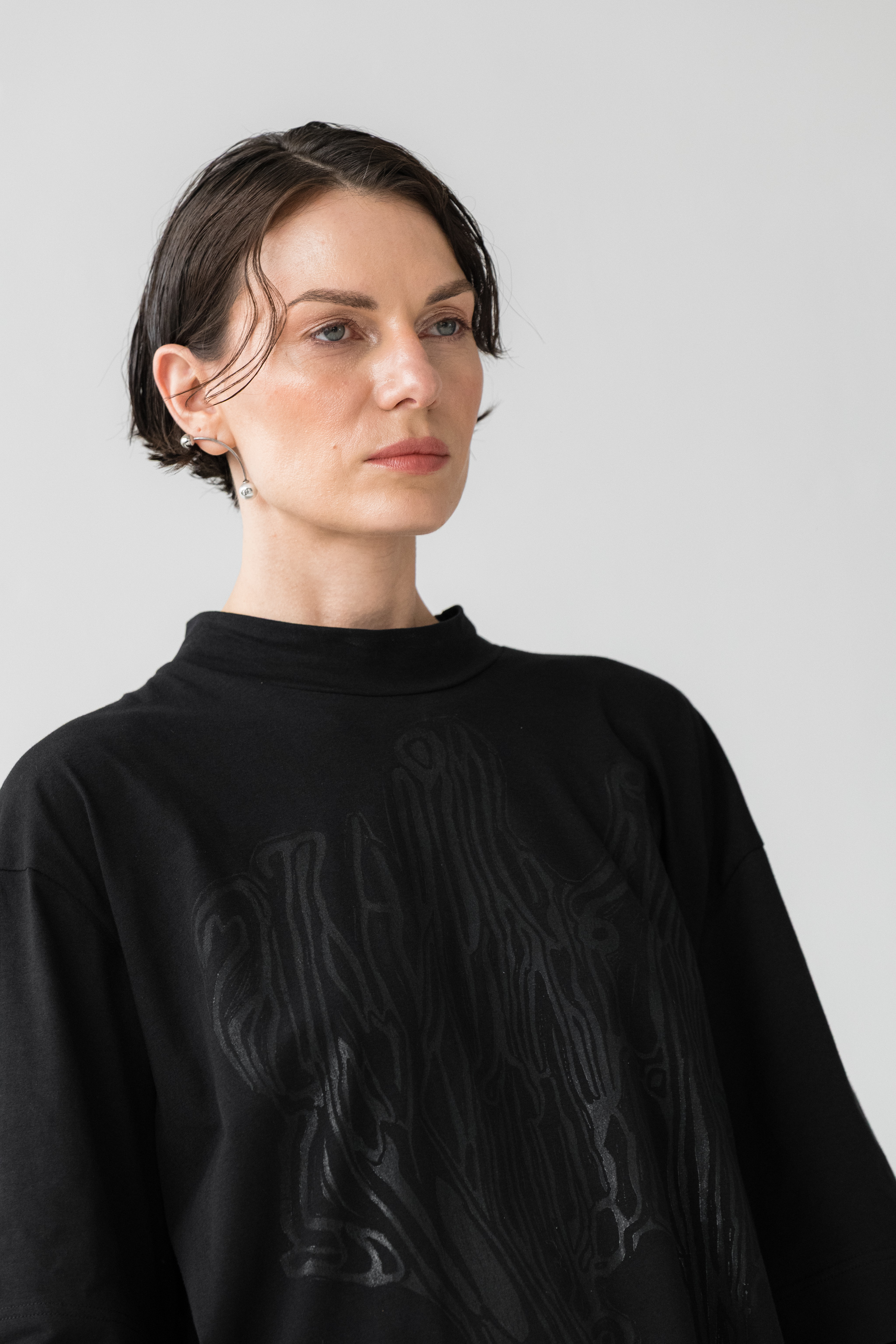 - Z przodu koszulki autorska ręcznie odbita grafika w technologii linorytu, wykonana farbami przeznaczonymi do tkanin z gwarancją trwałości producenta. Każda sztuka jest niepowtarzalna, poszczególne sztuki mogą się między sobą minimalnie różnić.