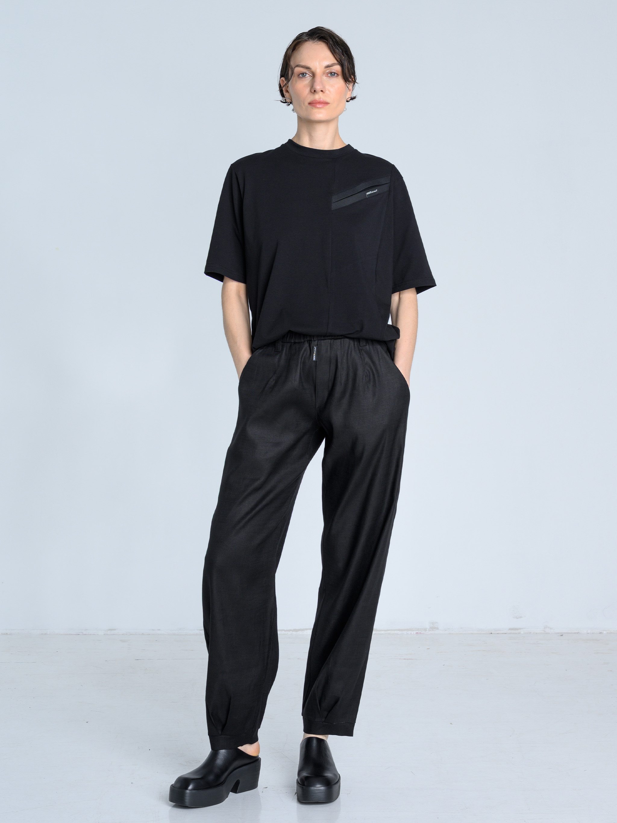 - Delikatny żakardowy label na pasplu