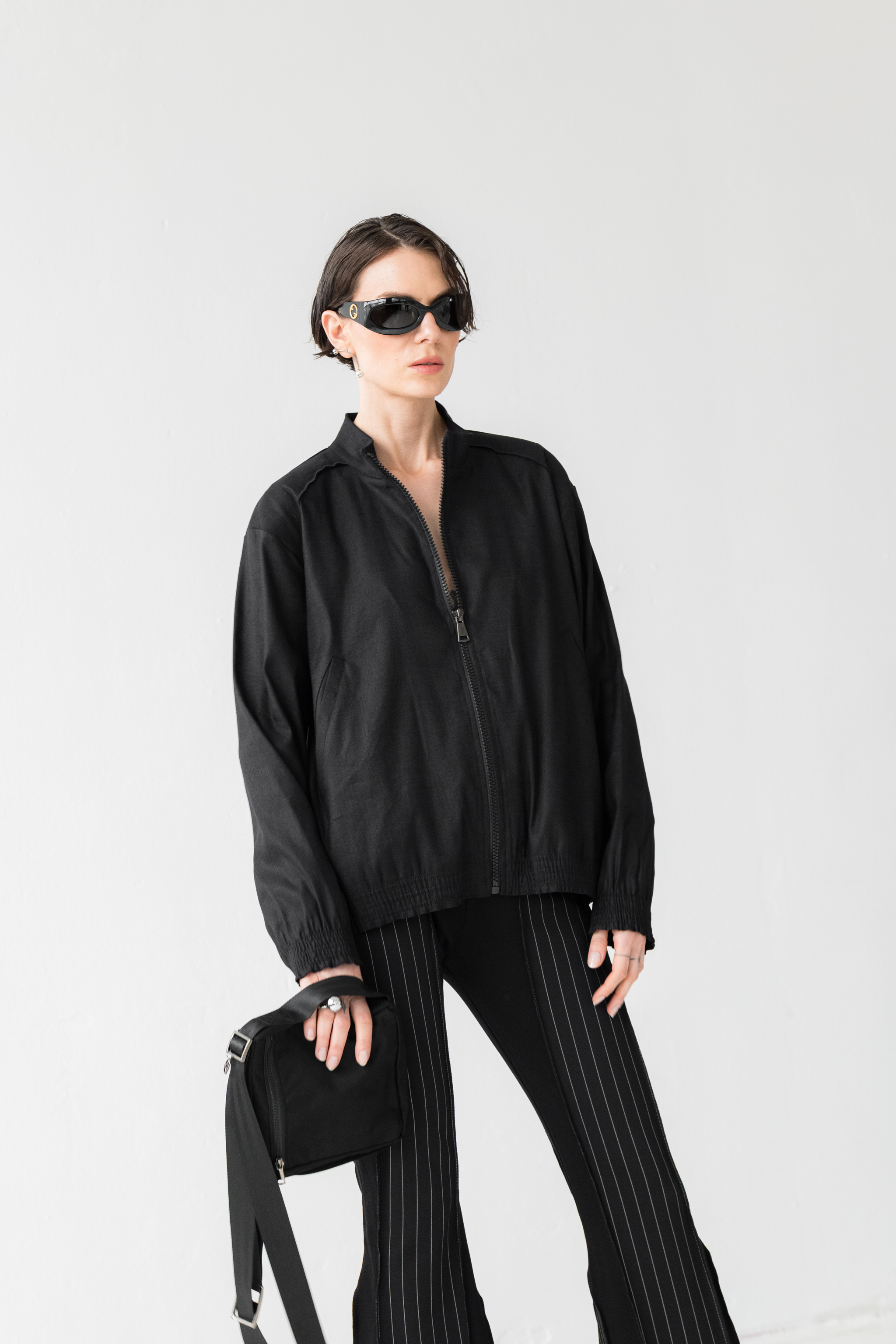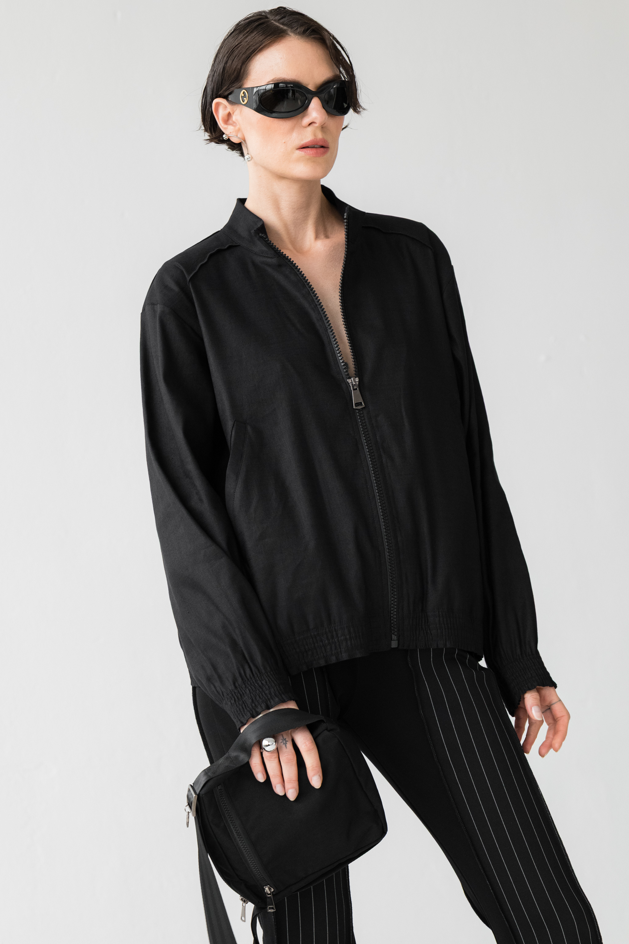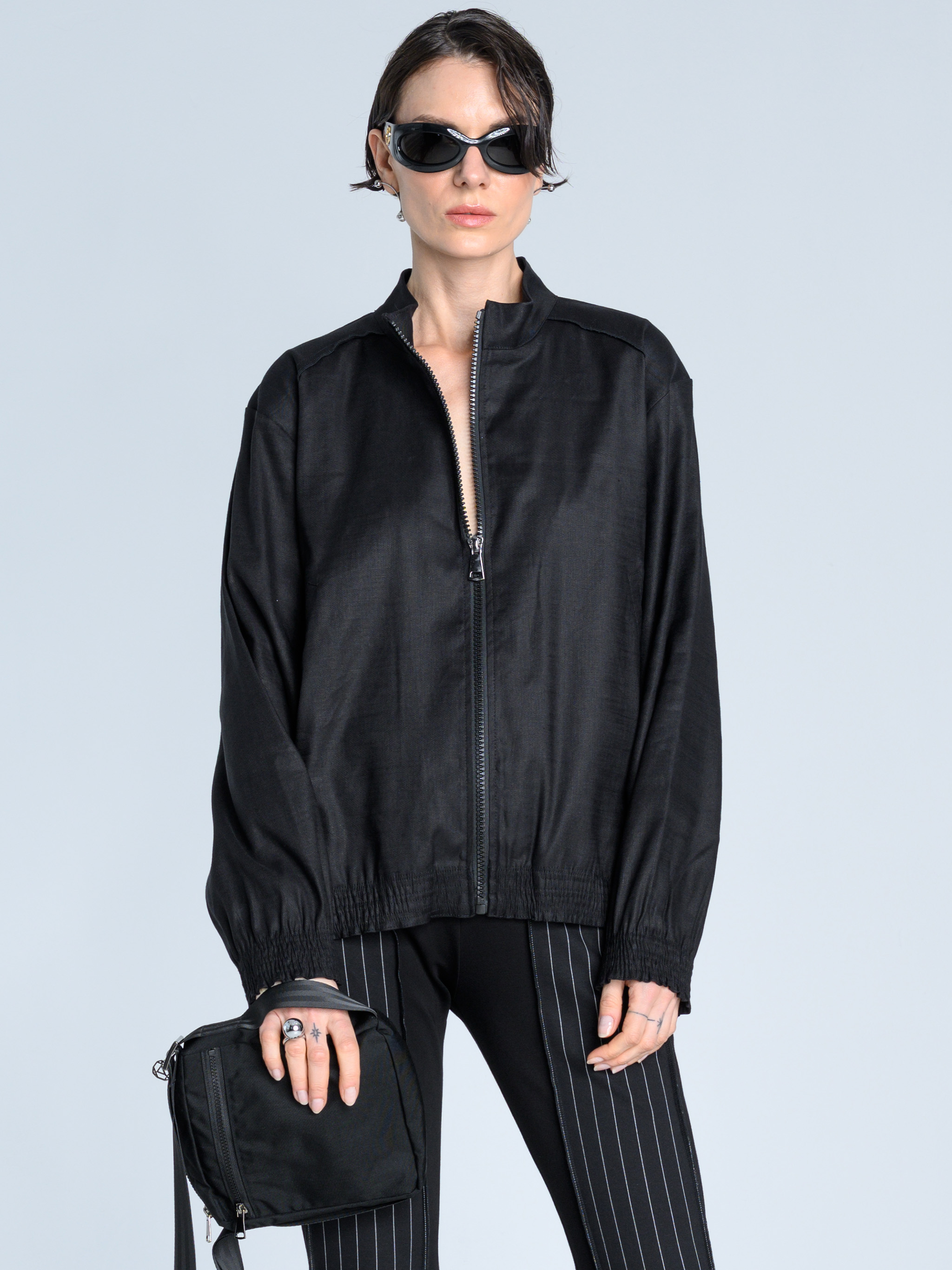 - Kurtka wykonana z wysokogatunkowej certyfikowanej tkaniny lnianej z dodatkiem rayonu i elastanu