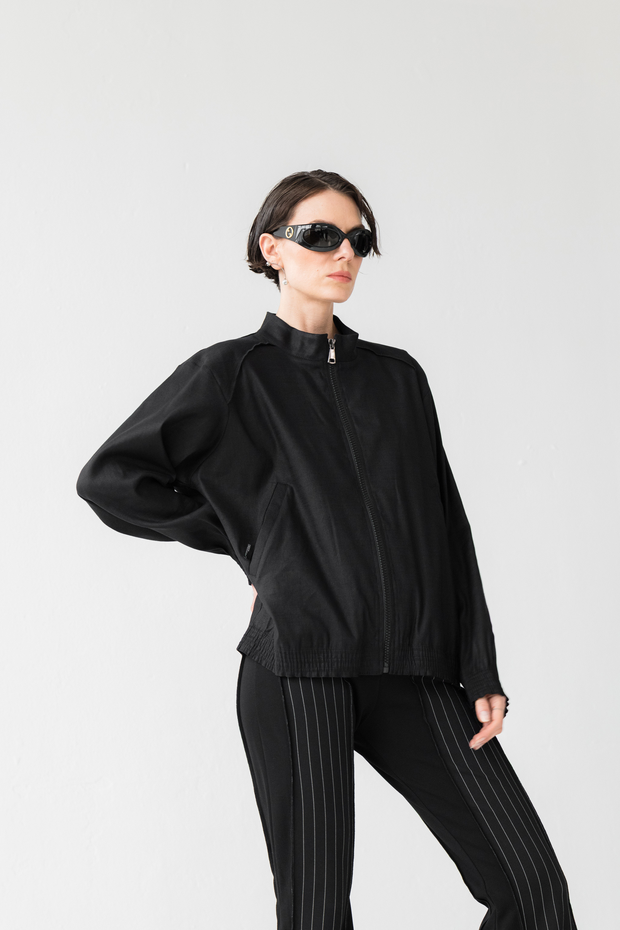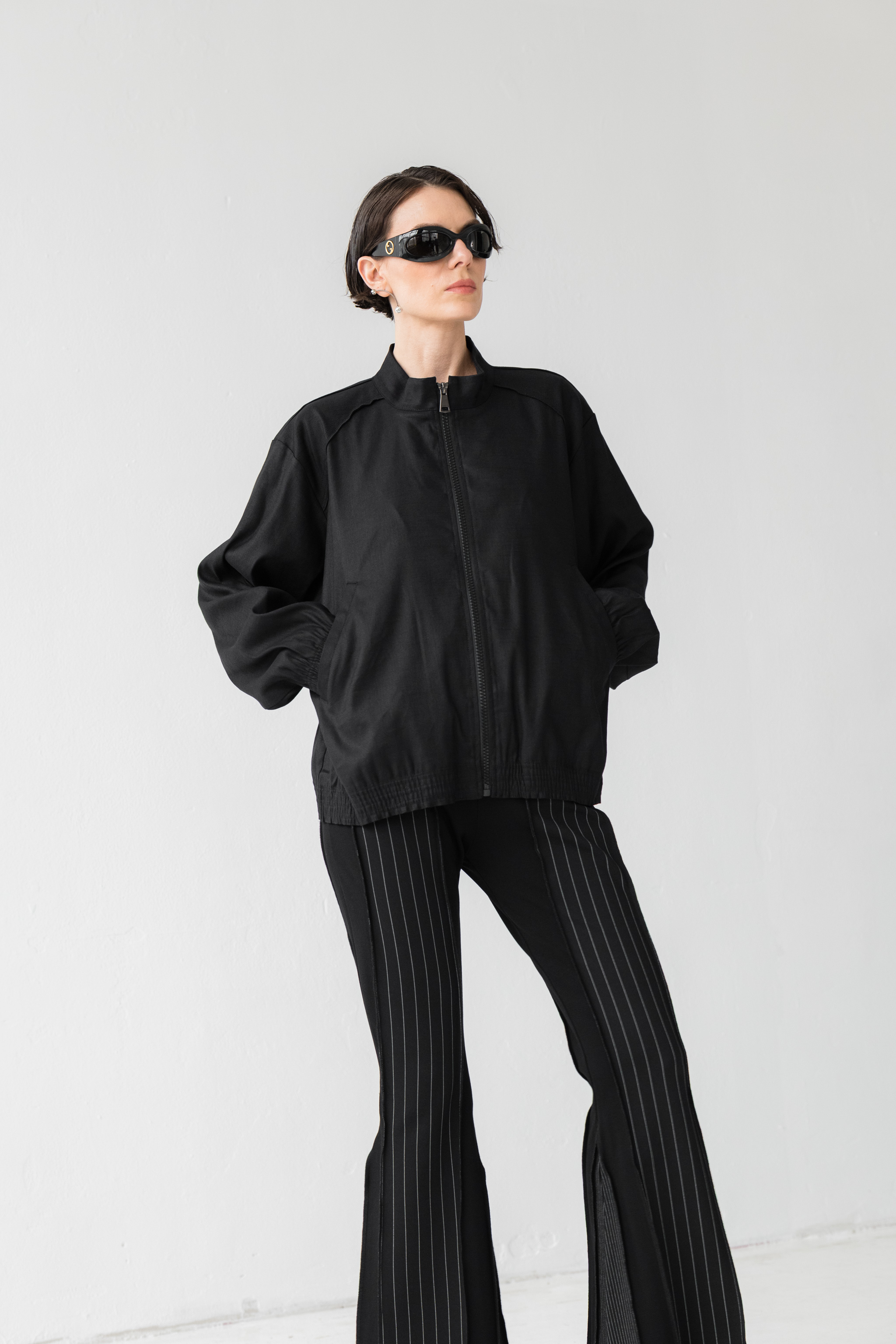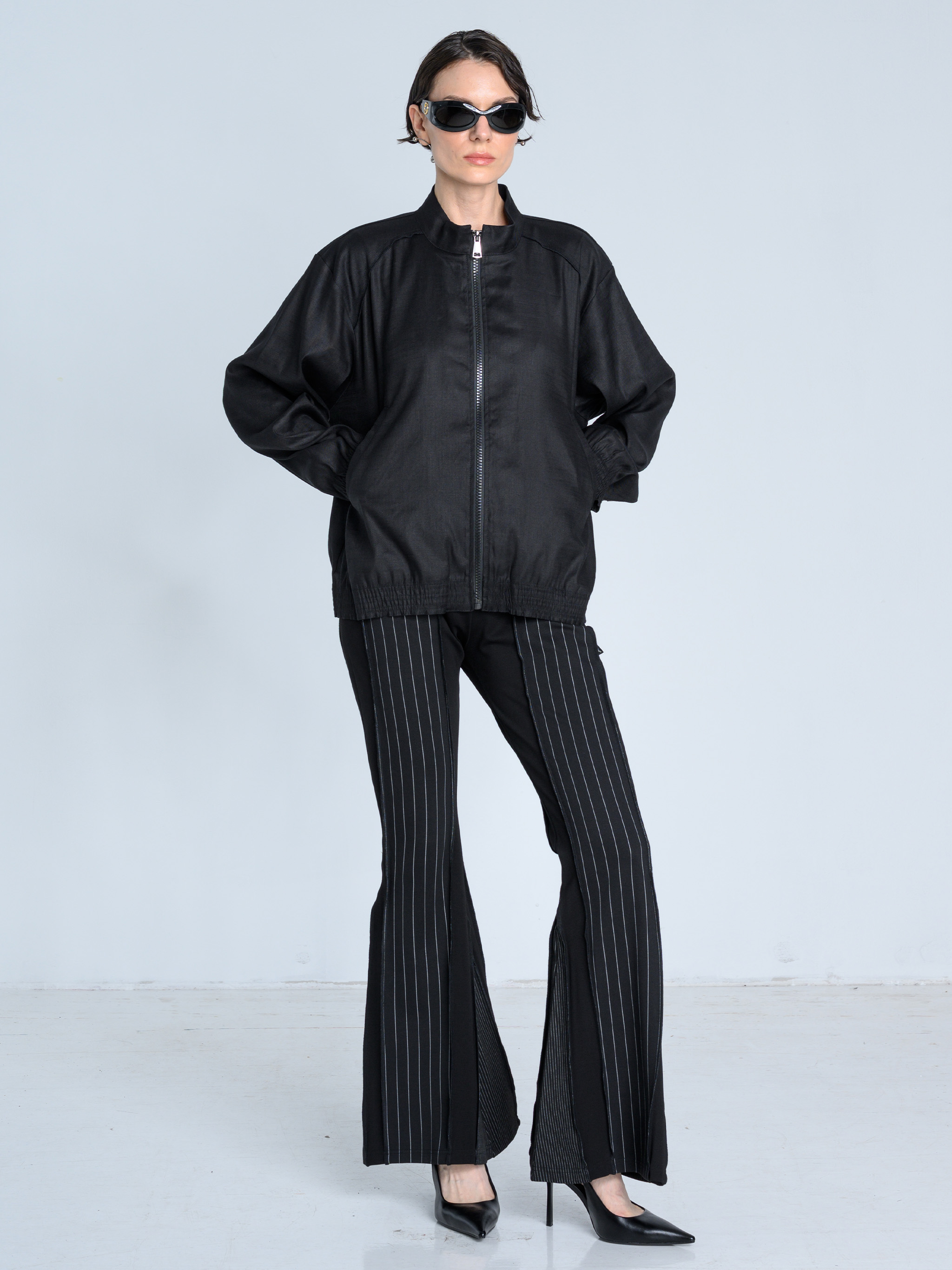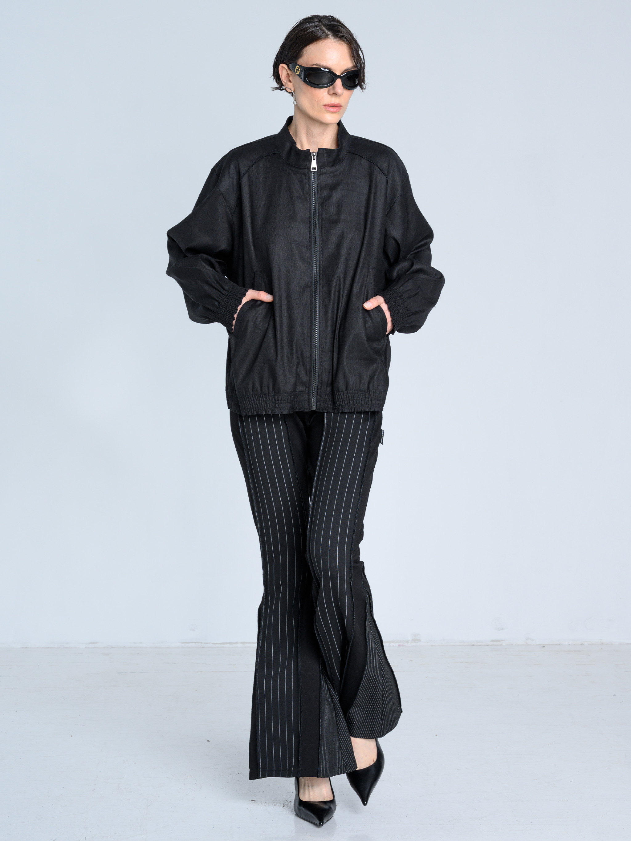 - Kurtka wykonana z wysokogatunkowej certyfikowanej tkaniny lnianej z dodatkiem rayonu i elastanu
