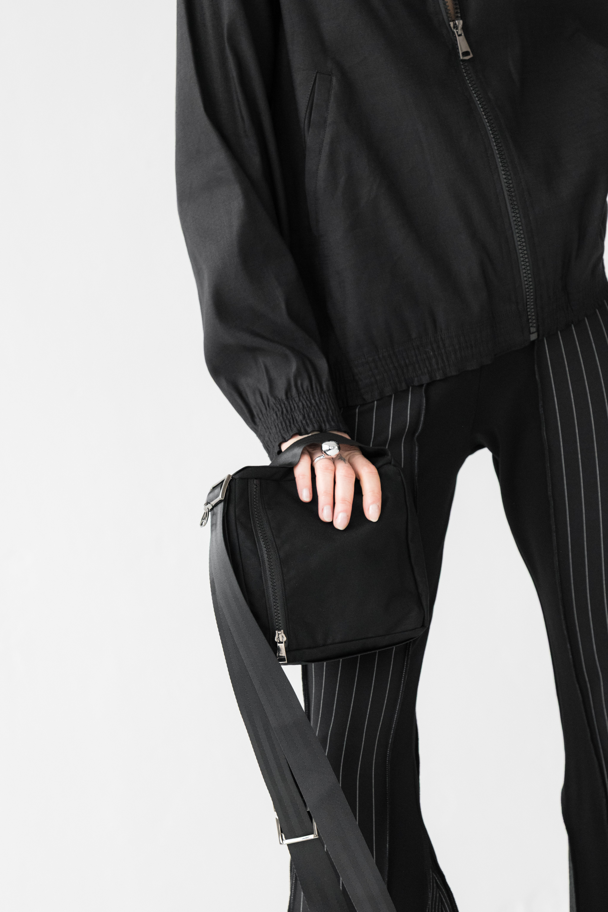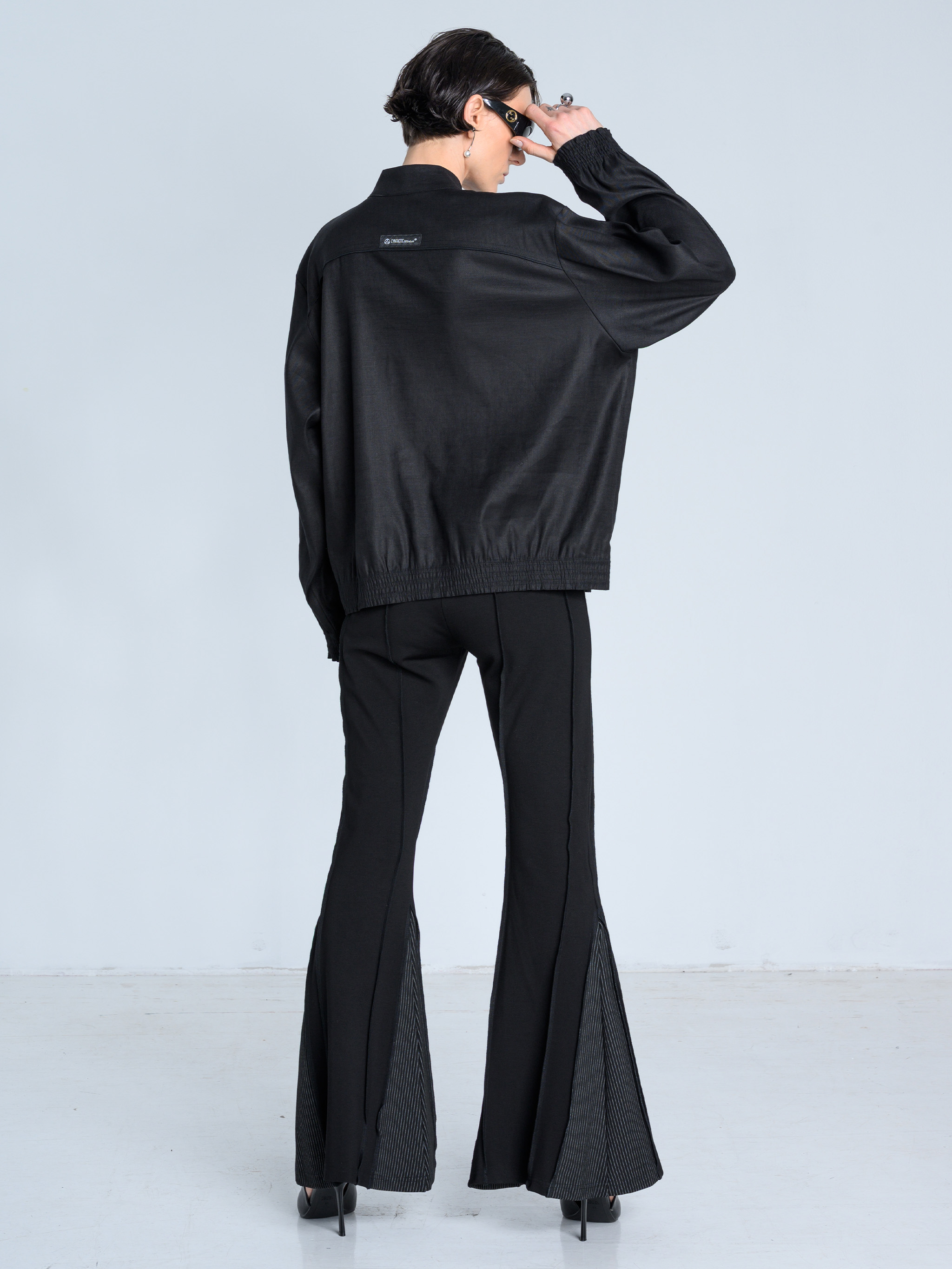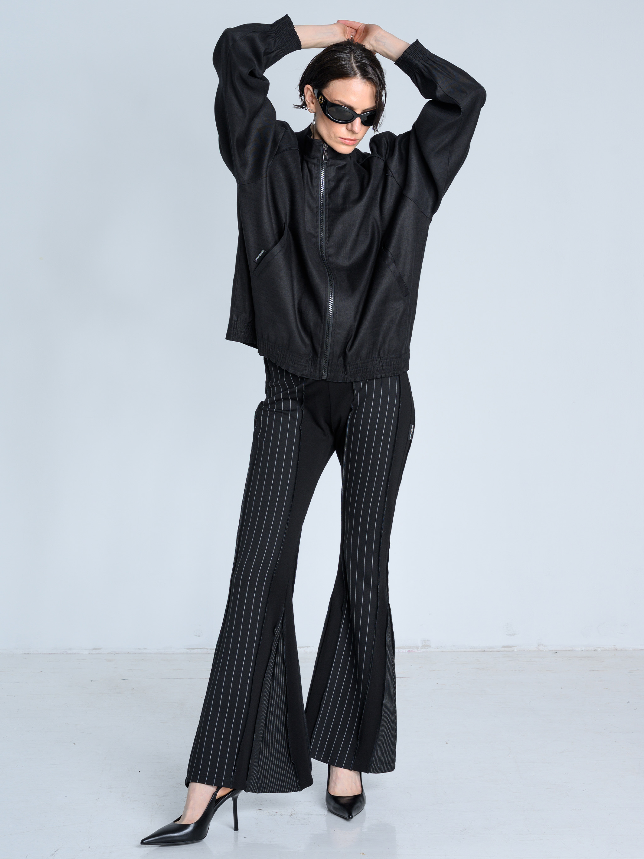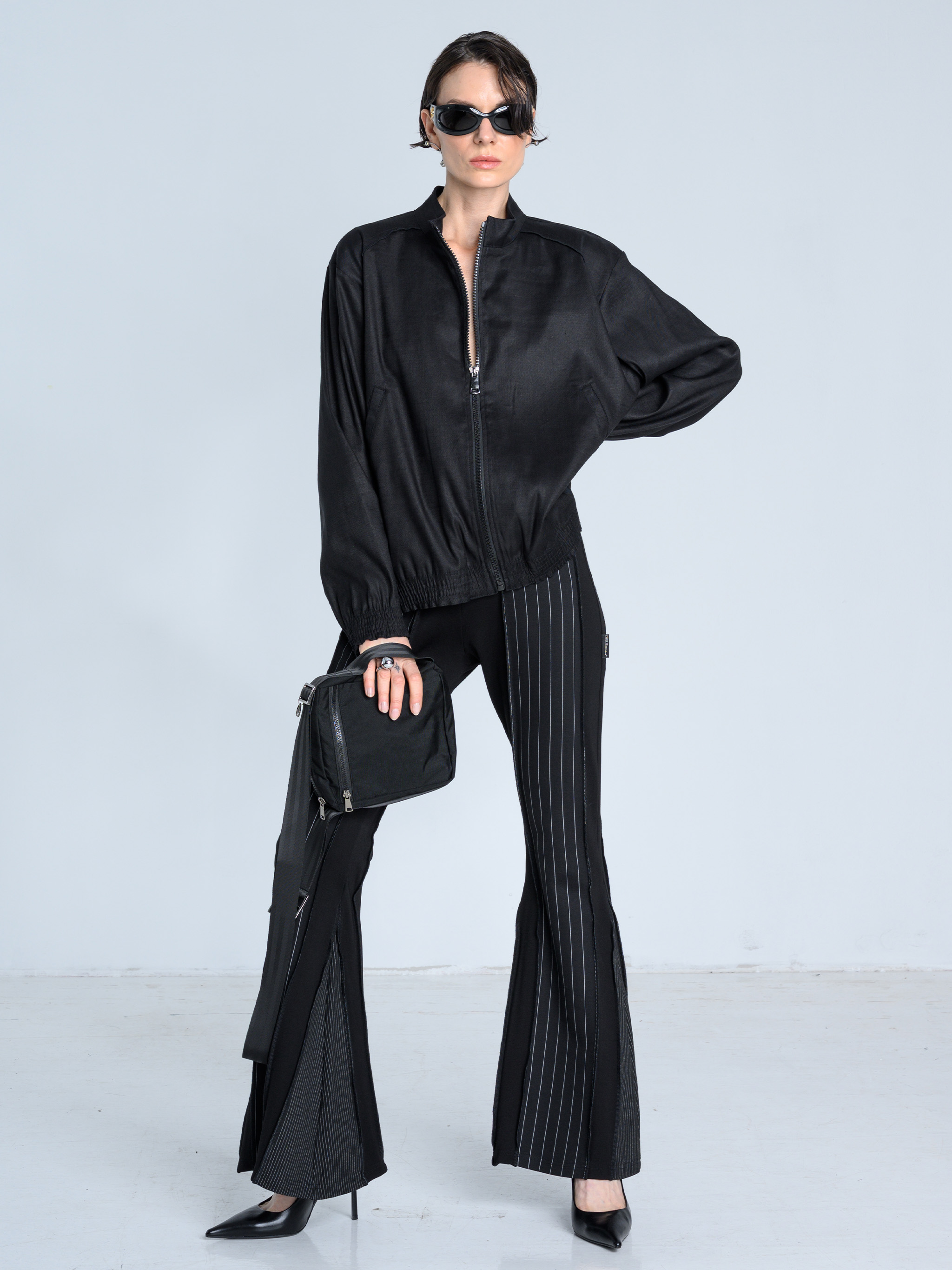 - Kurtka zapinana na masywny czarny zamek, rozświetlony zawieszką w kolorze ciemnego grafitu
