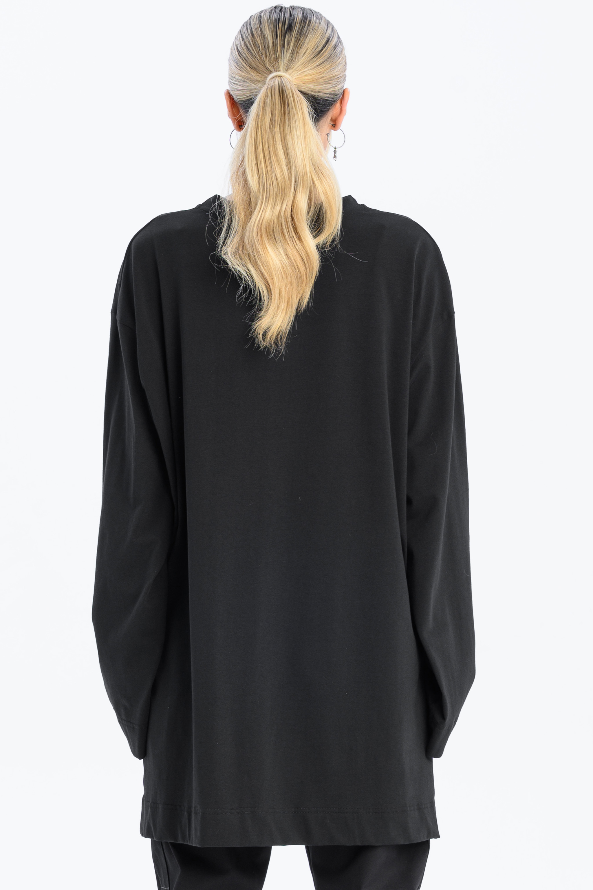 - Linia dołu bluzki i rękawów z szerokim podwinięciem dodającym elegancji