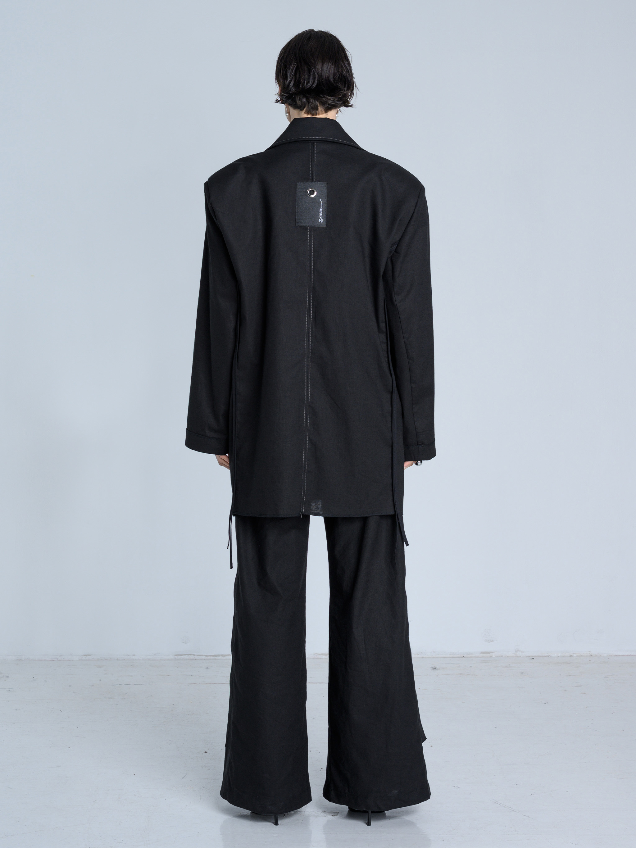 - Z tyłu lamówki wychodzące poza długość marynarki