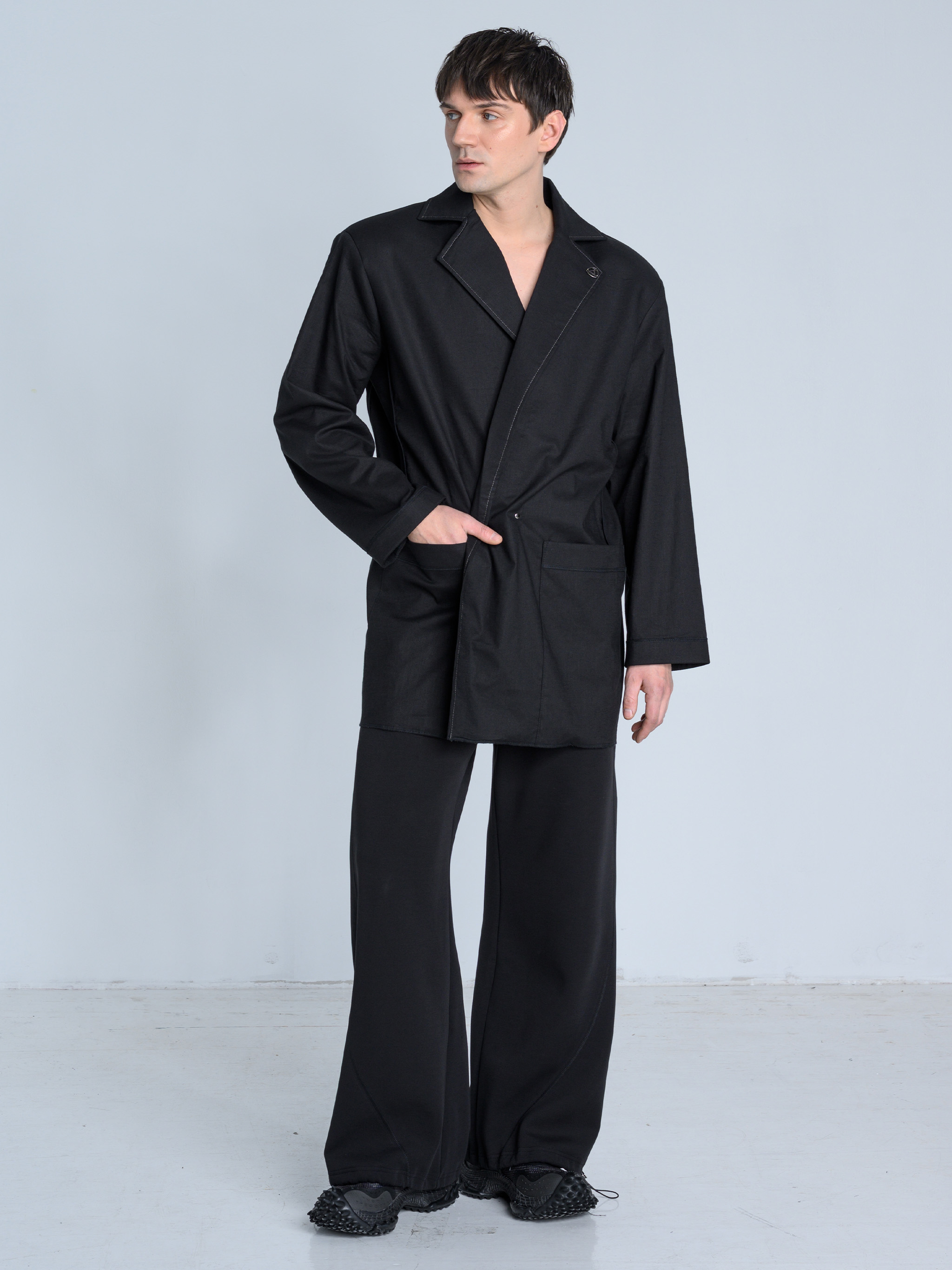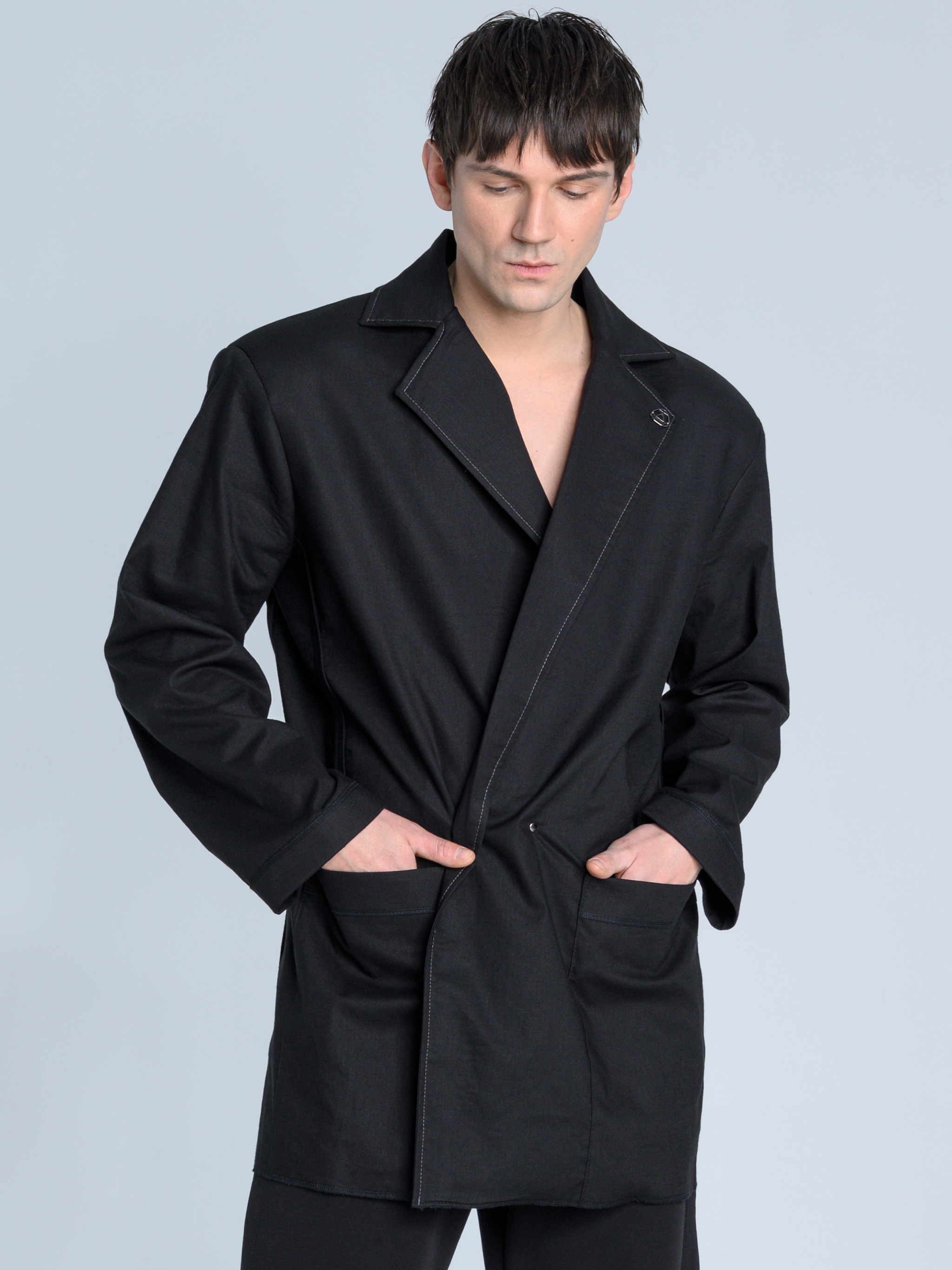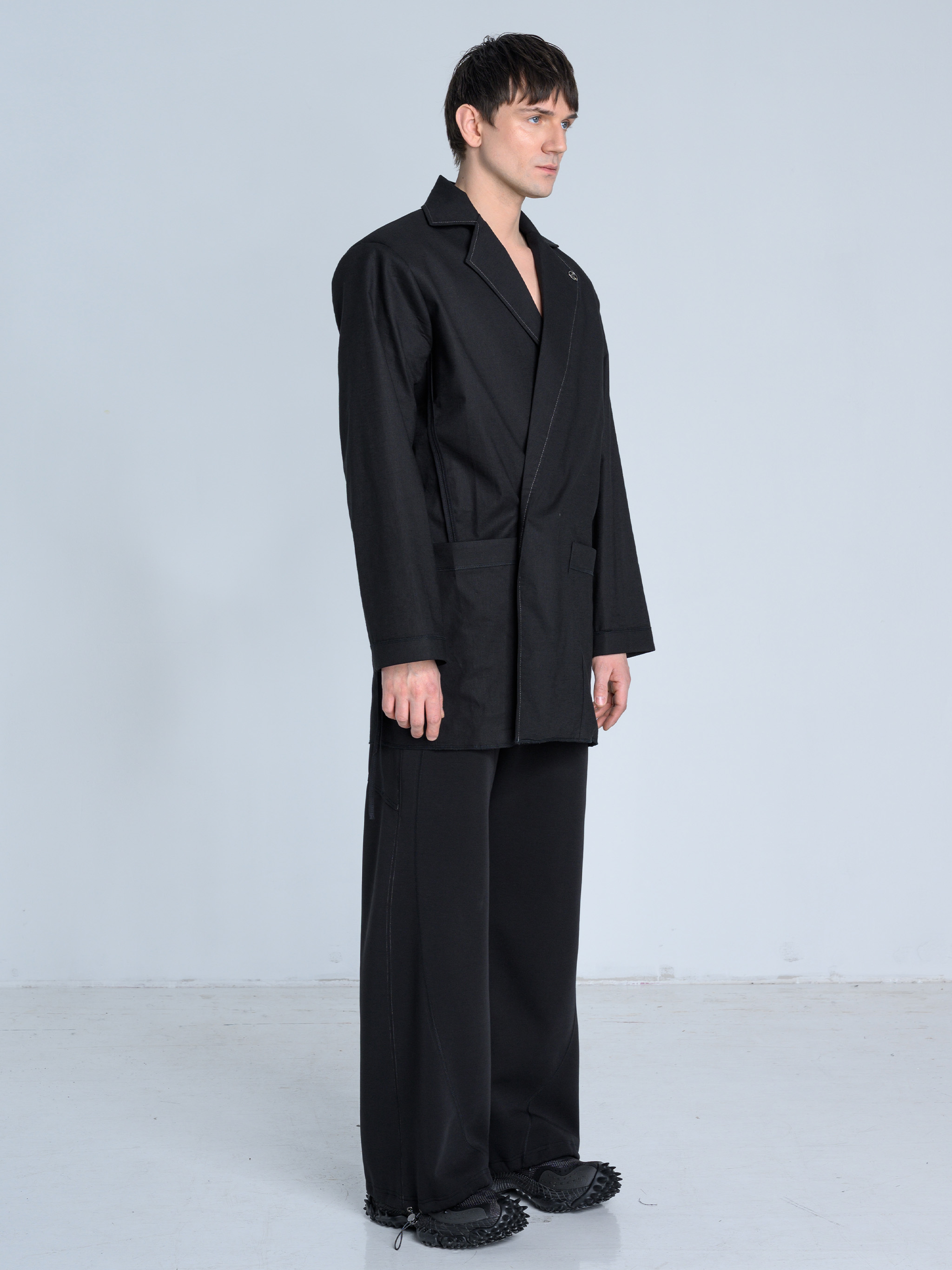 - Dół marynarki zakończony surowym ściegiem