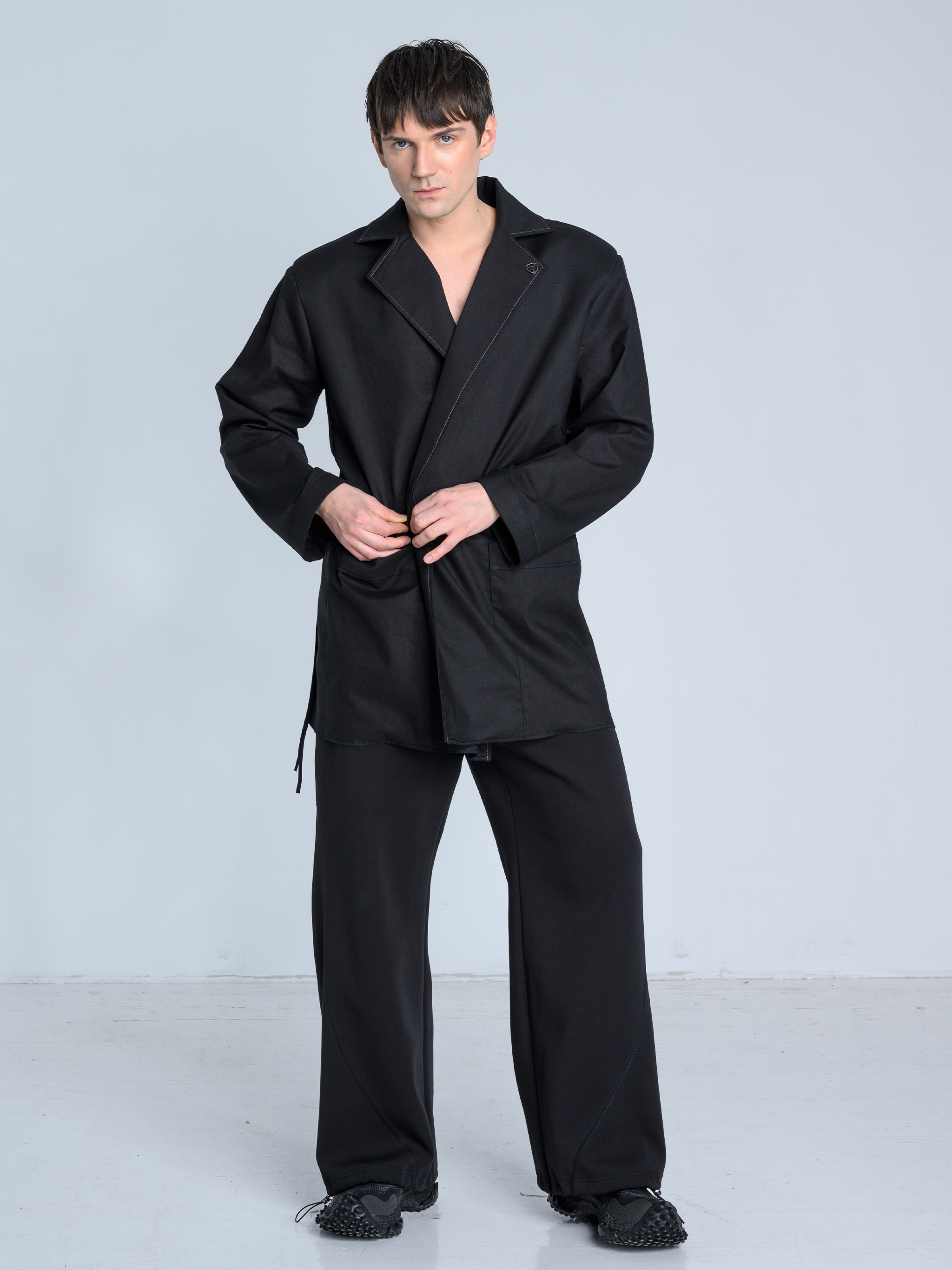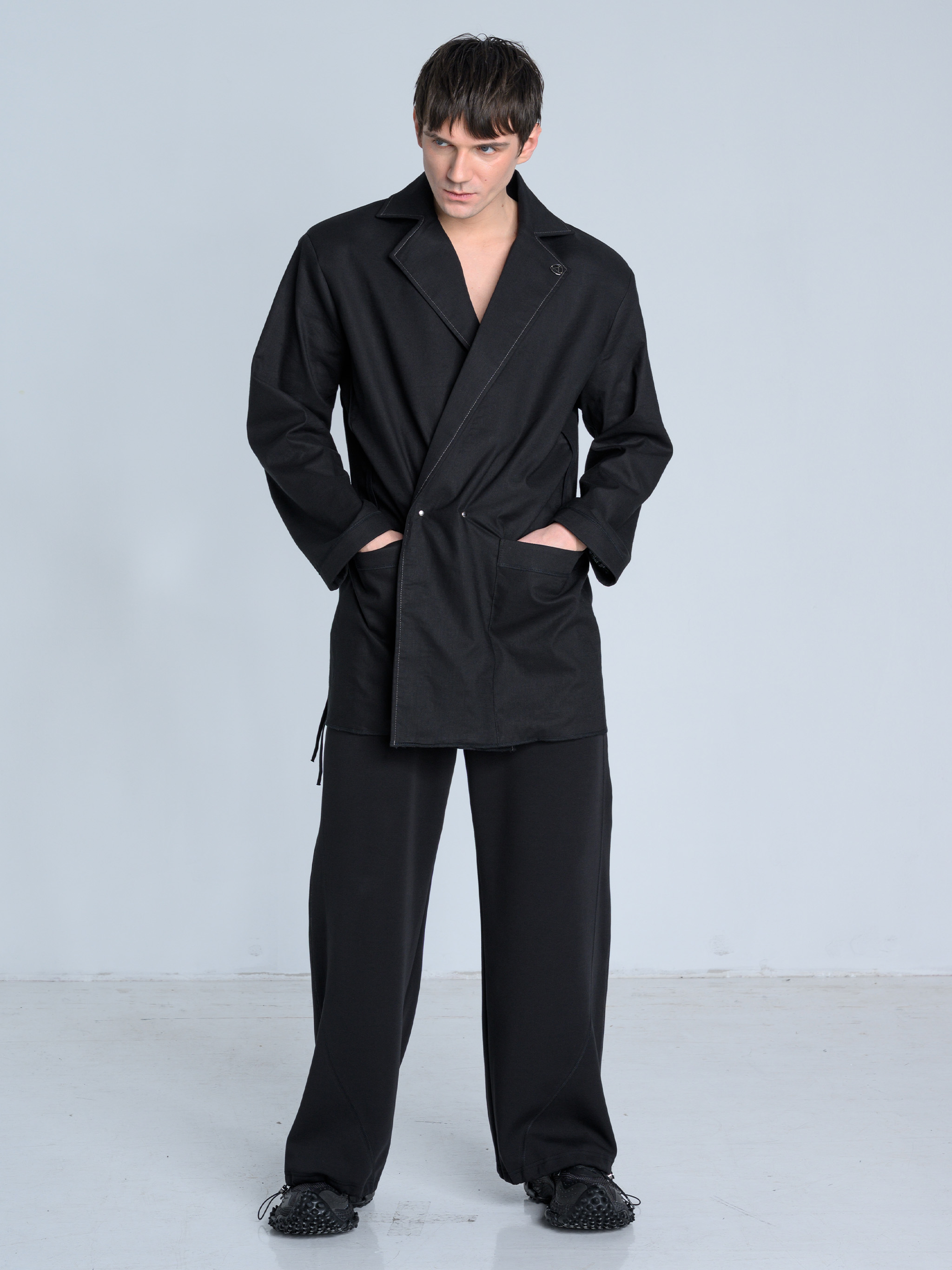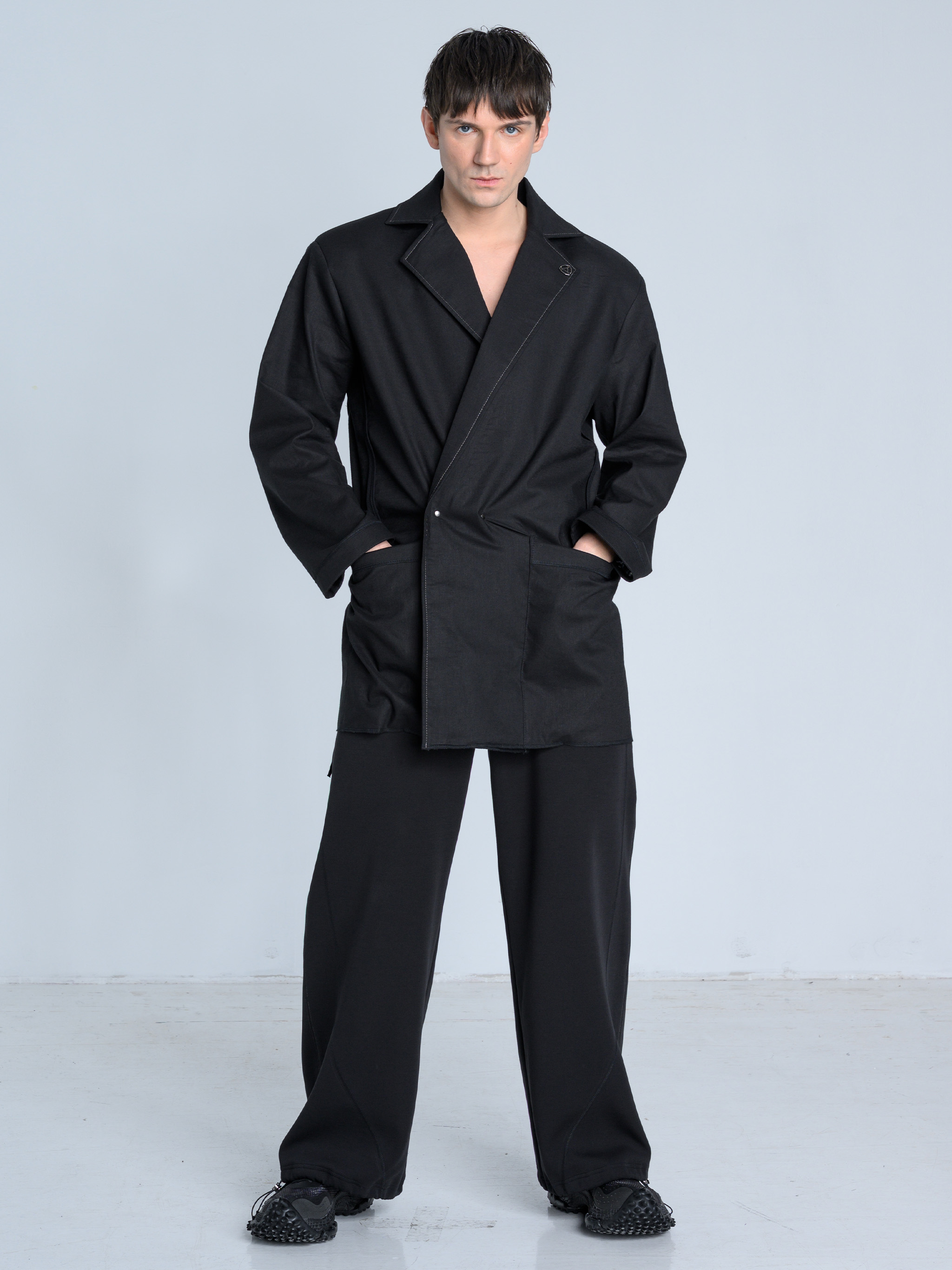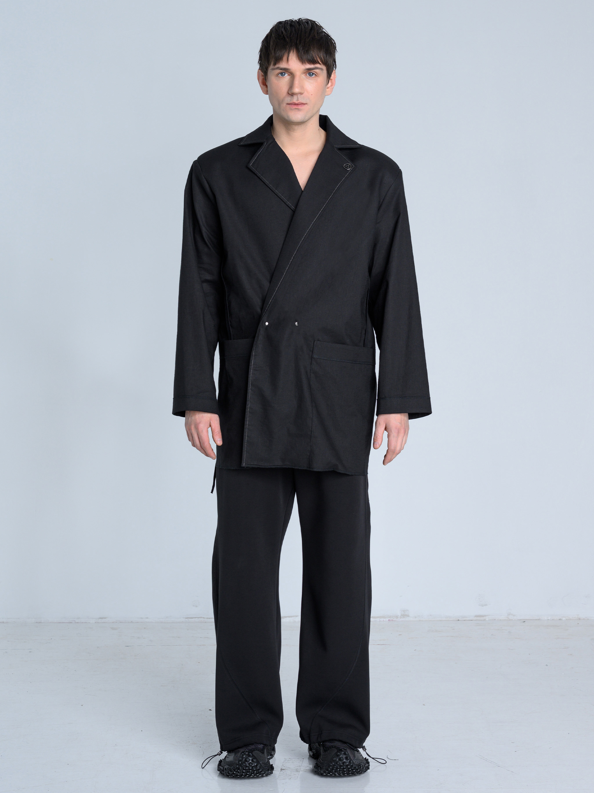 - Dół marynarki zakończony surowym ściegiem