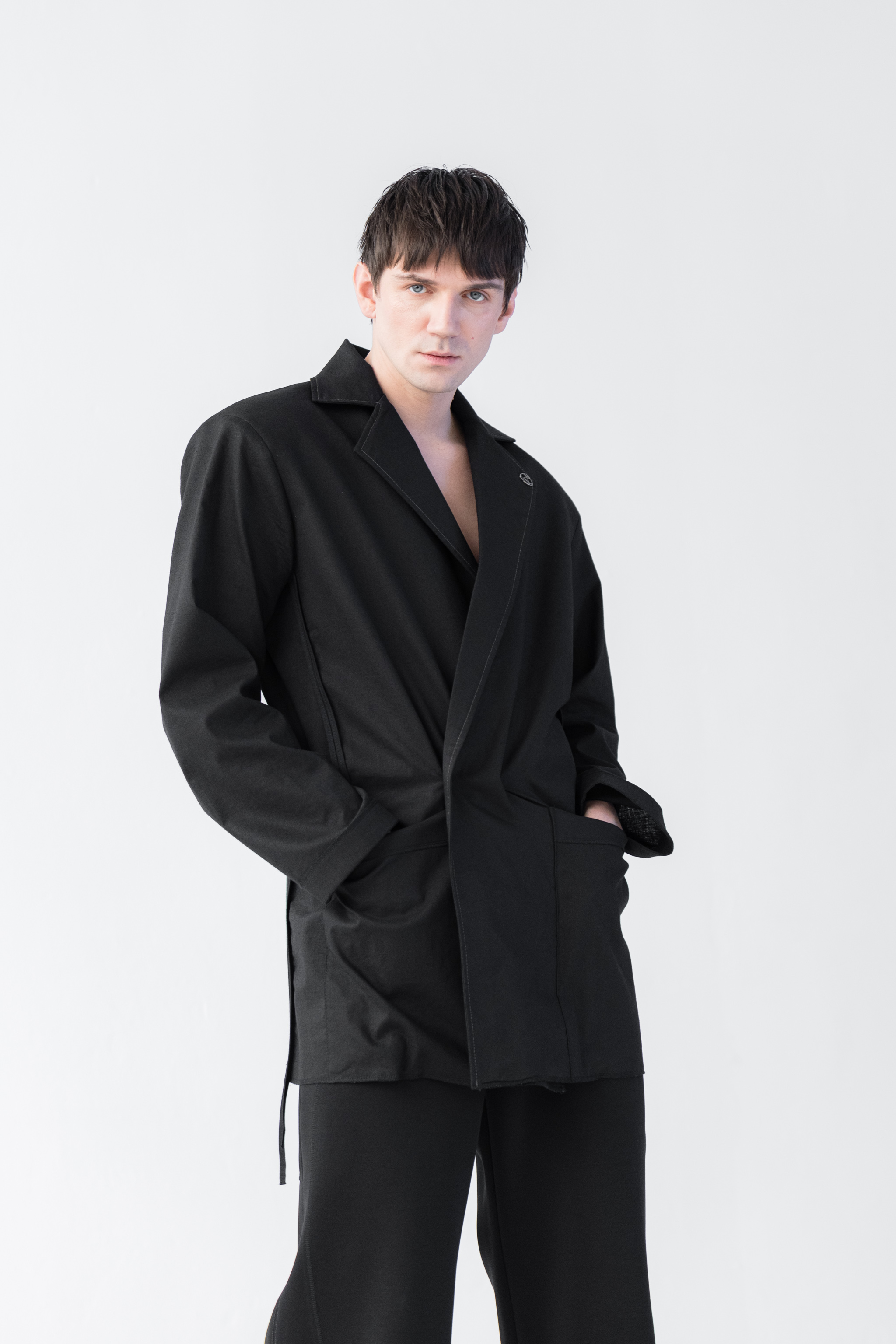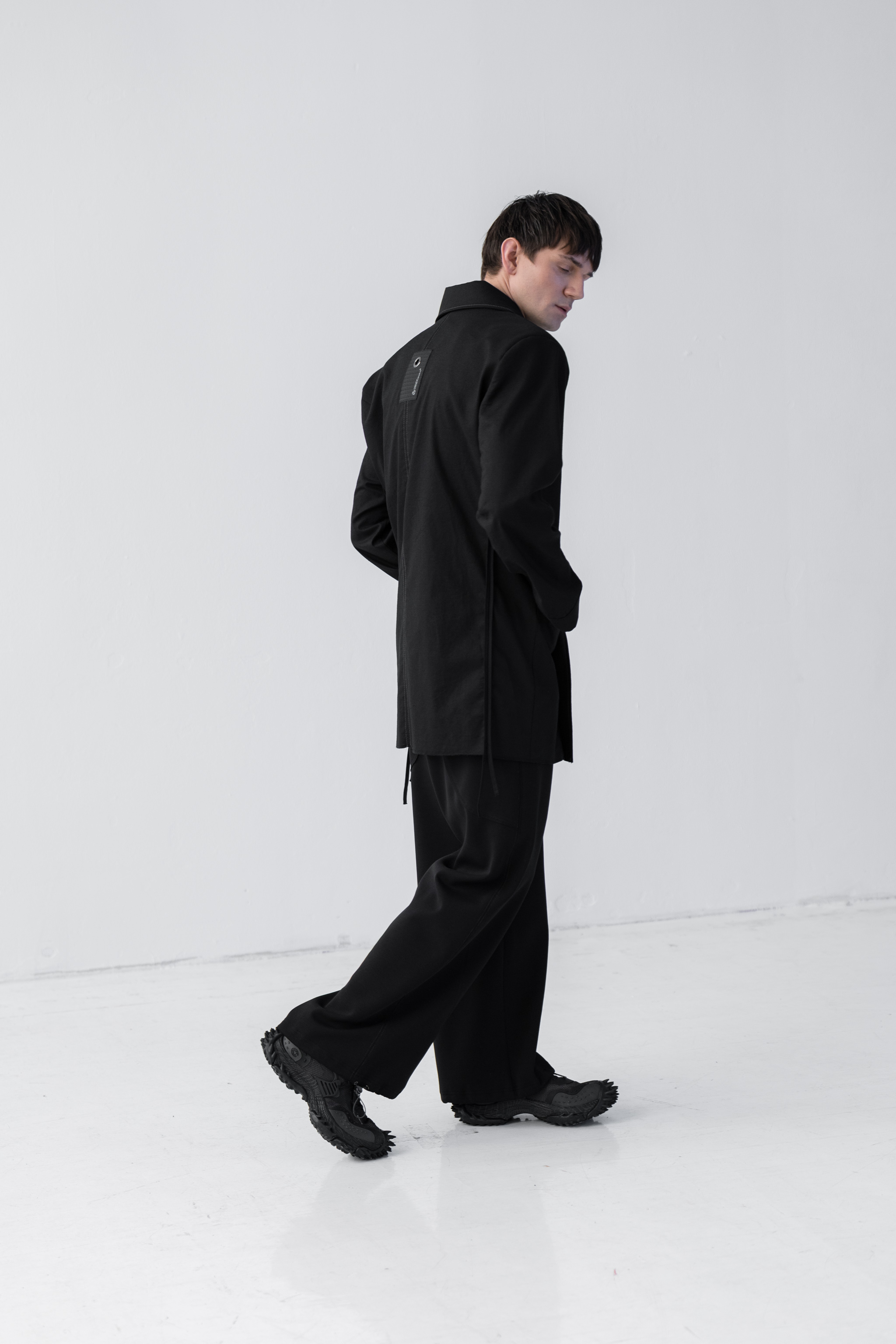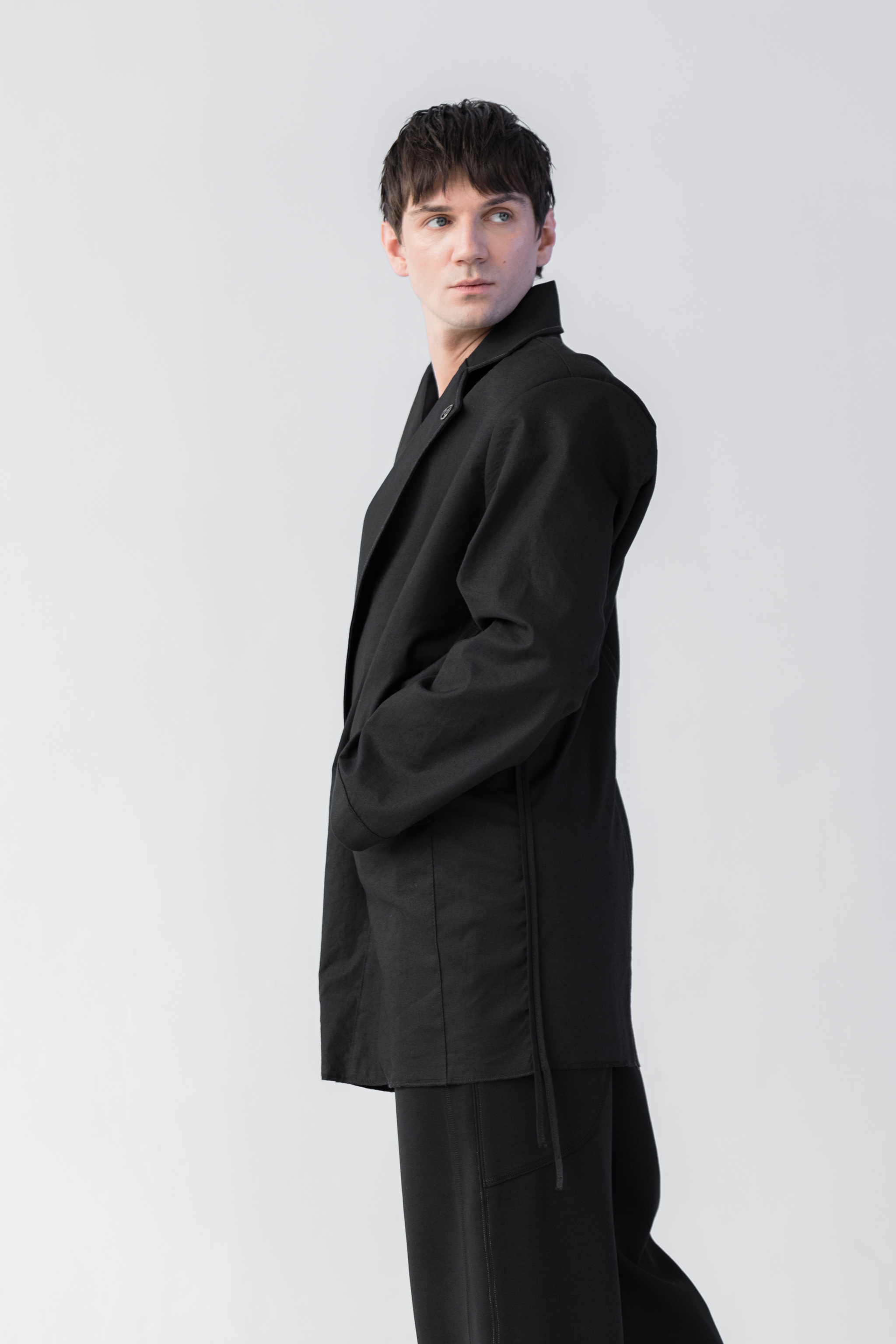 - Połączenie bryły i lekkości - tkanina wzmocniona na linii ramion specjalnym wkładem sprawia, że marynarka zachowuje swój pudełkowy fason, natomiast dół i rękawy marynarki są lejące