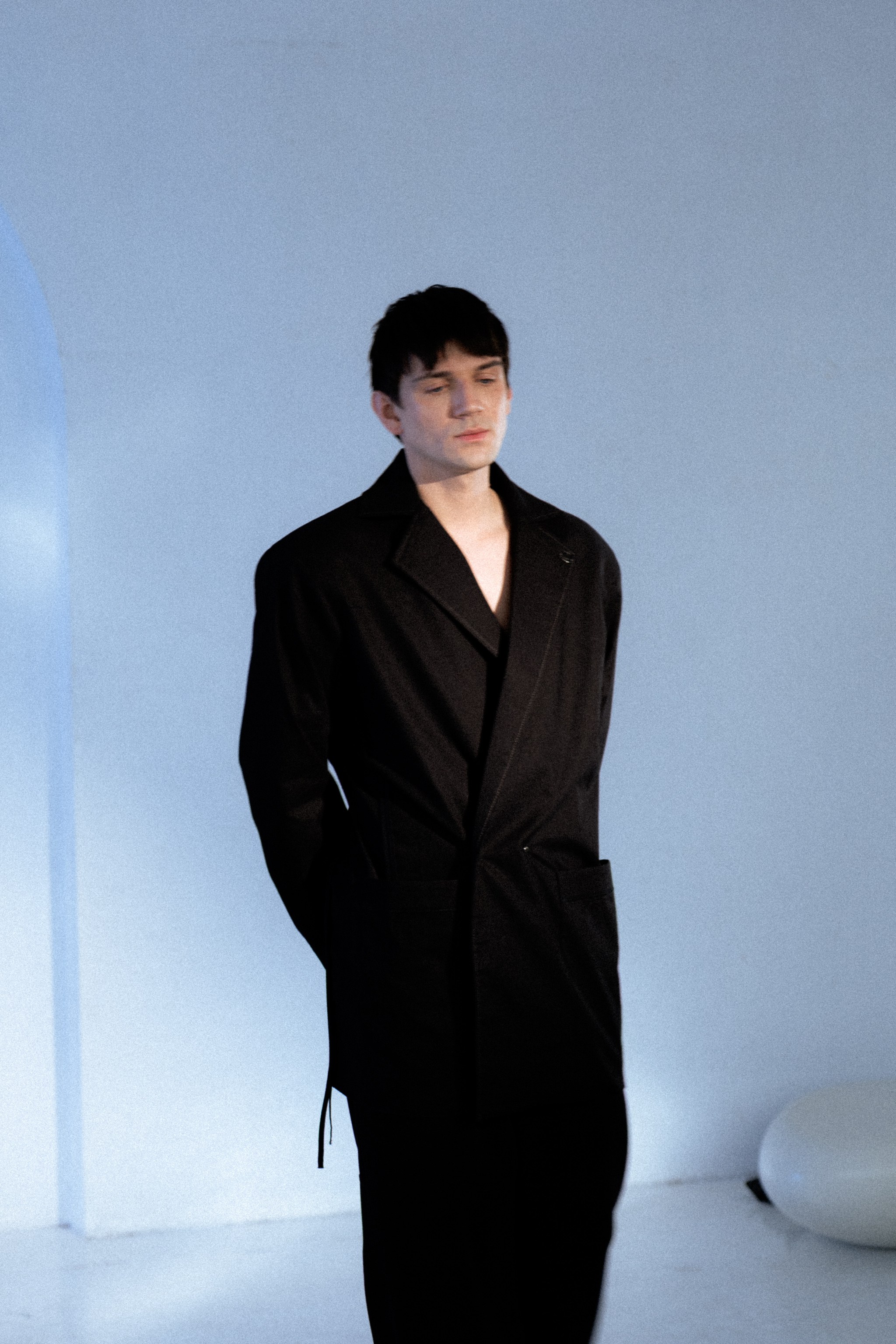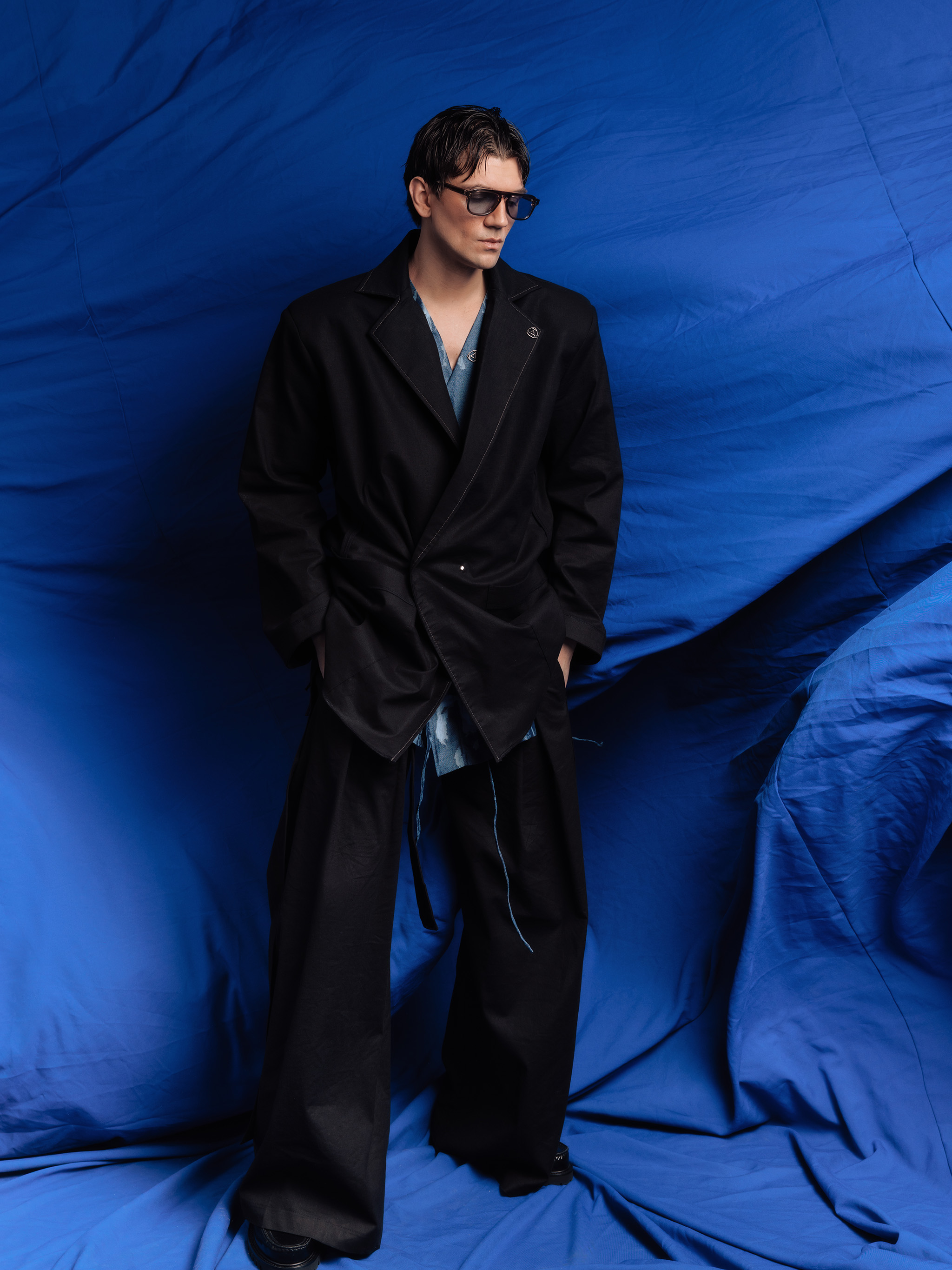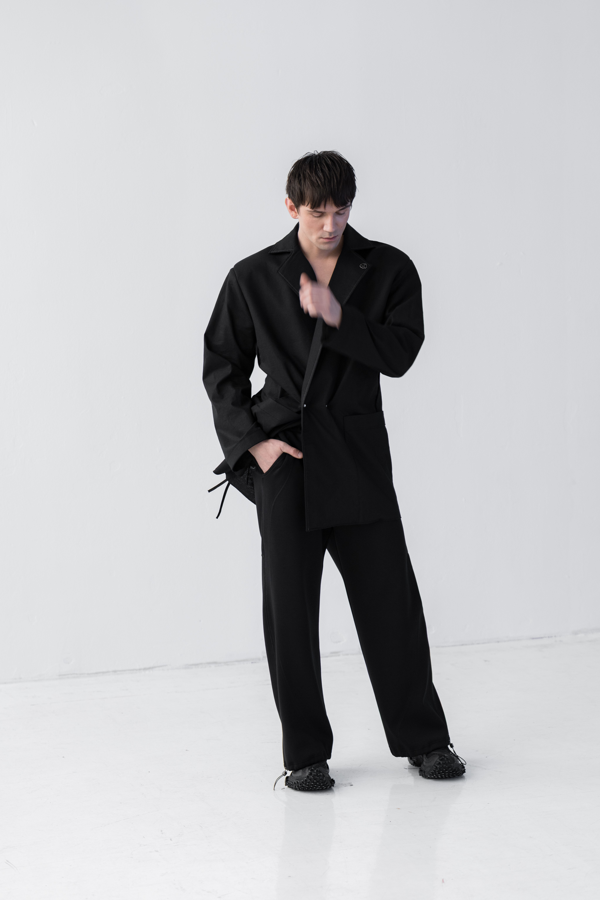 - Połączenie bryły i lekkości - tkanina wzmocniona na linii ramion specjalnym wkładem sprawia, że marynarka zachowuje swój pudełkowy fason, natomiast dół i rękawy marynarki są lejące