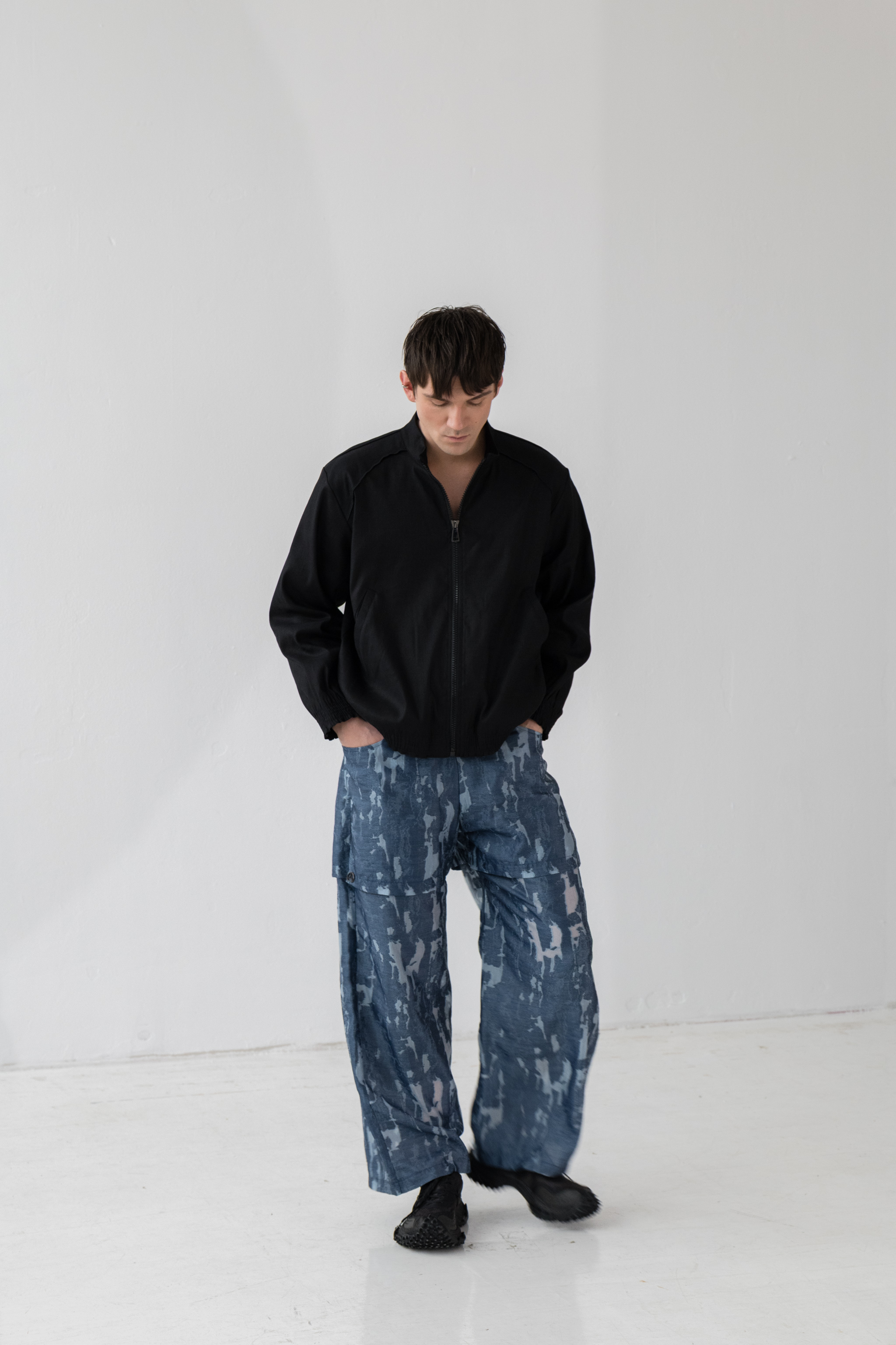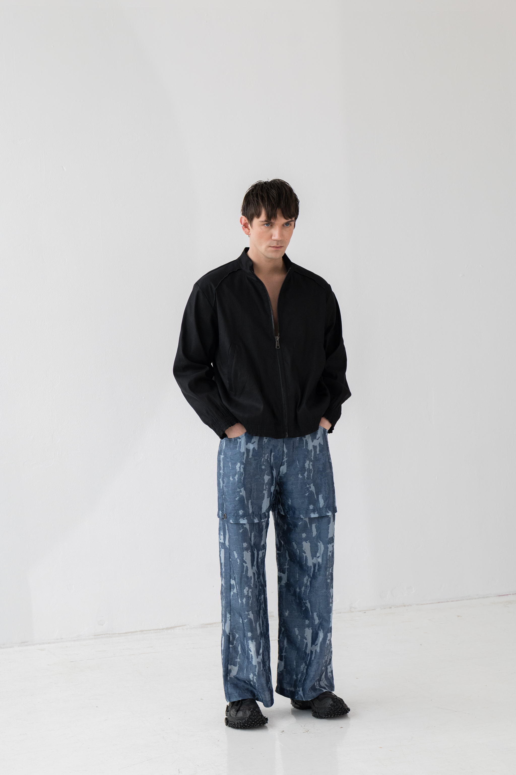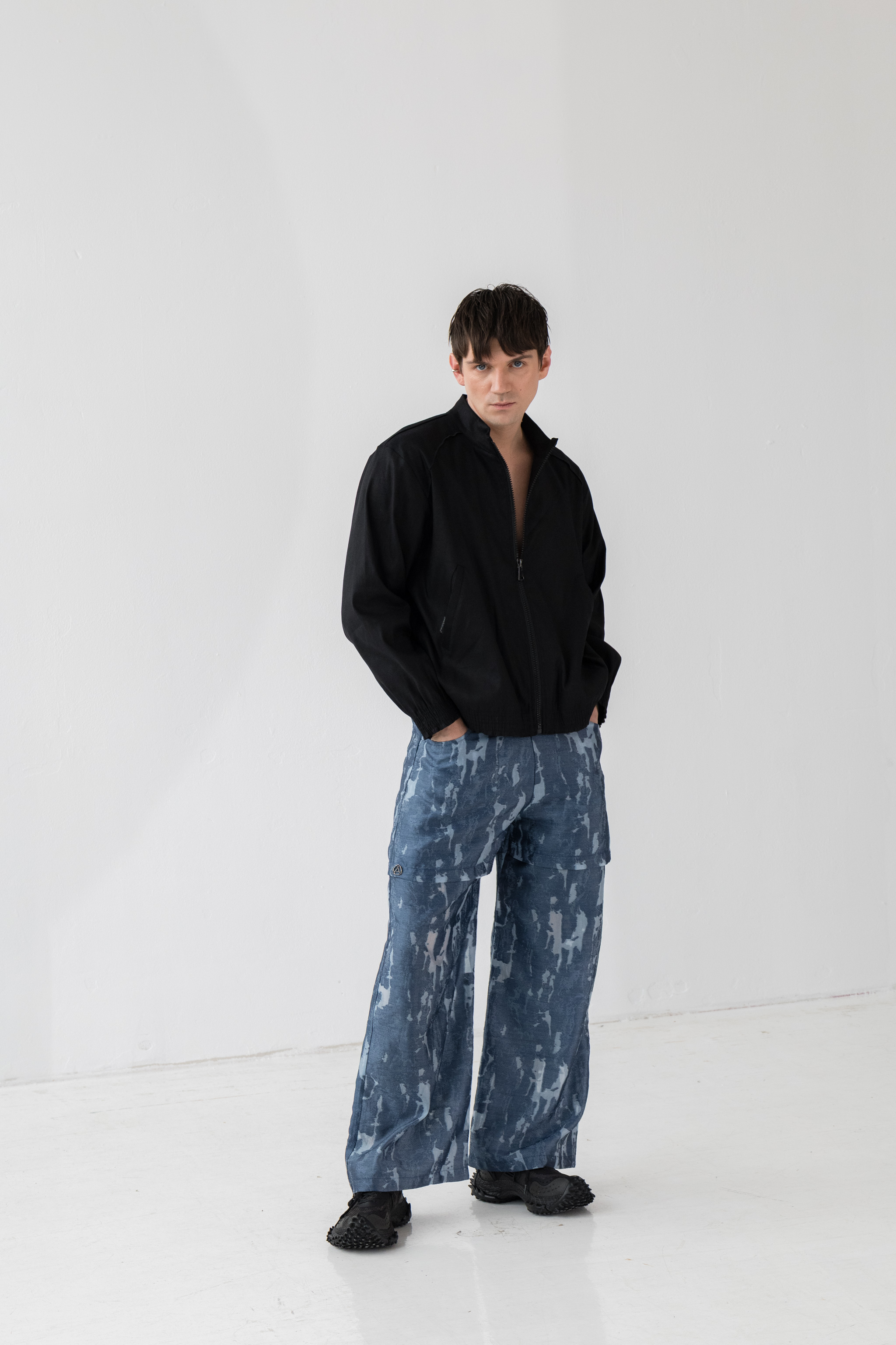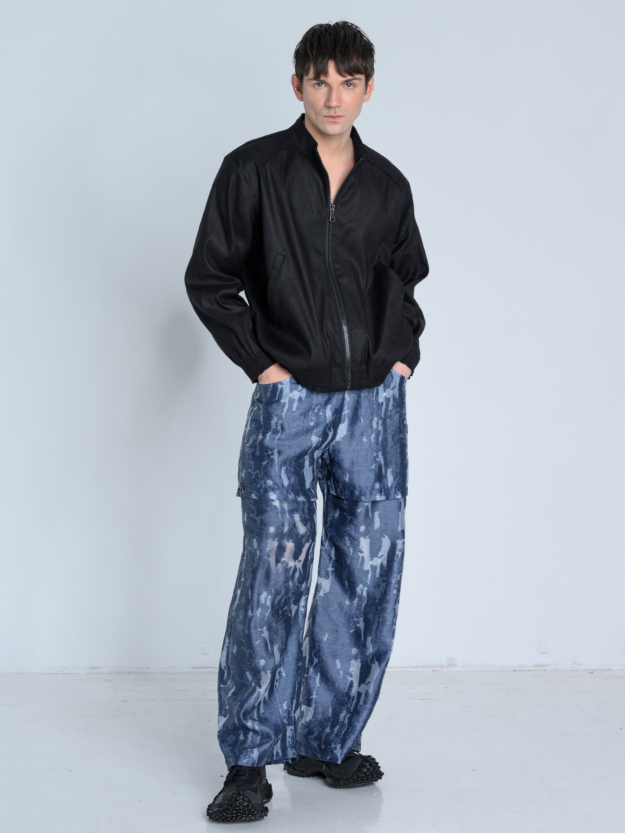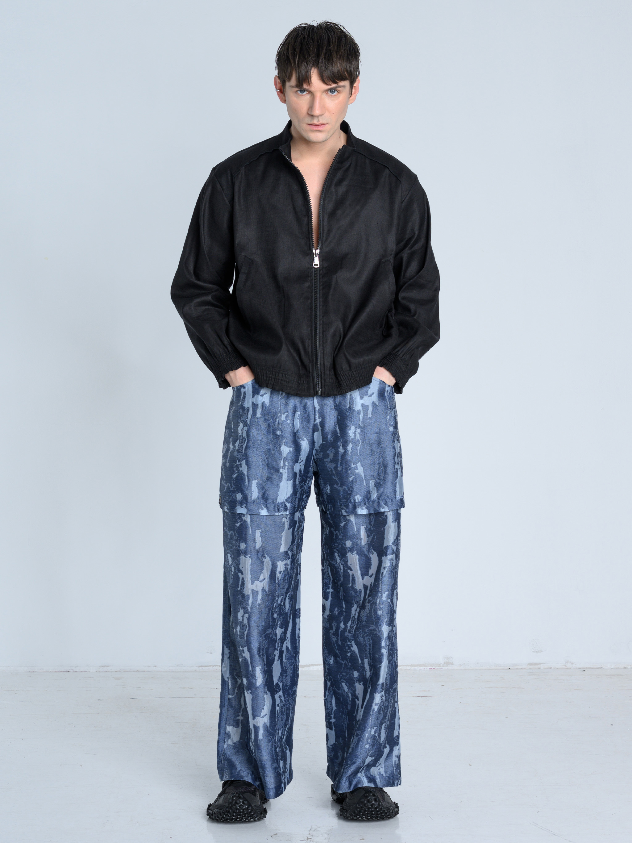 - Luźny fason z prostą nogawką