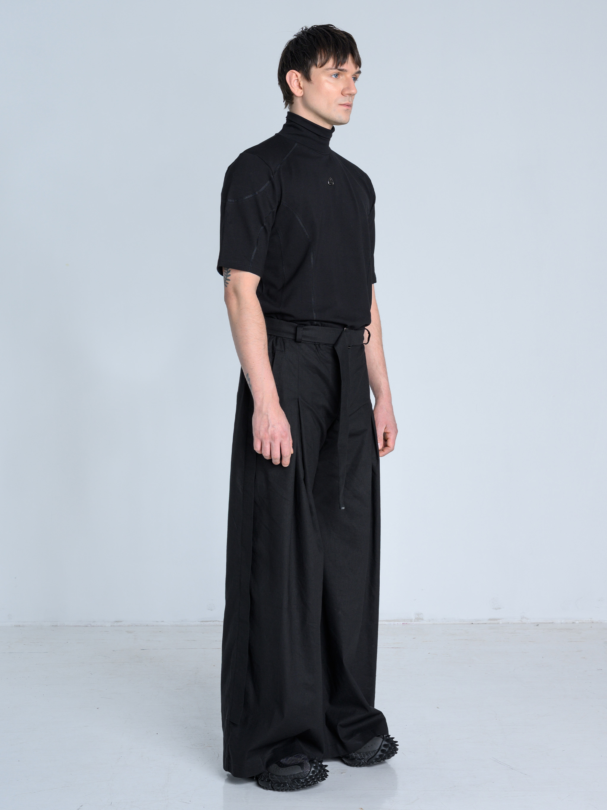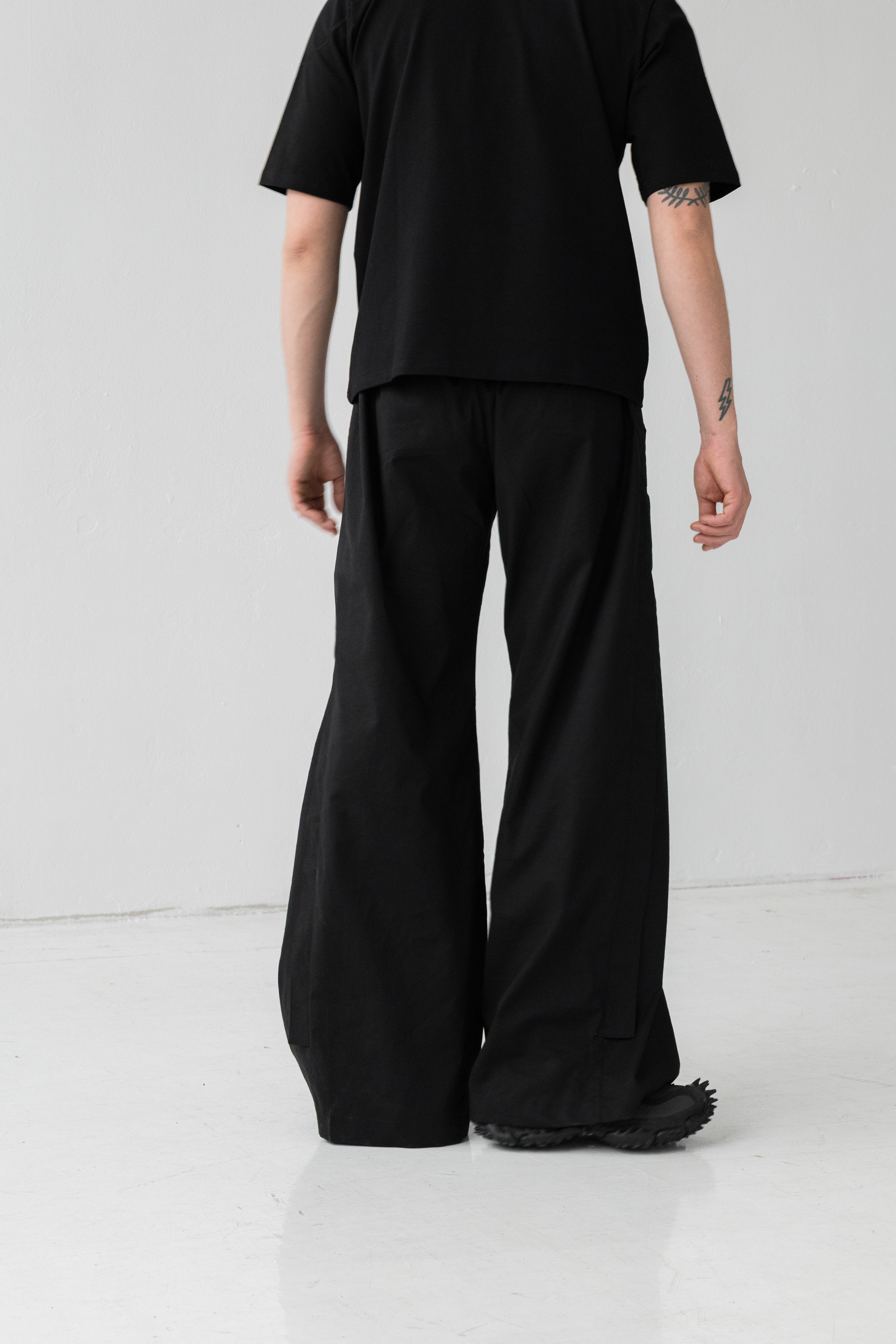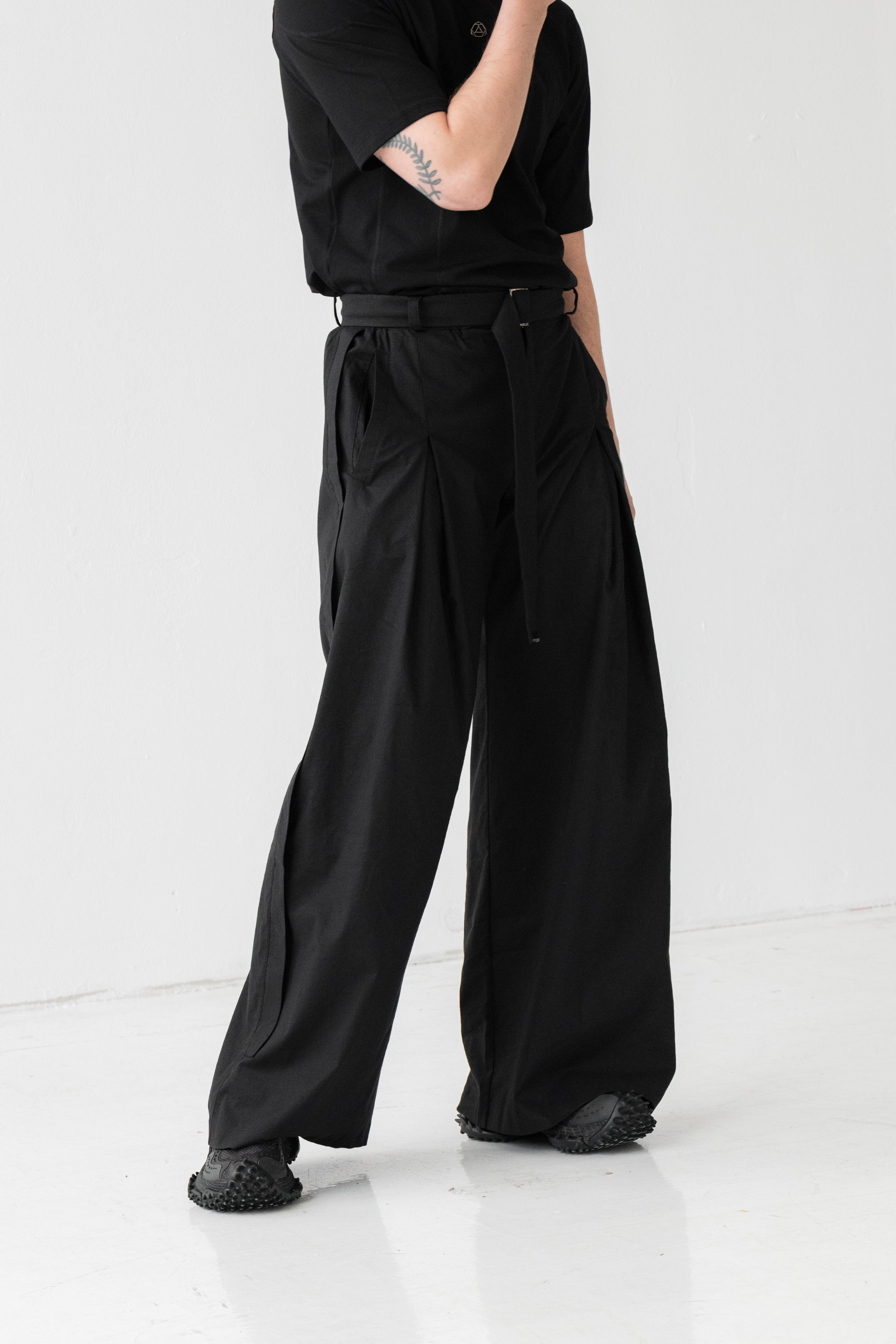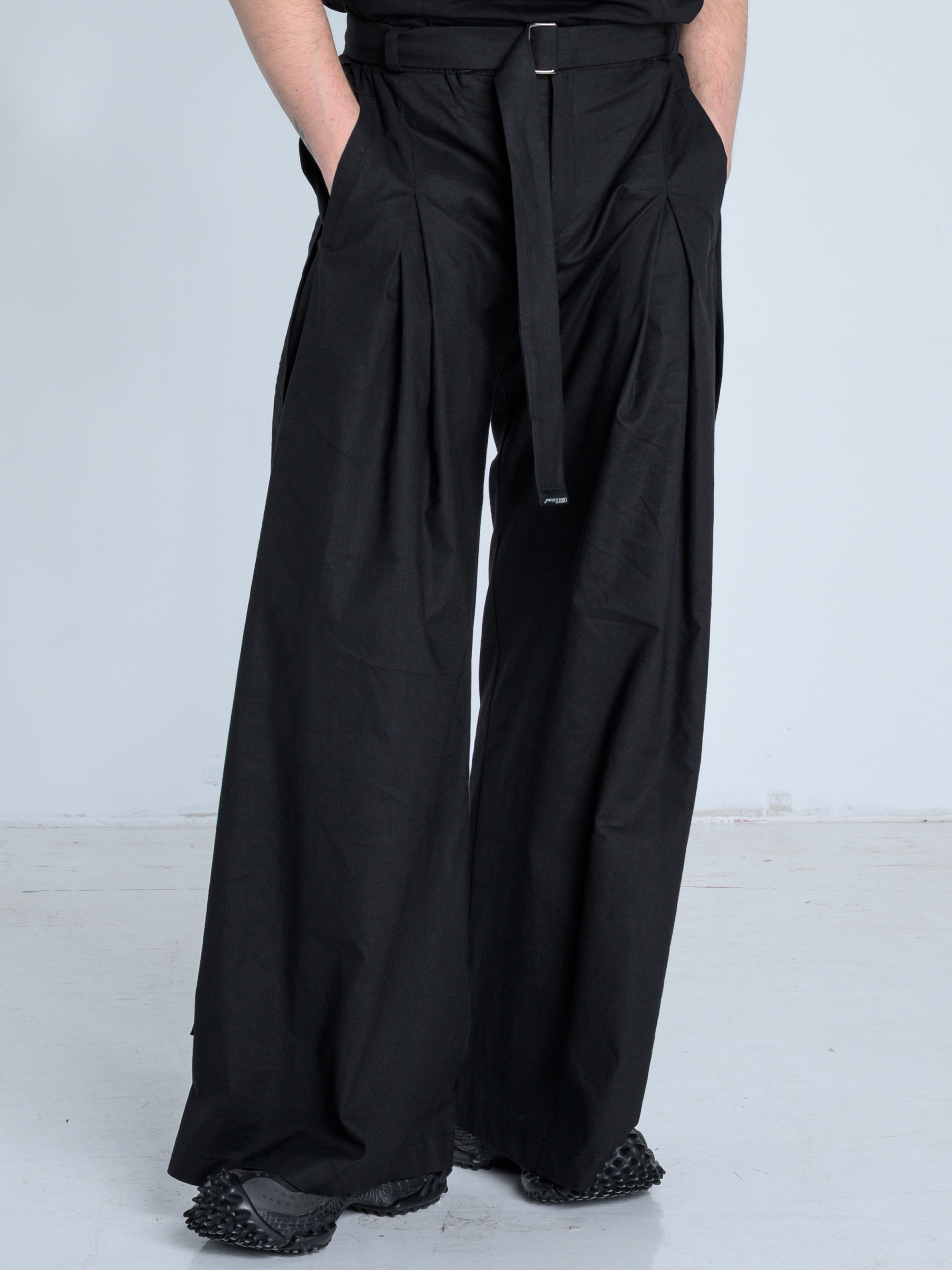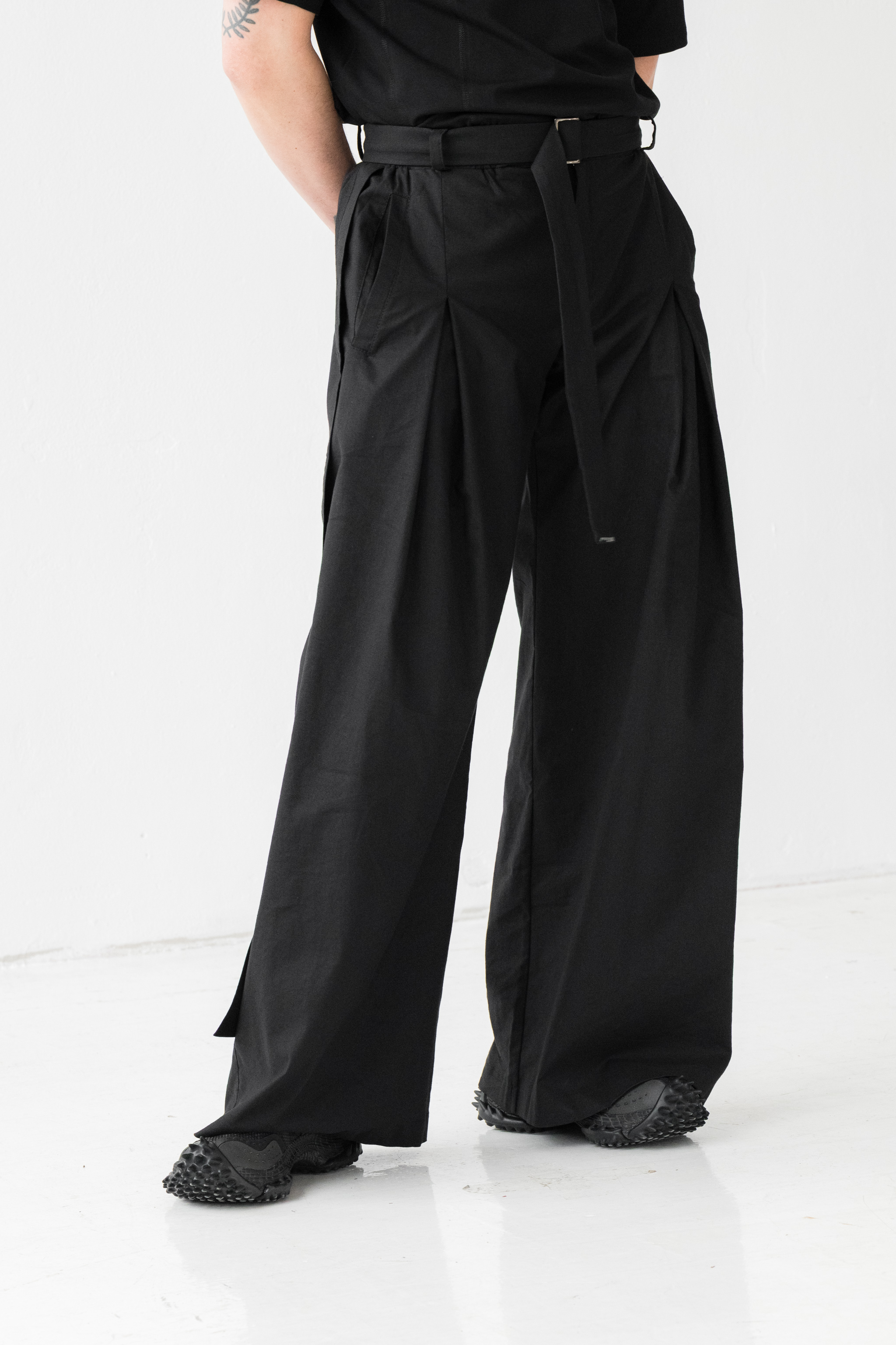 - Szerokie spodnie o wyjątkowej formie z kontrafałdą