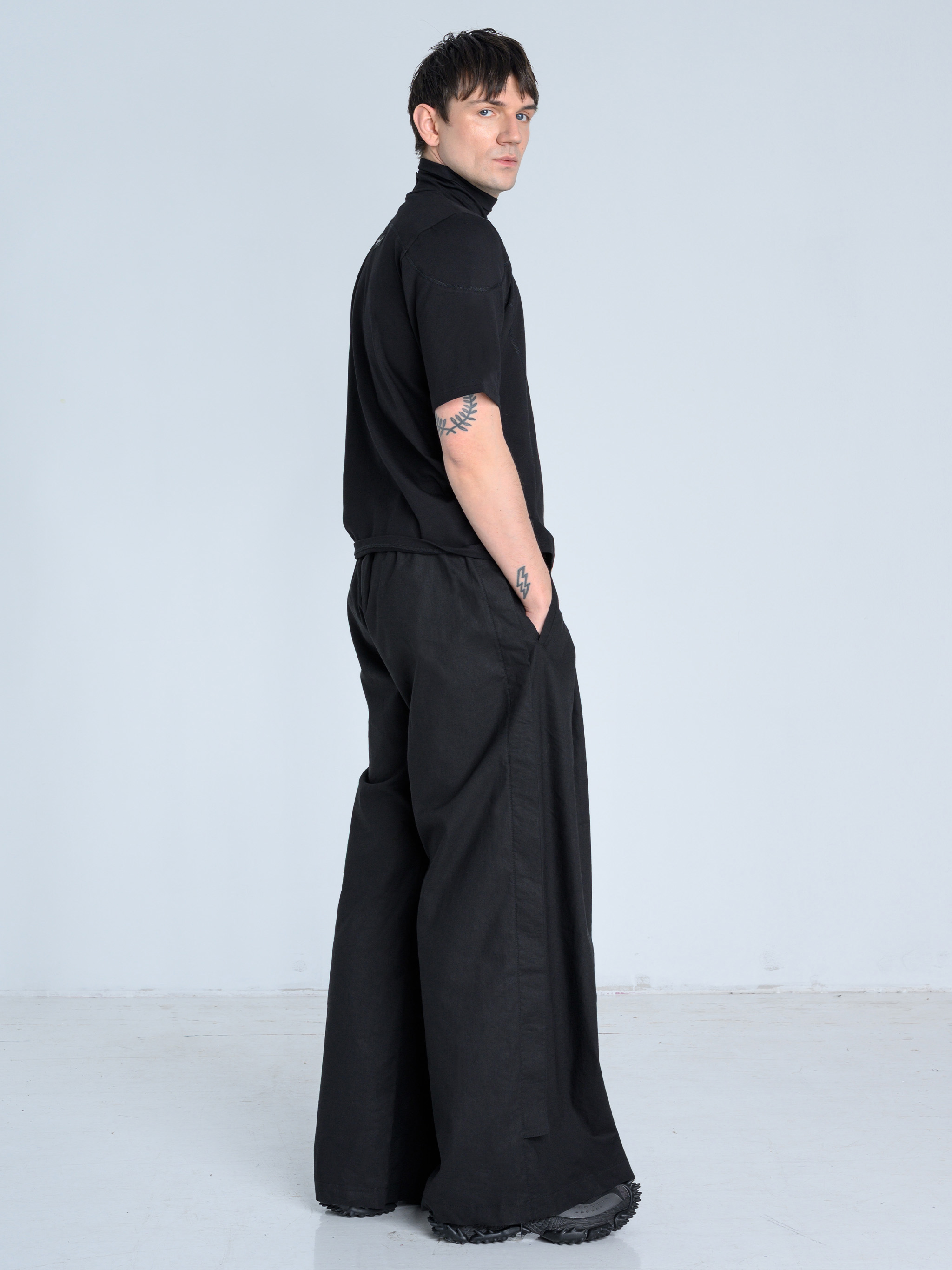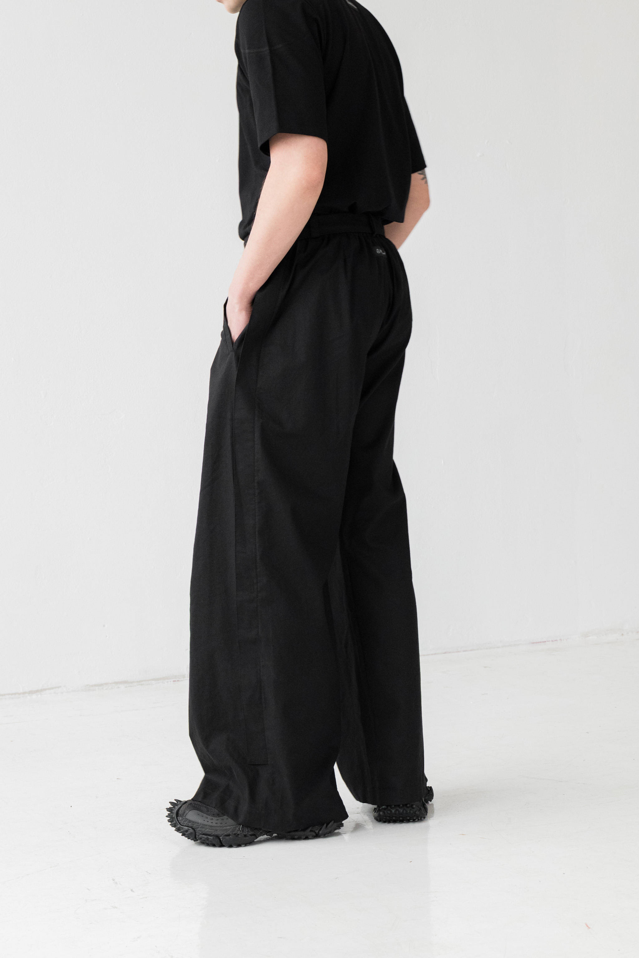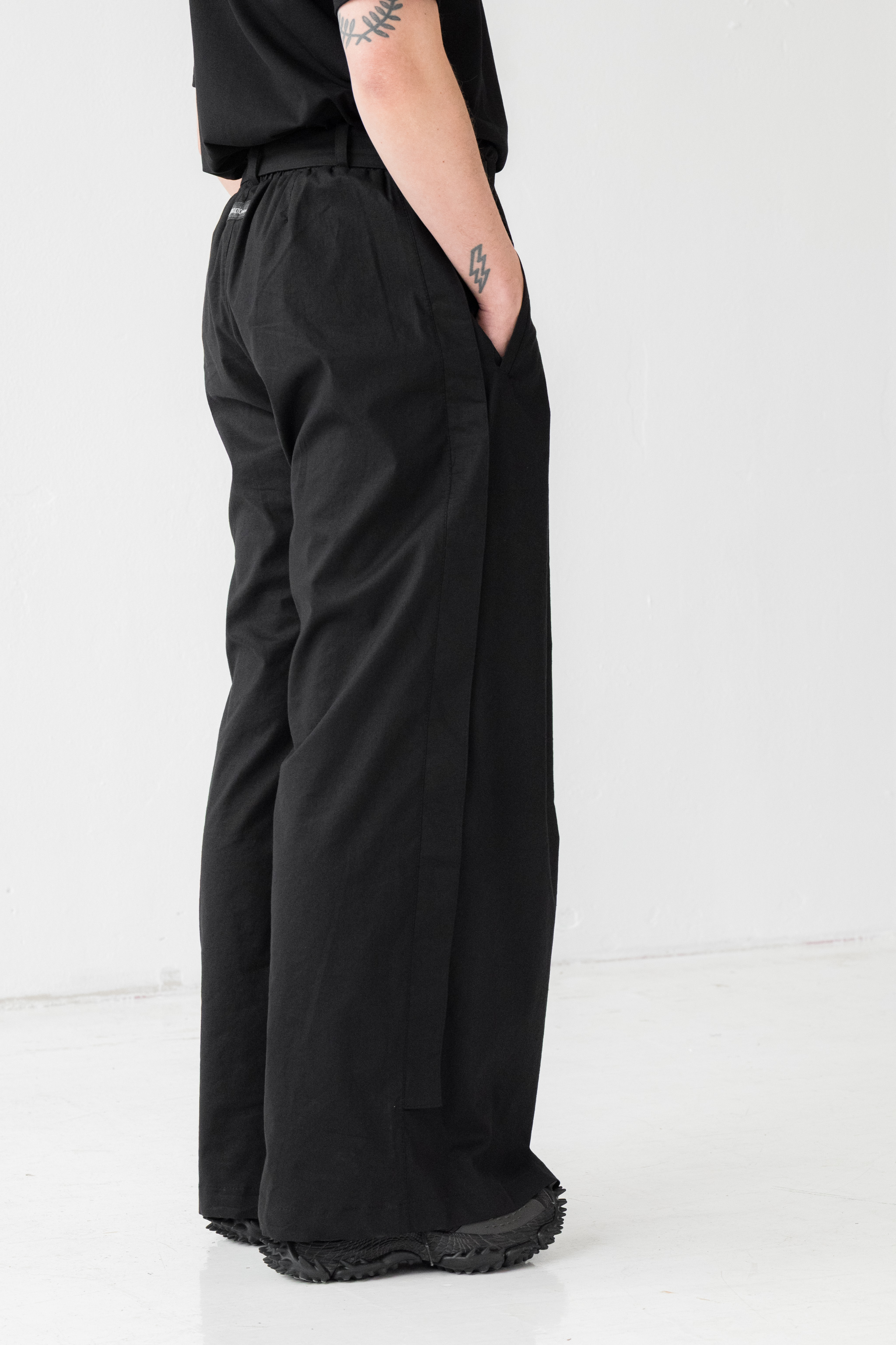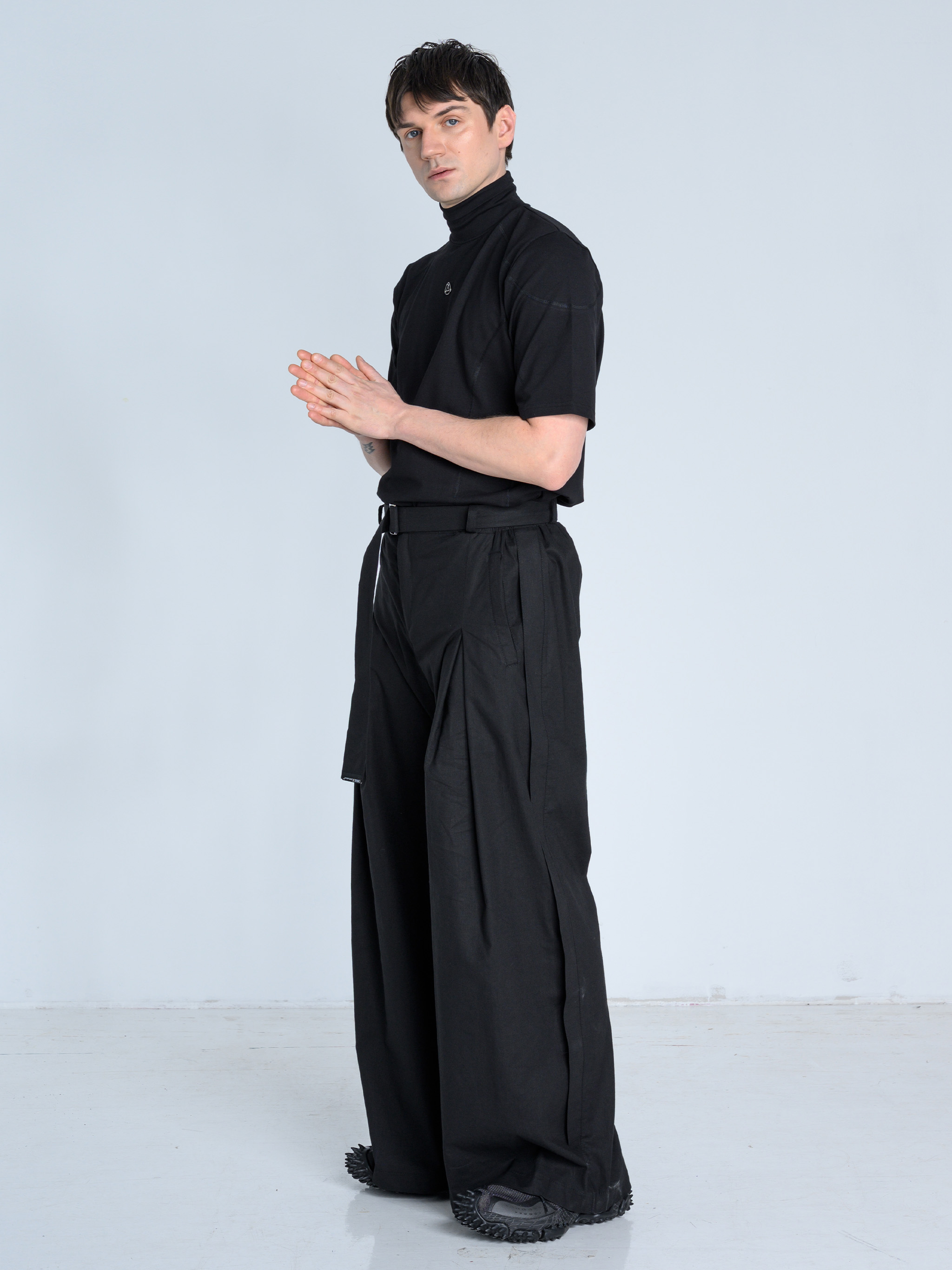 - Szerokie spodnie o wyjątkowej formie z kontrafałdą
