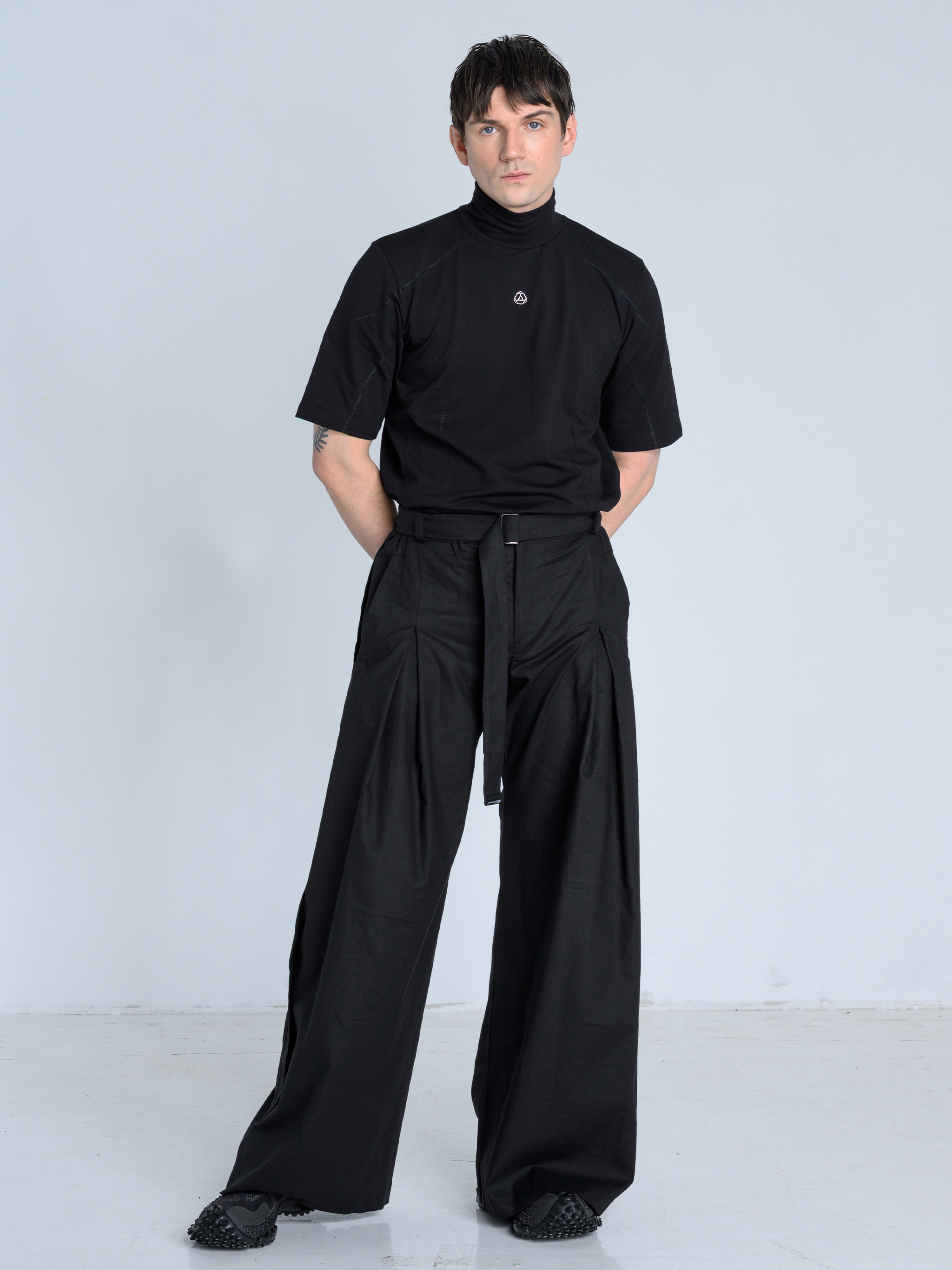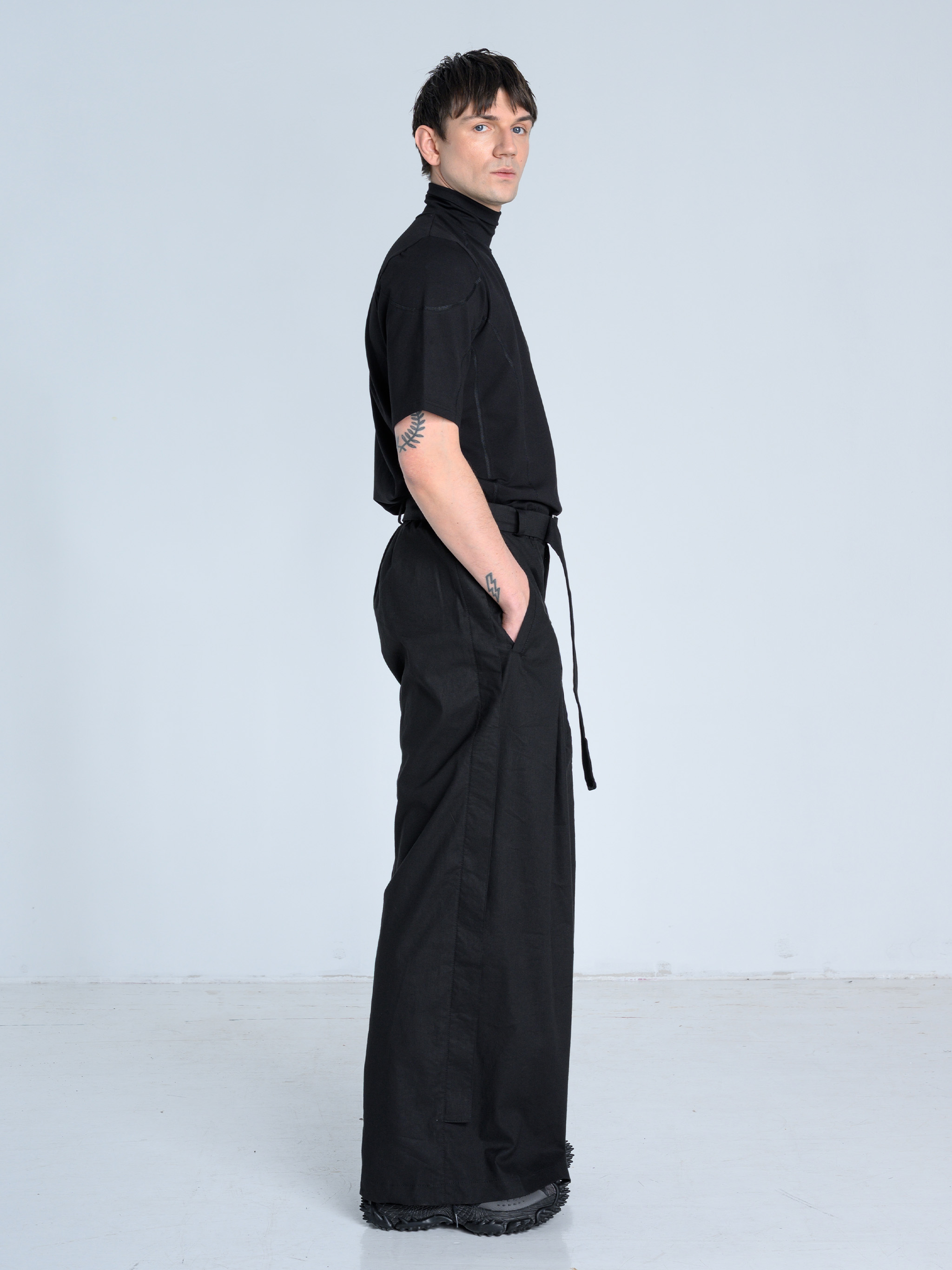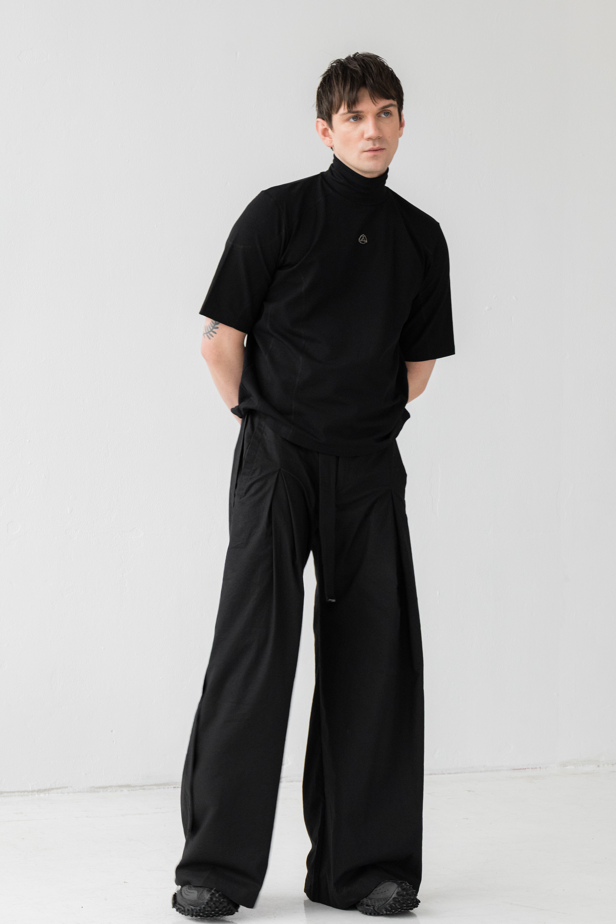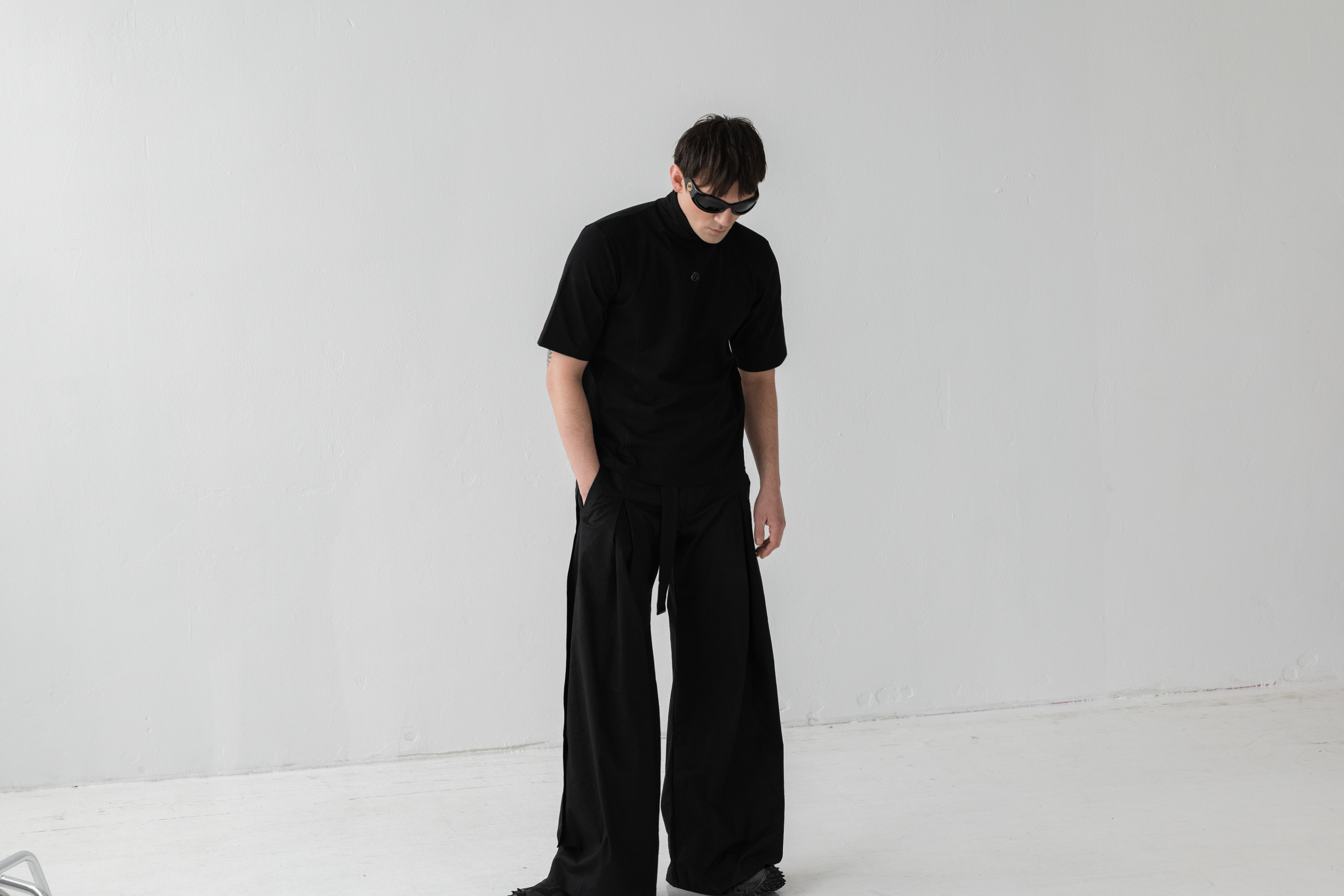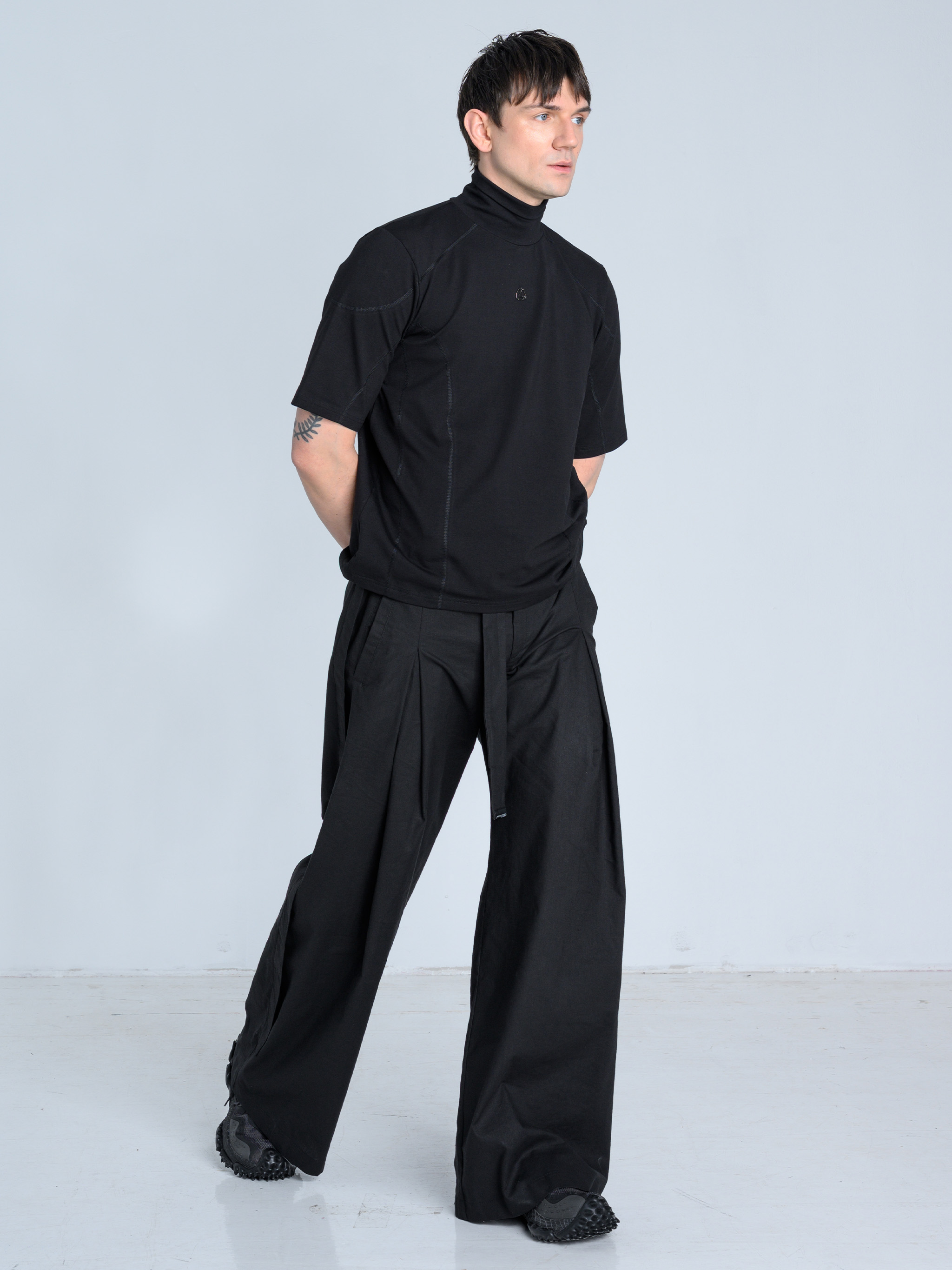 - Szerokie spodnie o wyjątkowej formie z kontrafałdą