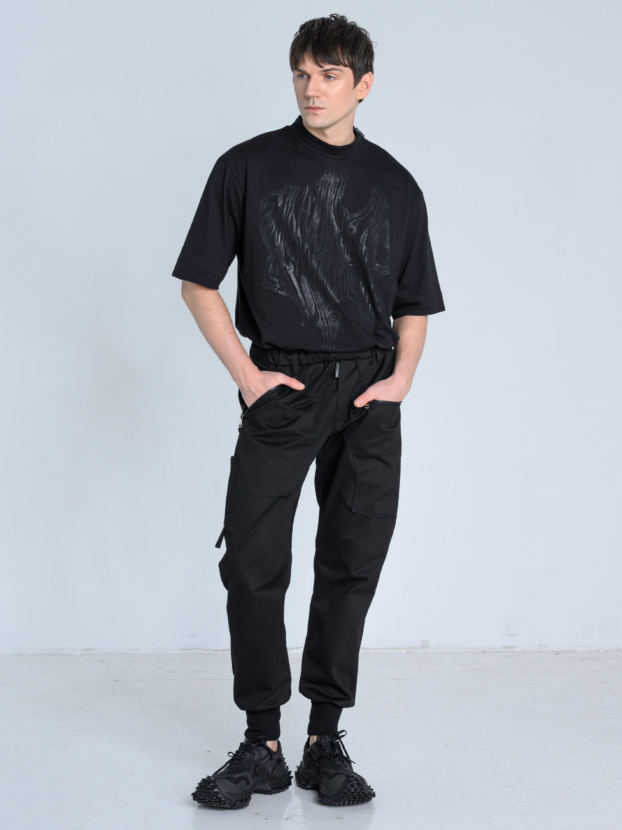 - Luźny fason z nogawką zwężającą się ku dołowi