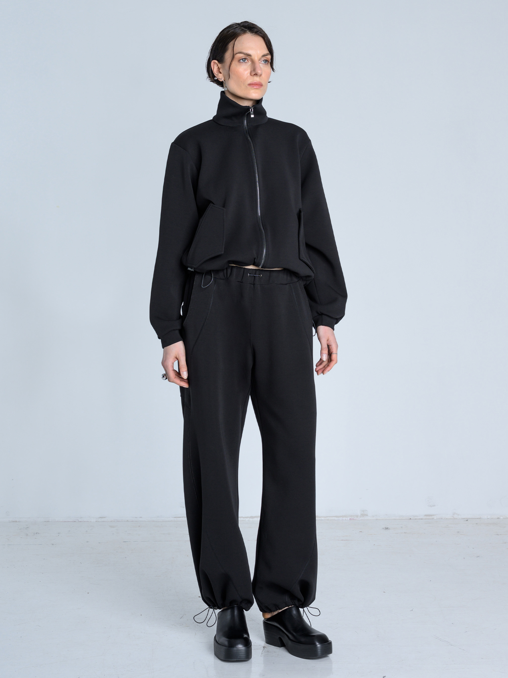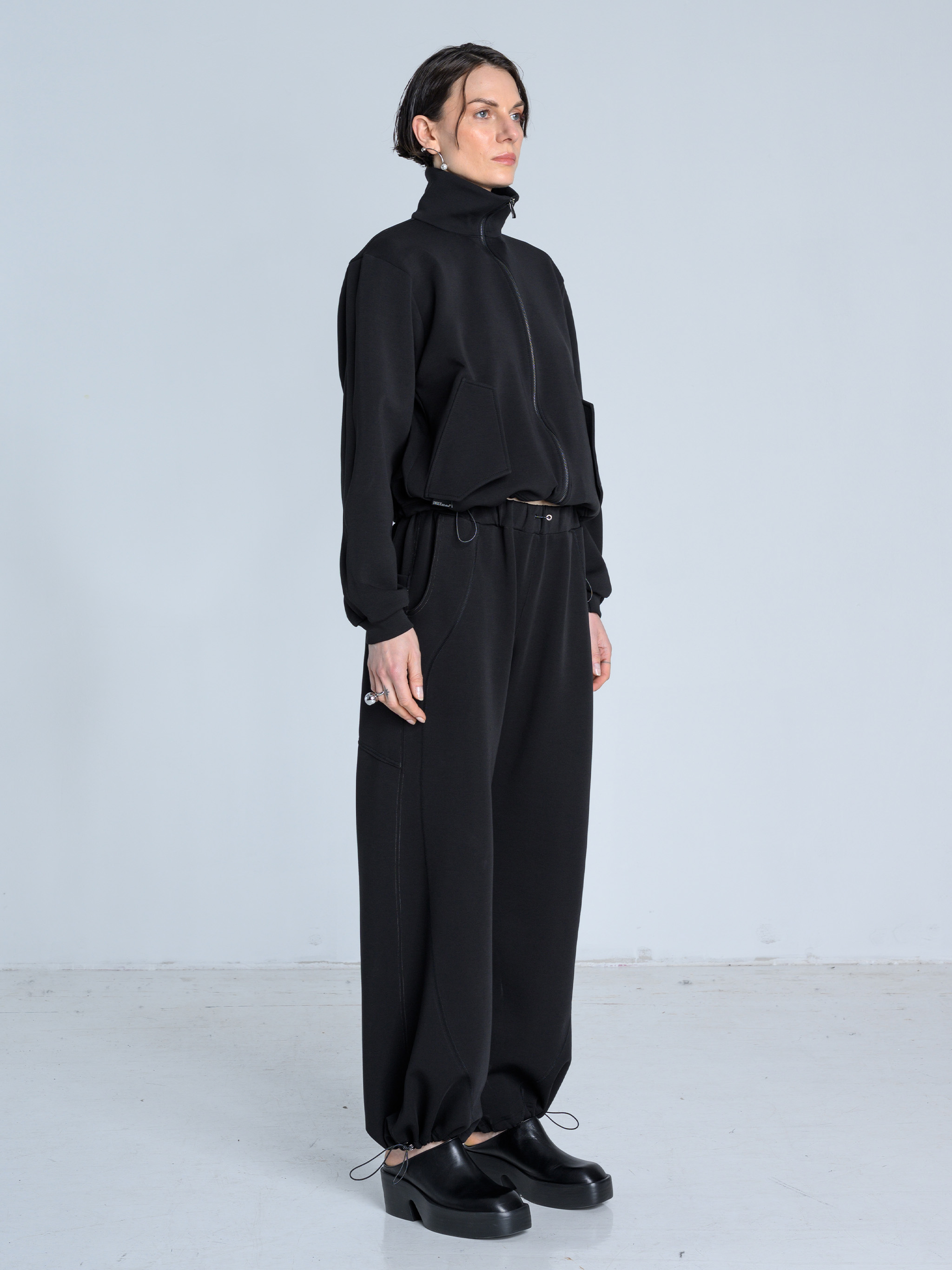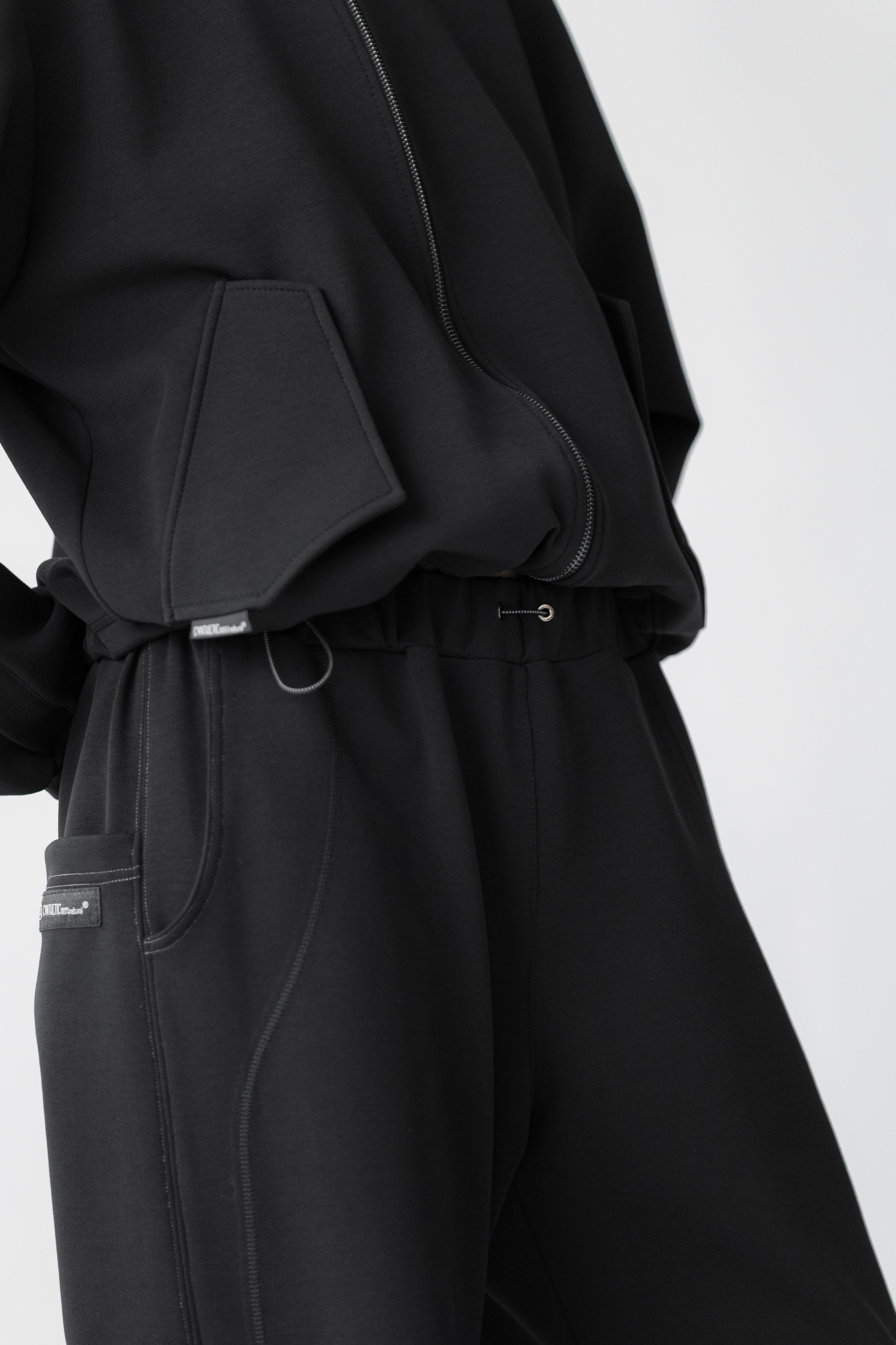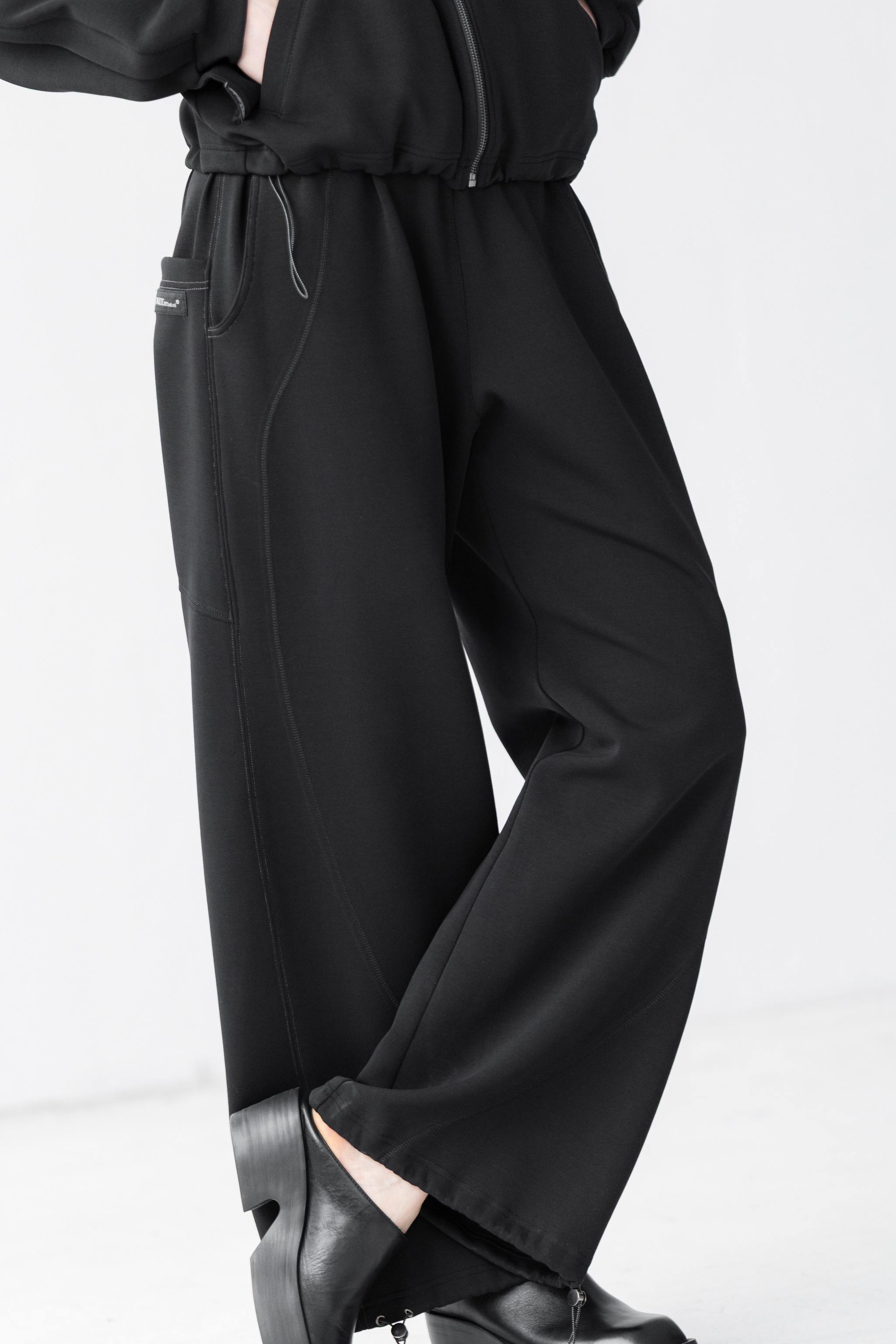 - Dół nogawek można modyfikować za pomocą elastycznych troków i metalowych stoperów