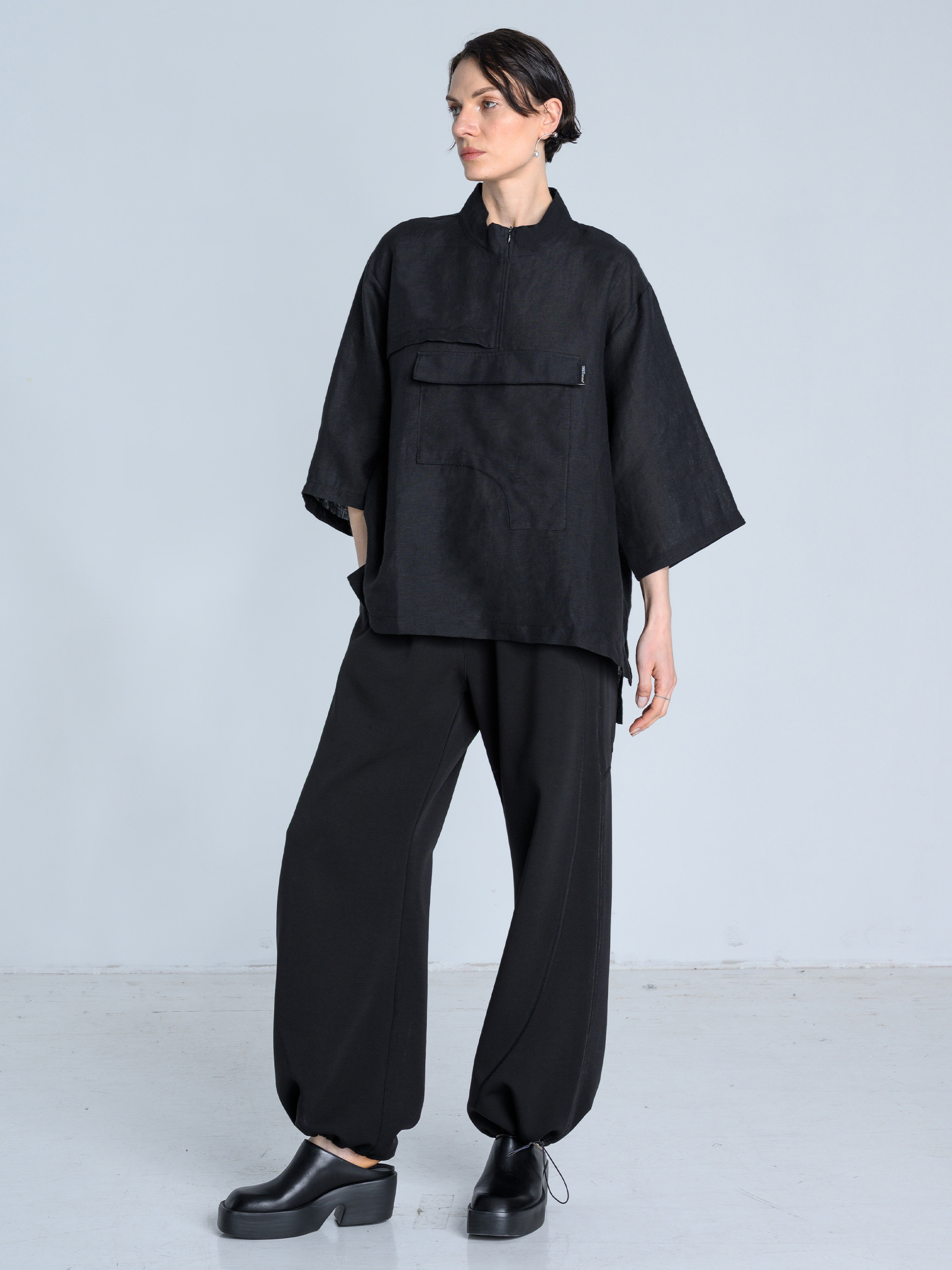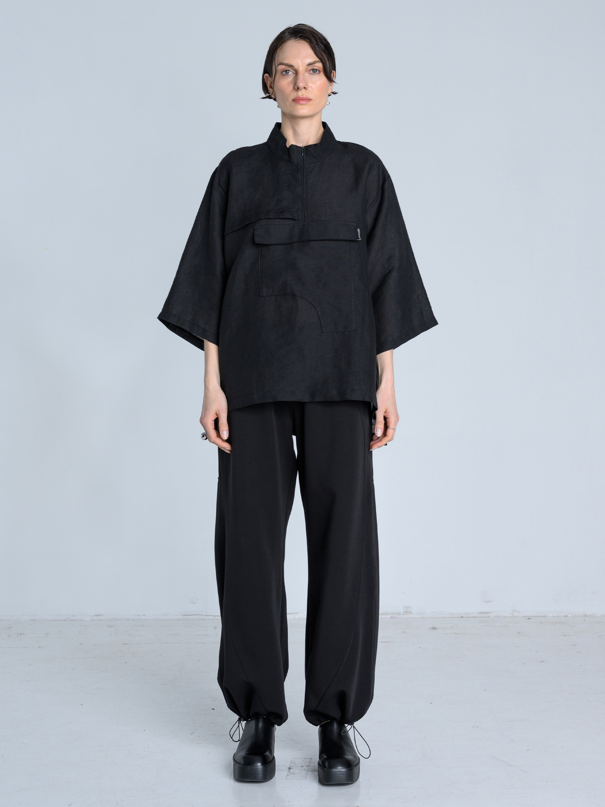 - Luźny fason z prostą nogawką