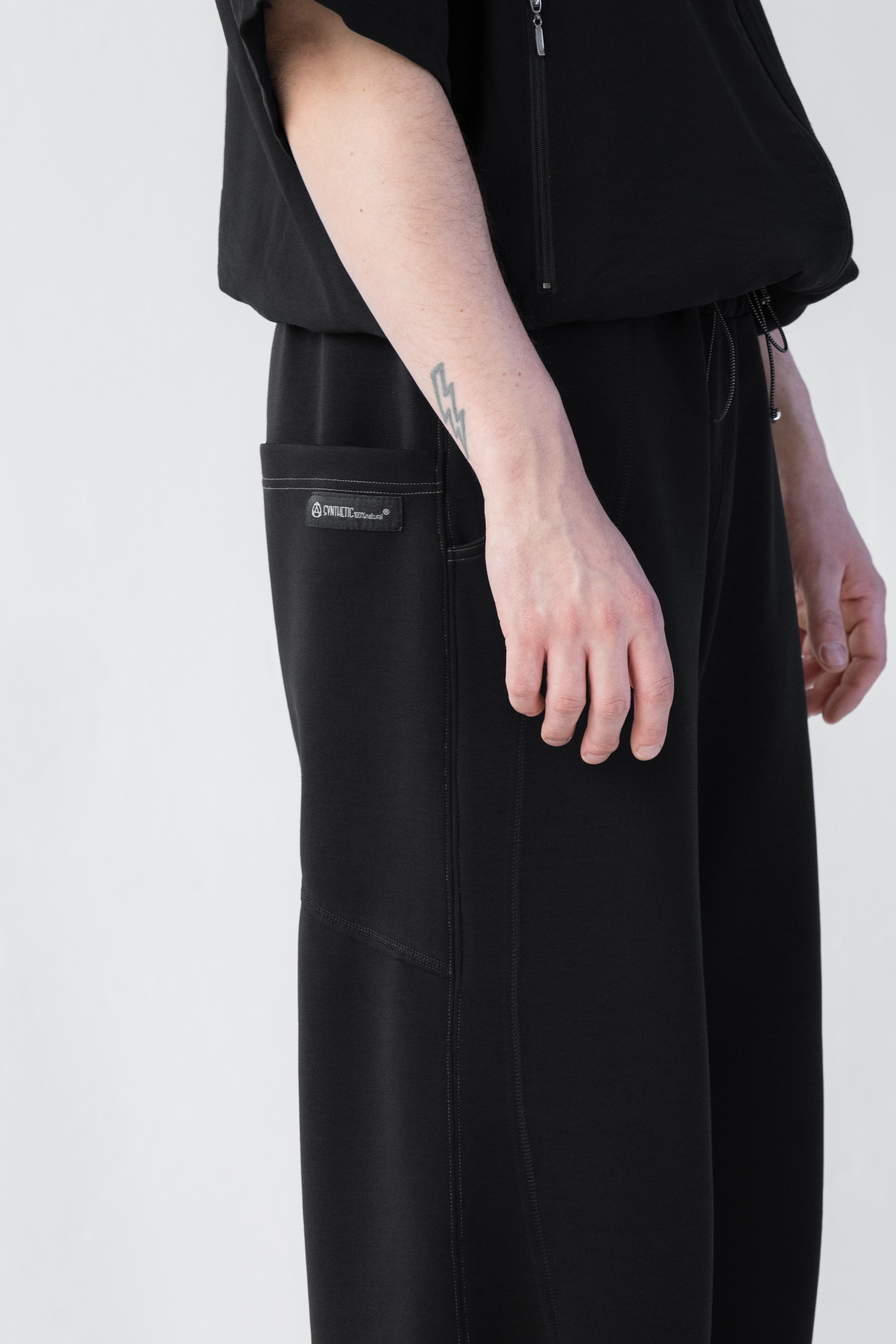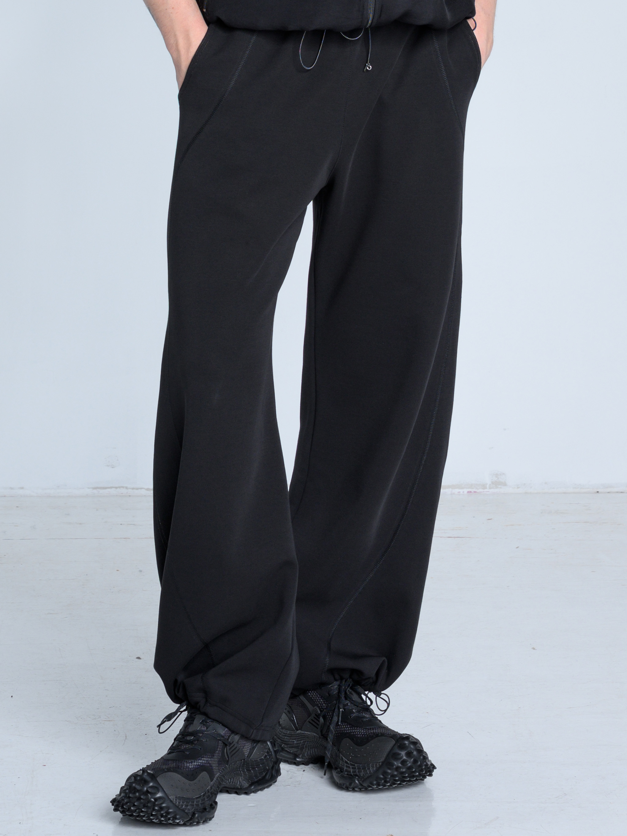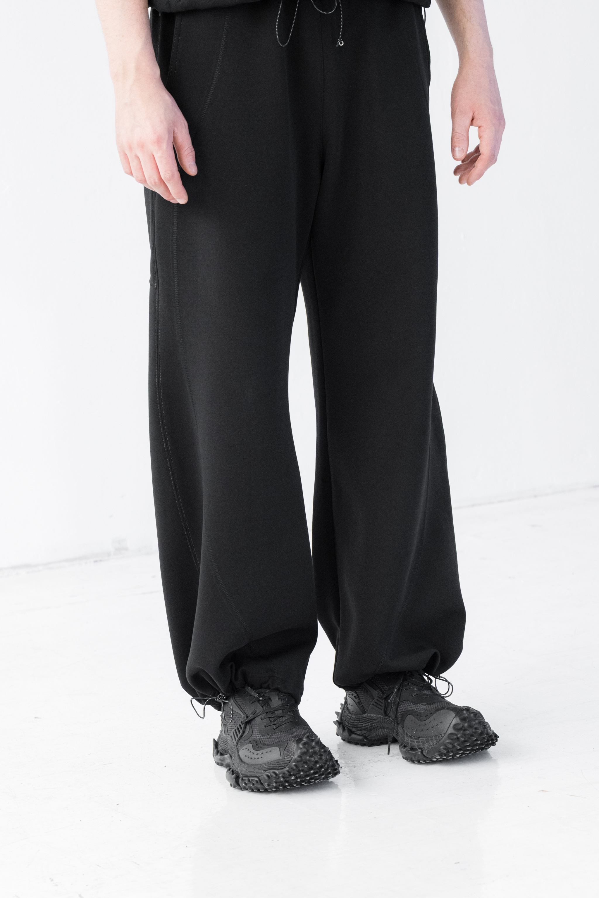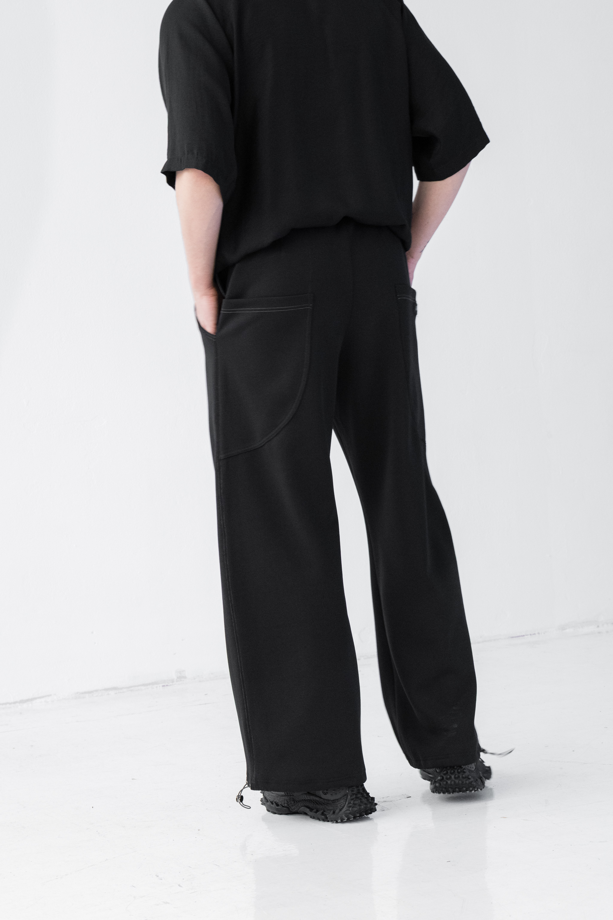 - Dół nogawek można modyfikować za pomocą elastycznych troków i metalowych stoperów