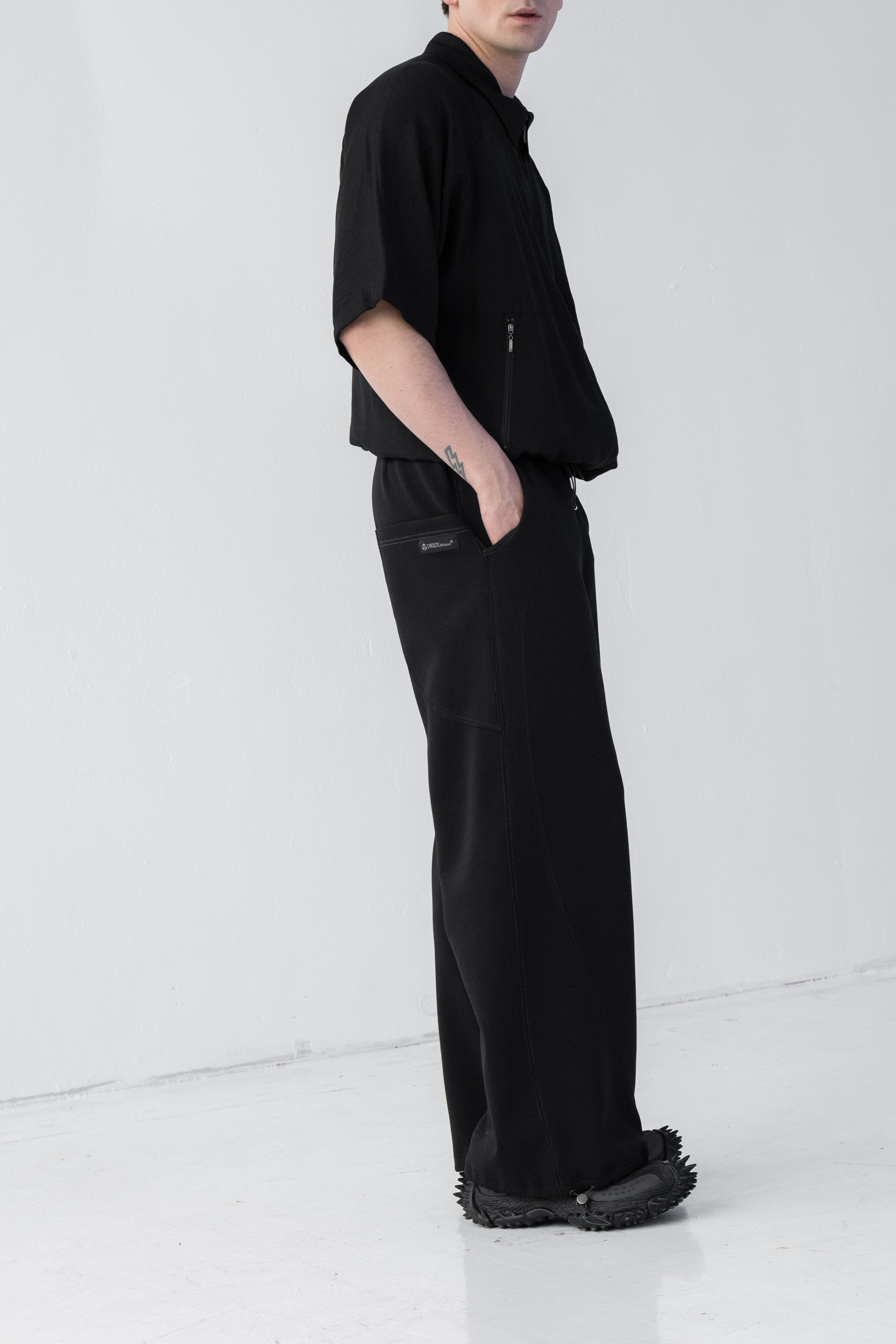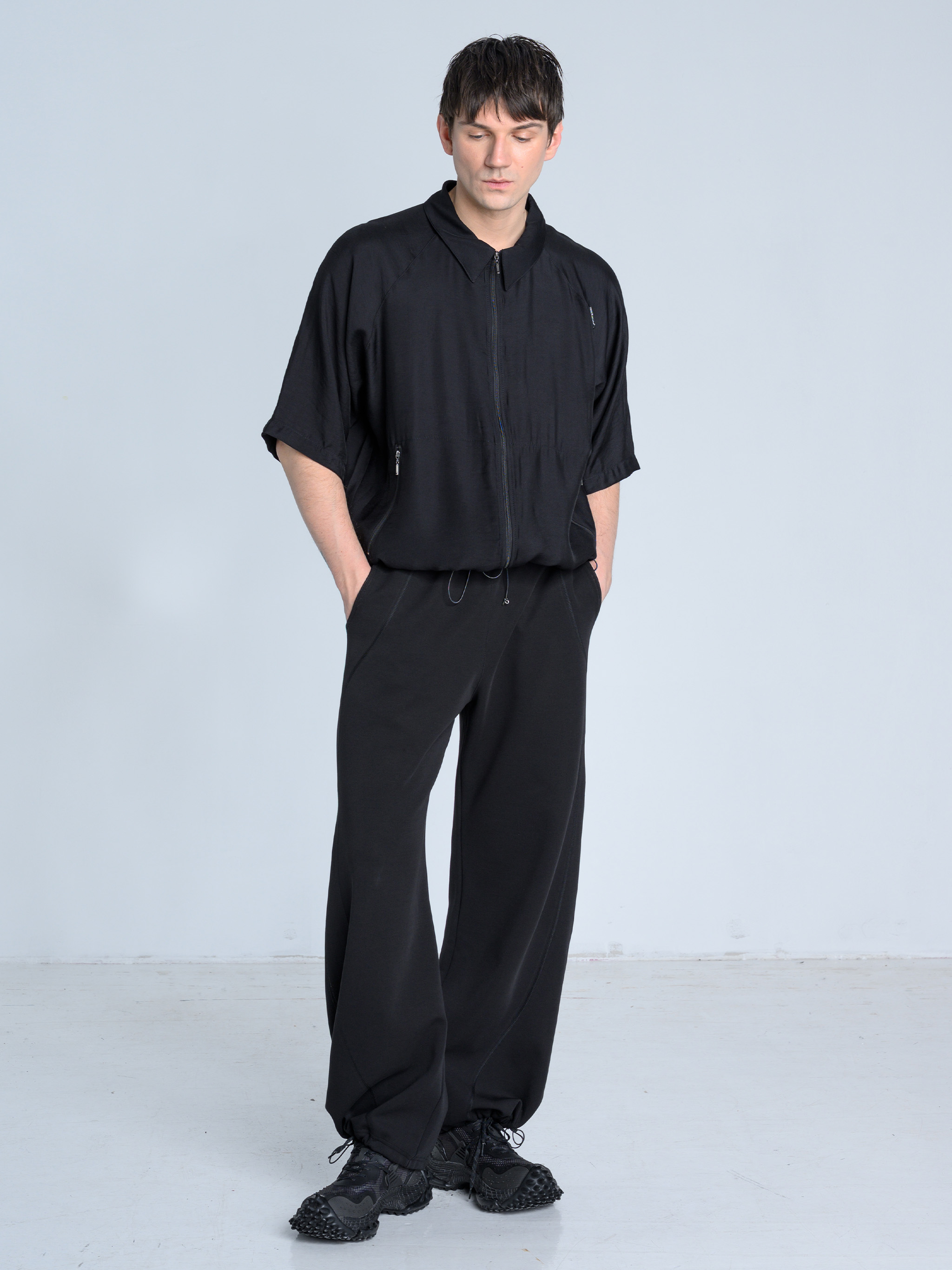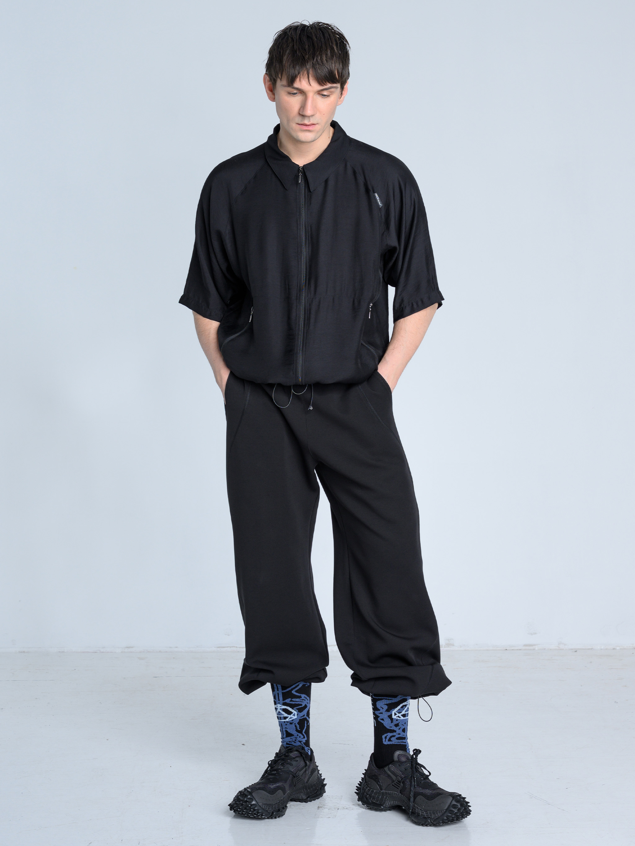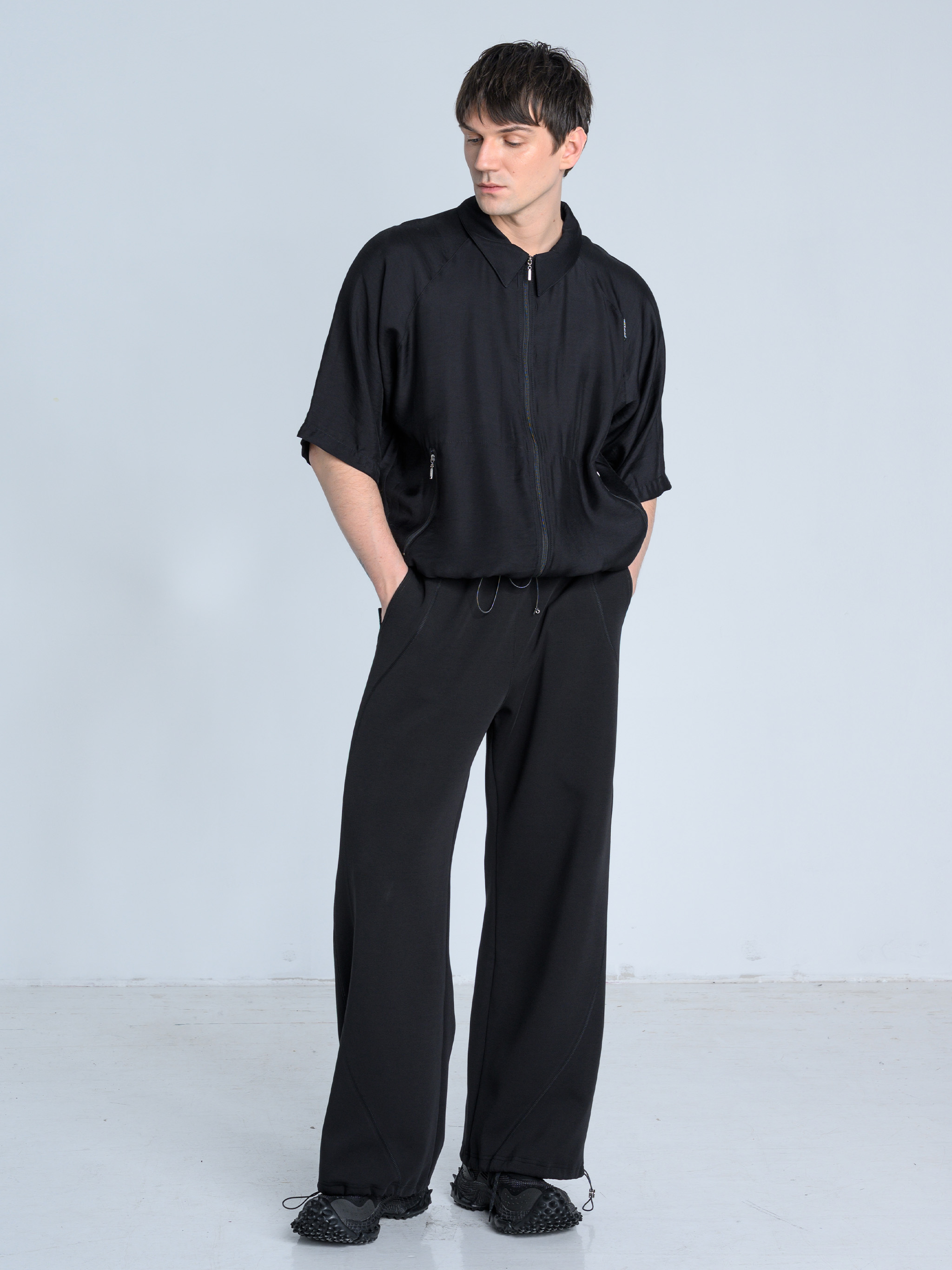 - Dół nogawek można modyfikować za pomocą elastycznych troków i metalowych stoperów