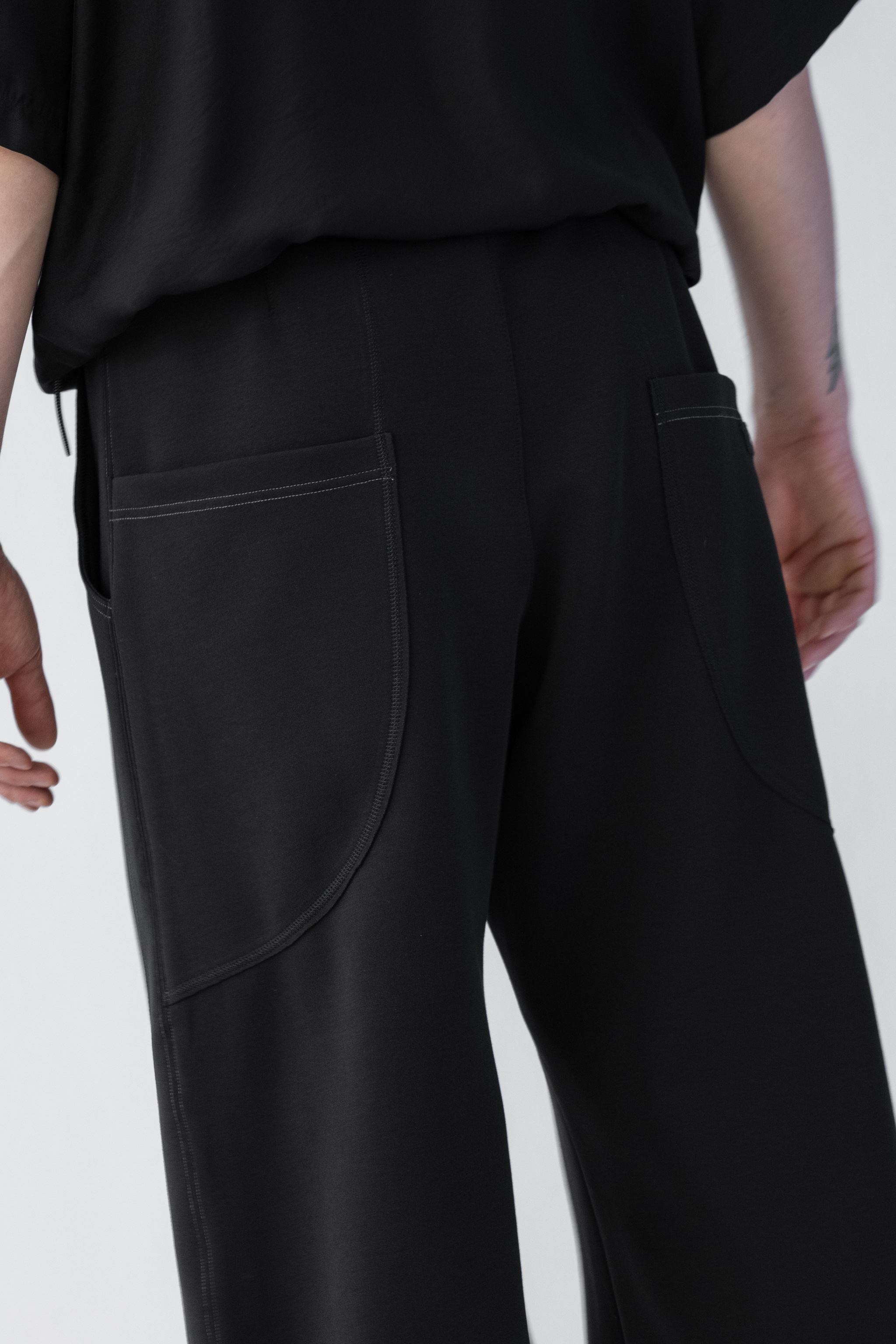 - Z tyłu duże kieszenie z zaokrąglonym kształtem